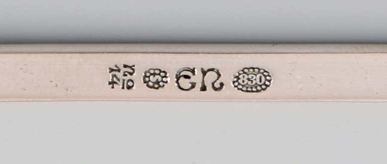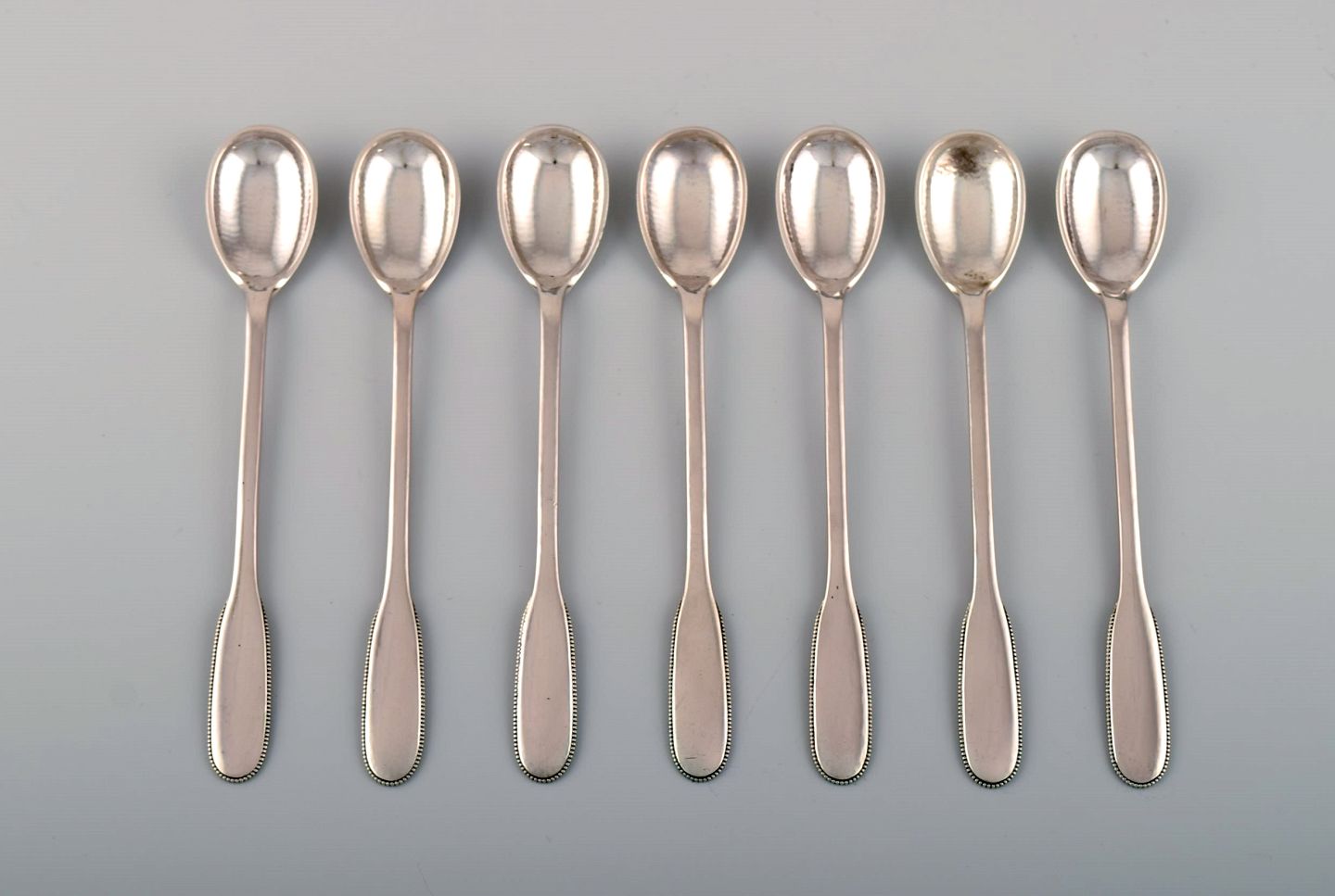Syv Evald Nielsen nummer 14 iste skeer i hammerslået sølv (830). 1920'erne.