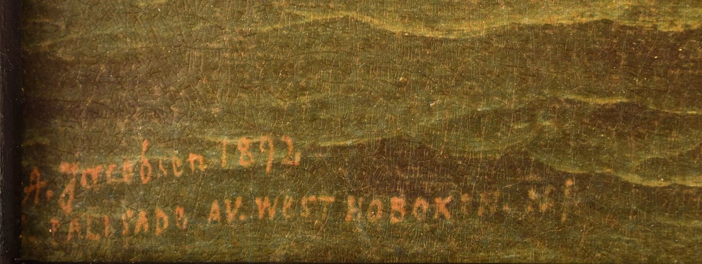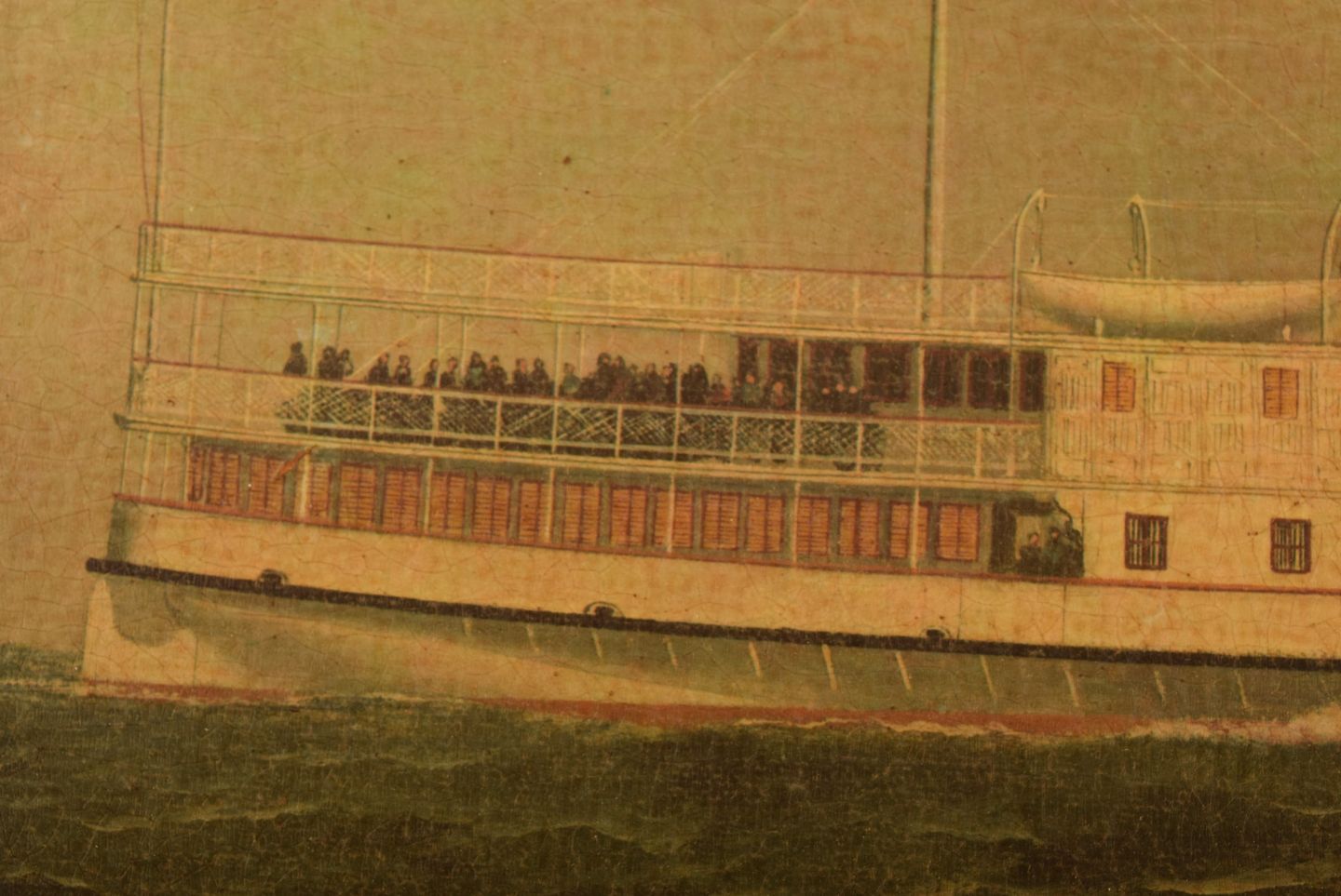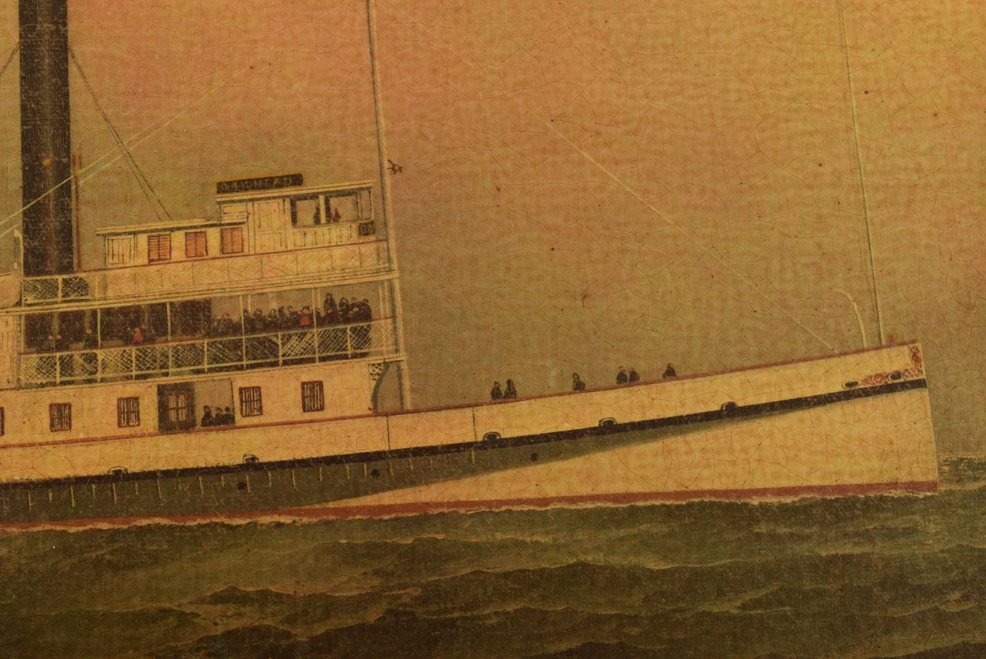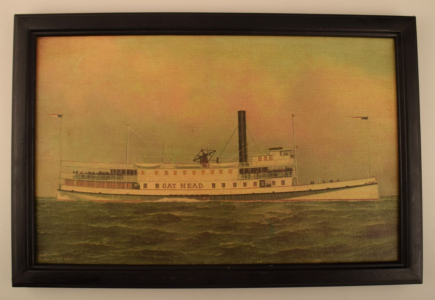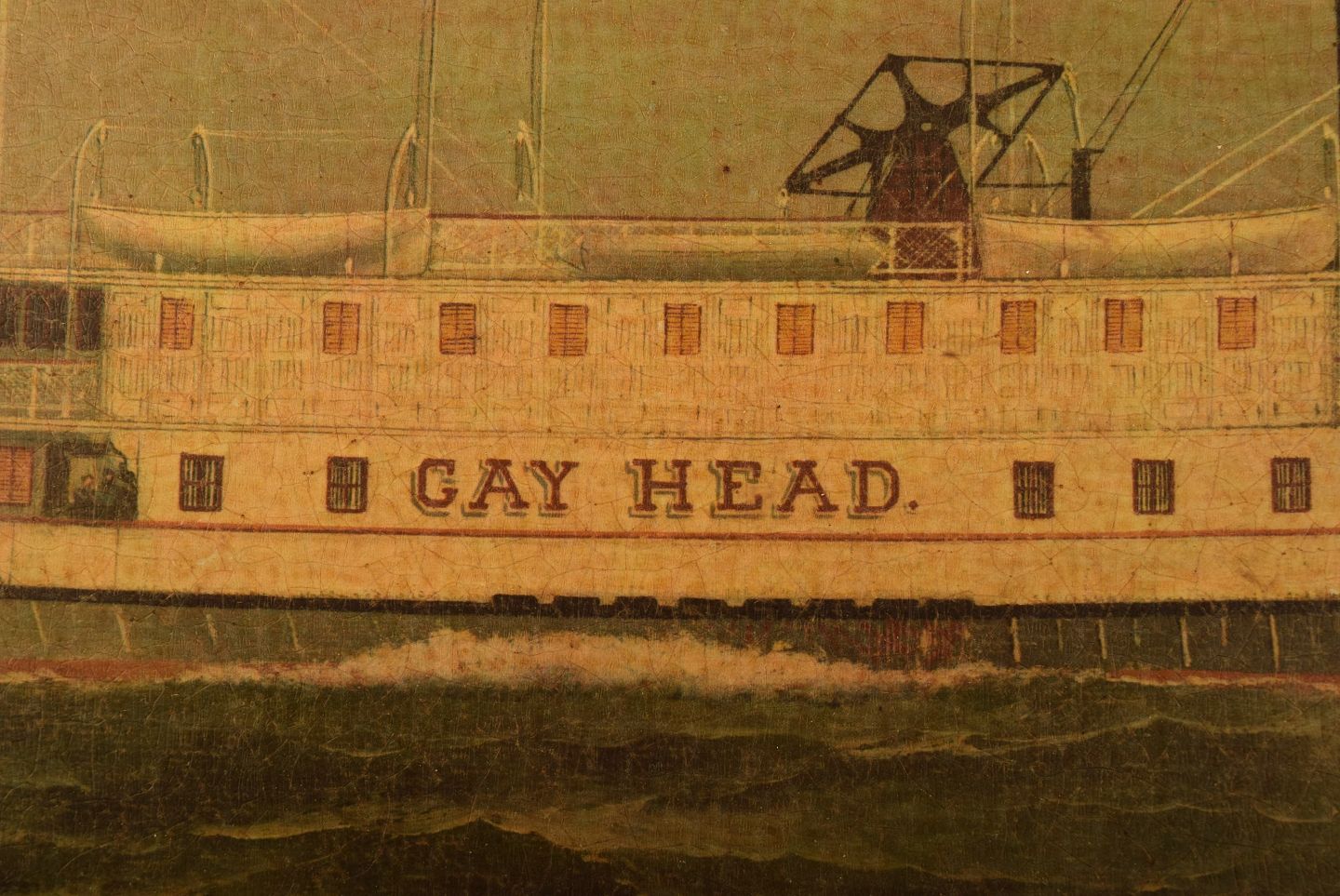 Antonio Jacobsen (1850-1921), Danish-born American naval painter. Facsimile on canvas. Ship portrait of the steamship Gay Head. Early 20th century. Looks like a real oil painting, fine crackles and varnish.