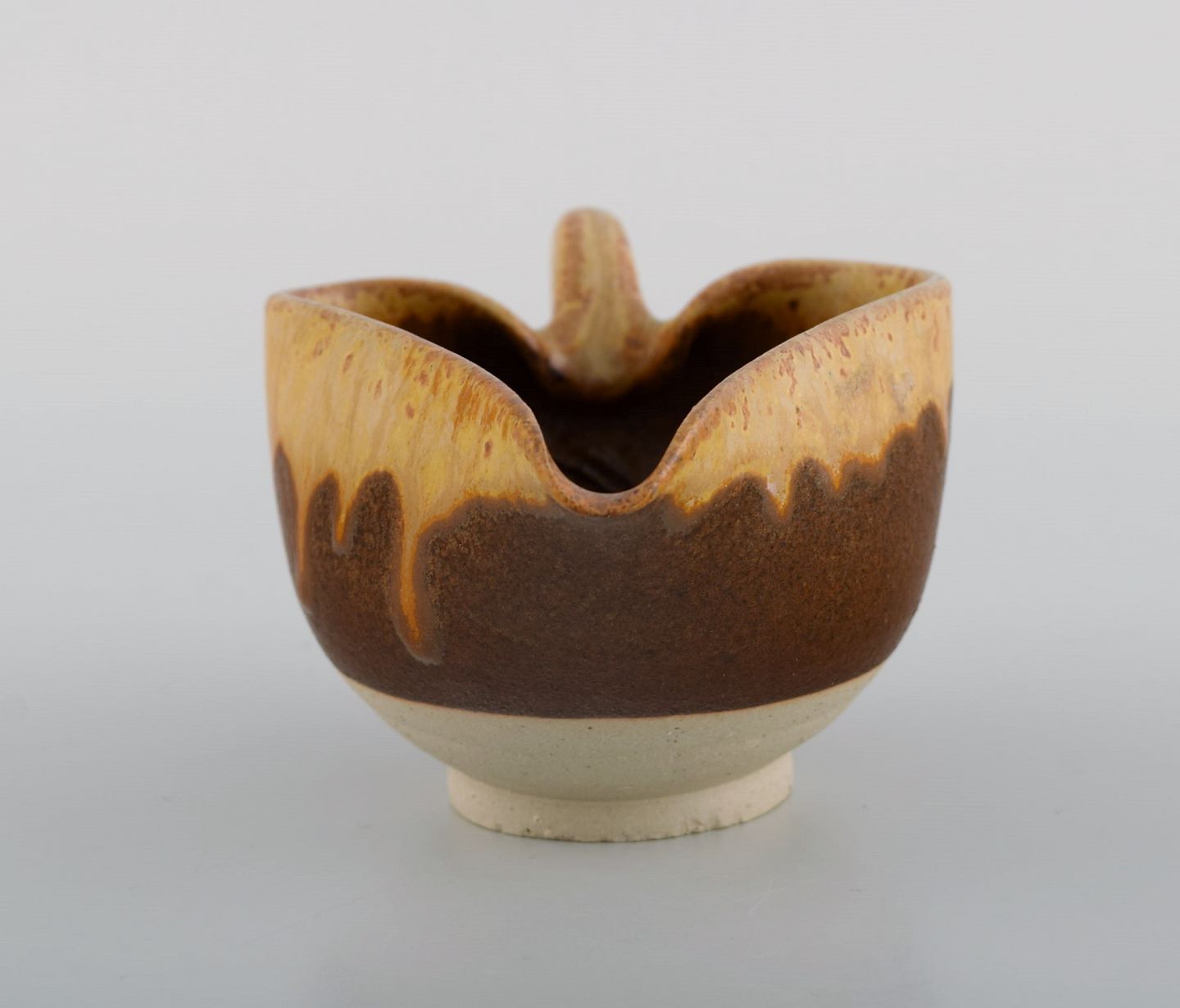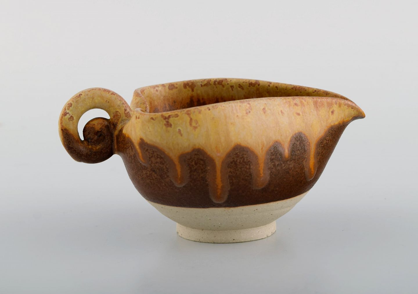 Arne Bang (1901-1983), Denmark. Small jug in partially glazed ceramics. Beautiful glaze in brown and orange shades. 1940s / 50s. Measures: 12.5 x 6.5 cm. In excellent condition. Signed.