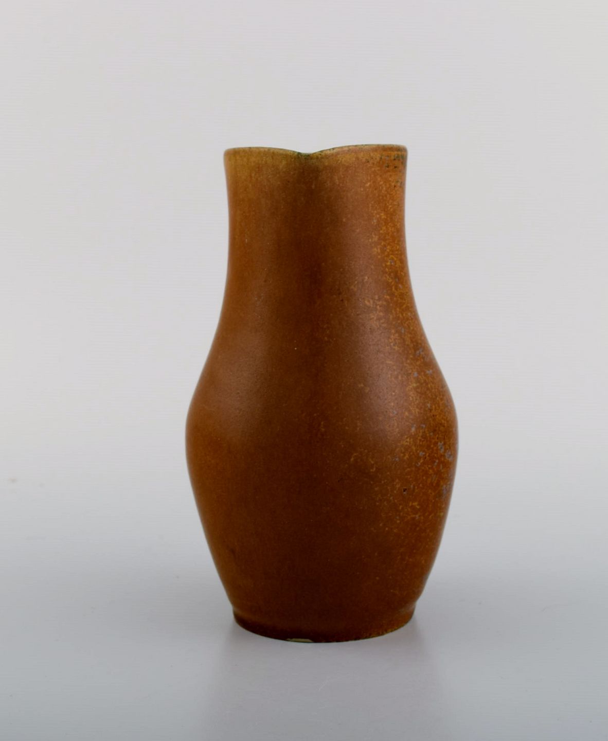 Arne Bang (1901-1983), Denmark. Jug in glazed ceramics. Beautiful glaze in brown shades. 1940s / 50s.
