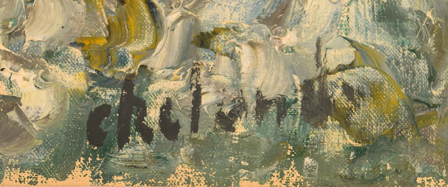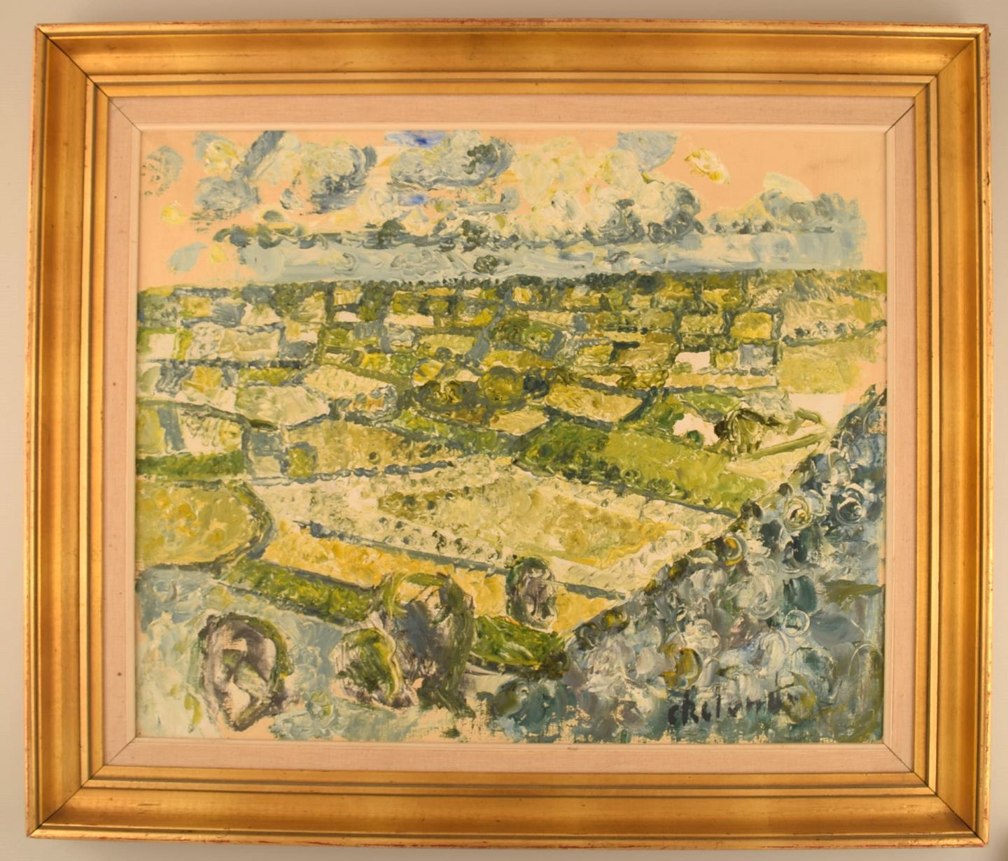 Poul Ekelund (1921-1976), Denmark. Oil on canvas. Modernist landscape. 1960s. The canvas measures: 60 x 49 cm. The frame measures: 8.5 cm. In excellent condition. Signed.