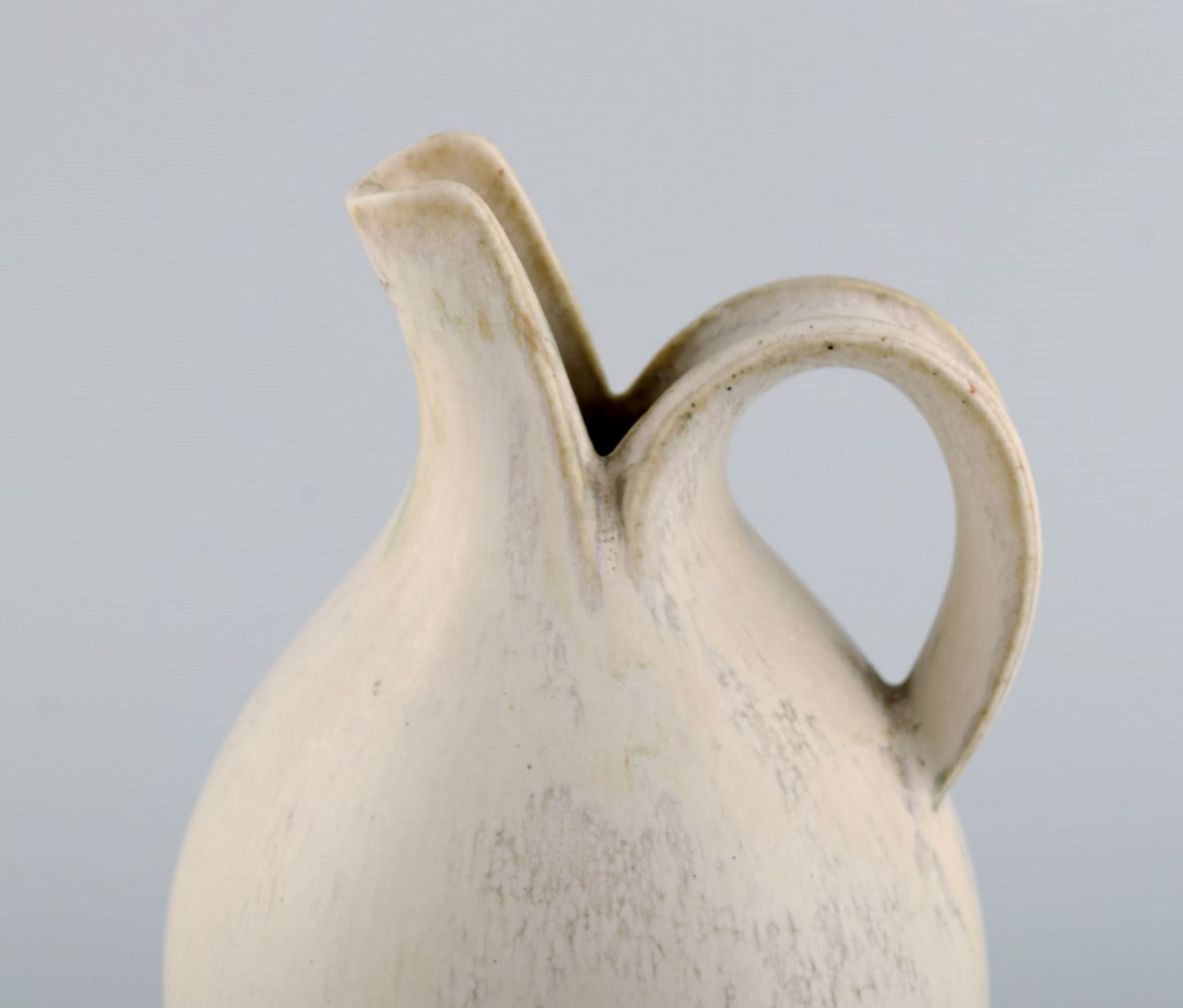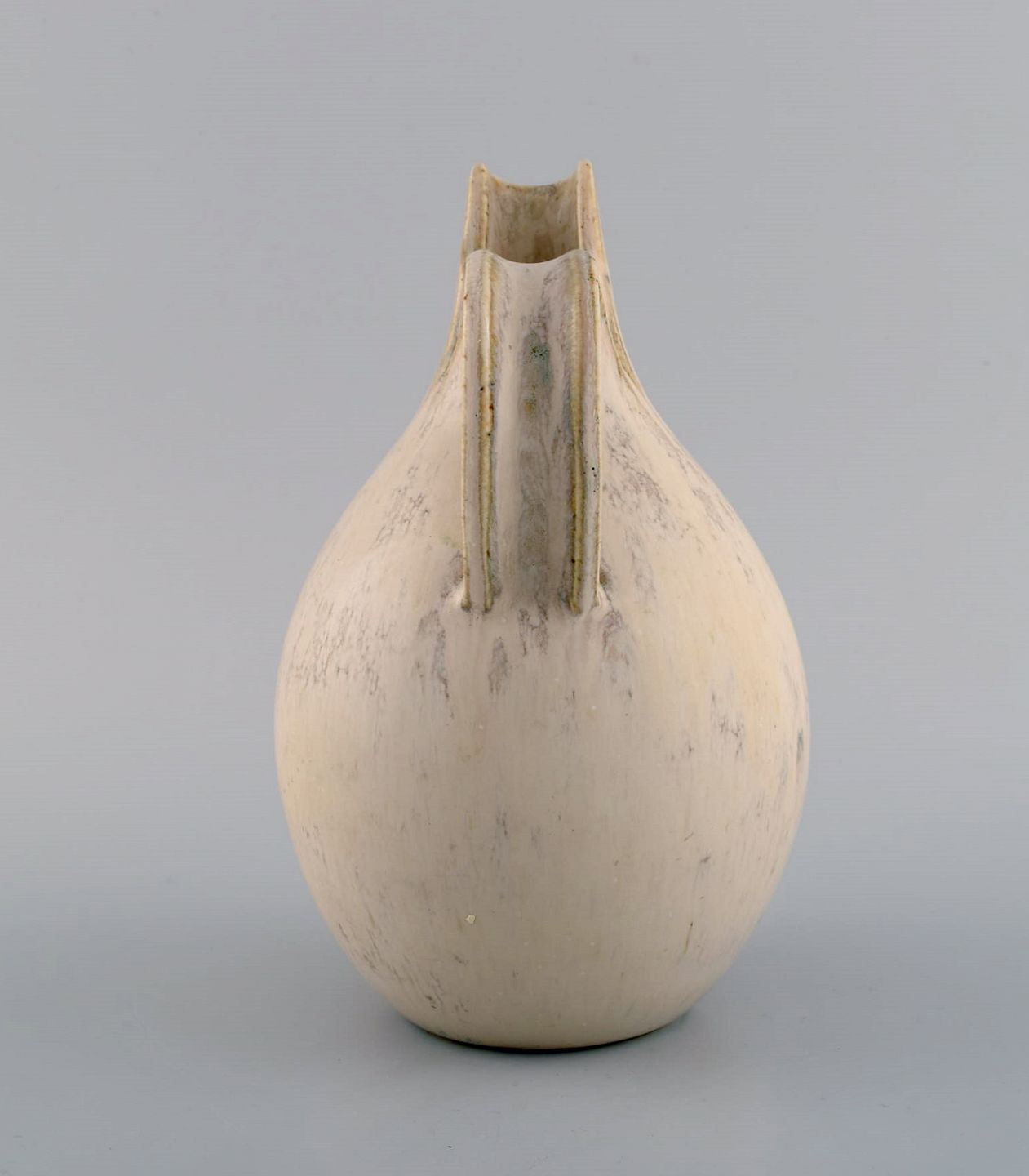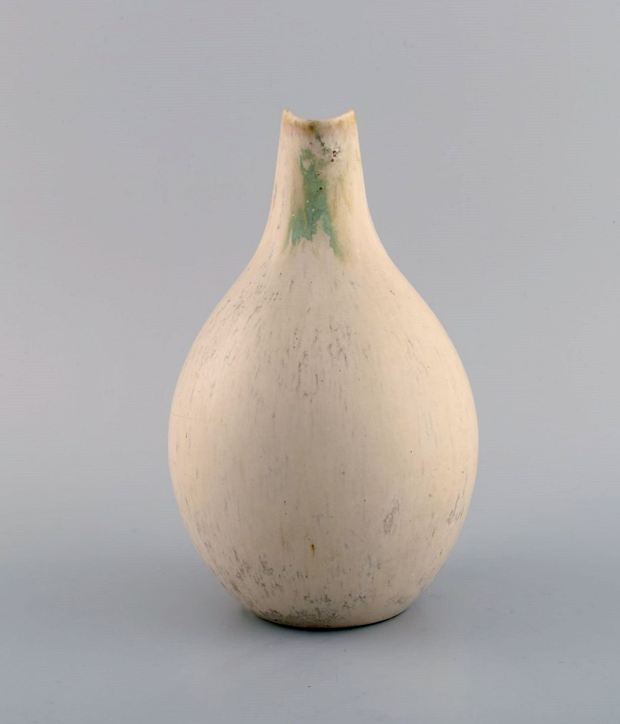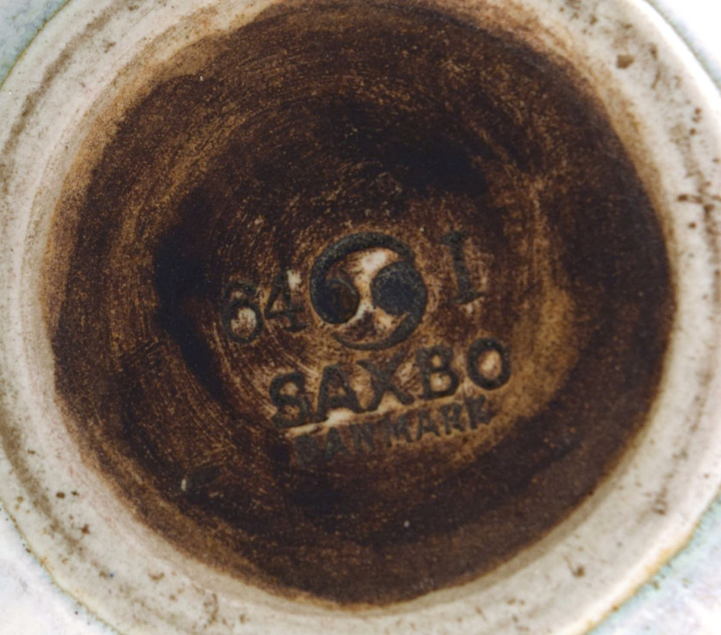 Eva Stæhr-Nielsen for Saxbo. Spaltekande i glaseret stentøj. Smuk glasur i sand nuancer. 1940'erne. Modelnummer 64. Måler: 19,5 x 12,5 cm. Stemplet. I flot stand.
