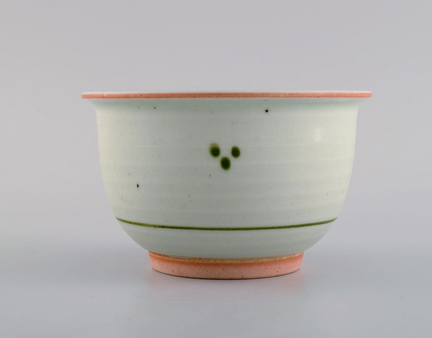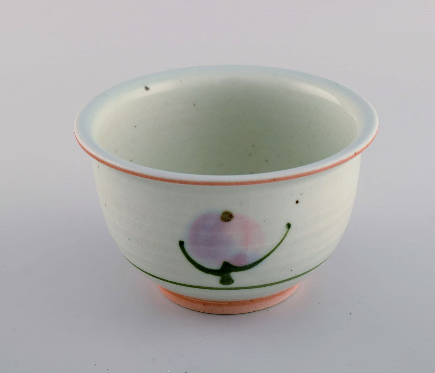 Bodil Manz (b. 1943), Denmark. Unique bowl in glazed ceramics with hand-painted flowers. 1980s. Measures: 13 x 8 cm. In excellent condition. Signed.