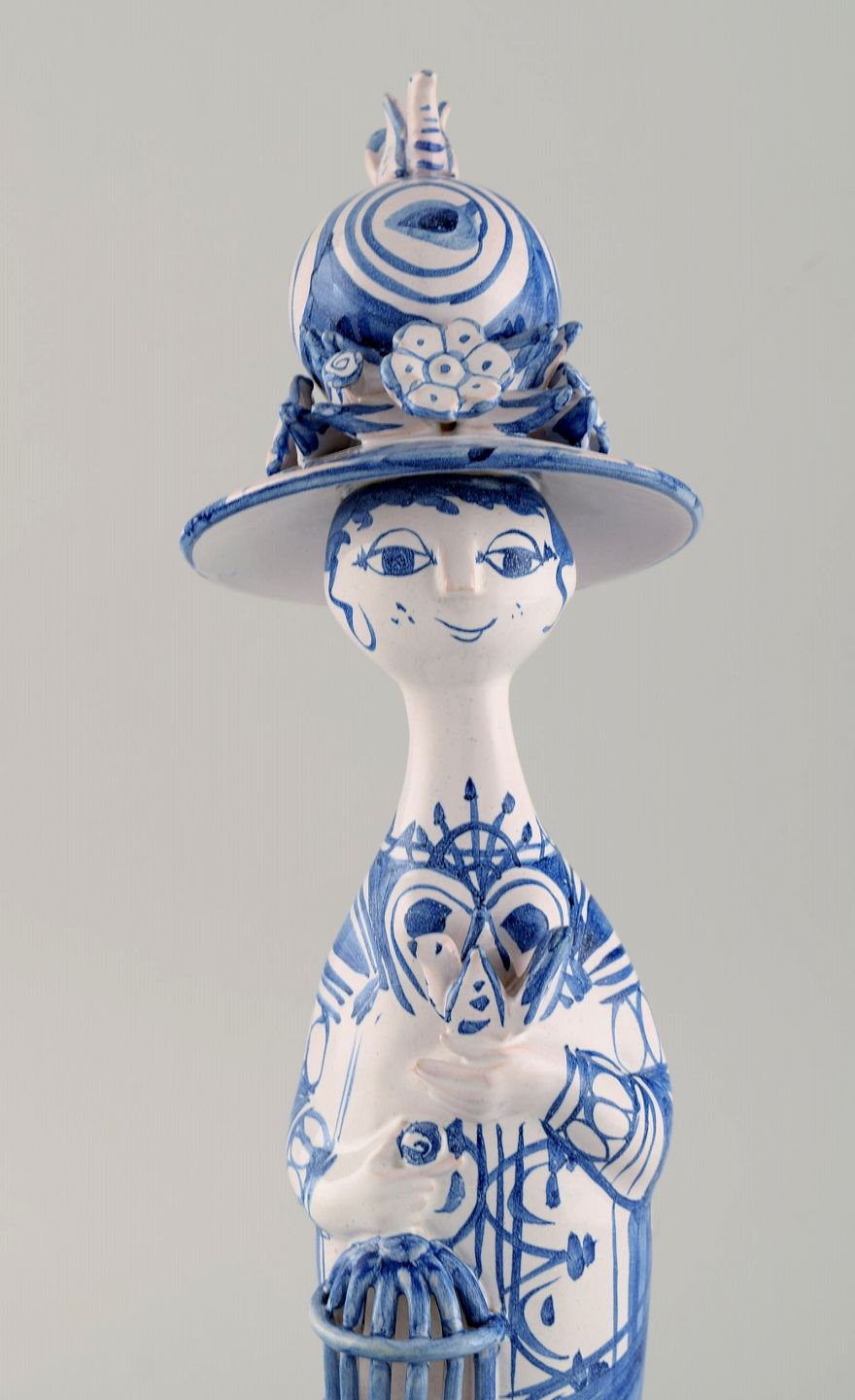 Bjørn Wiinblad unique ceramic figure. "Spring" in blue "Seasons" from 1978. Measures: 36 x 10 cm. Perfect condition. Signed and dated. All four figures from "Seasons" in stock.
