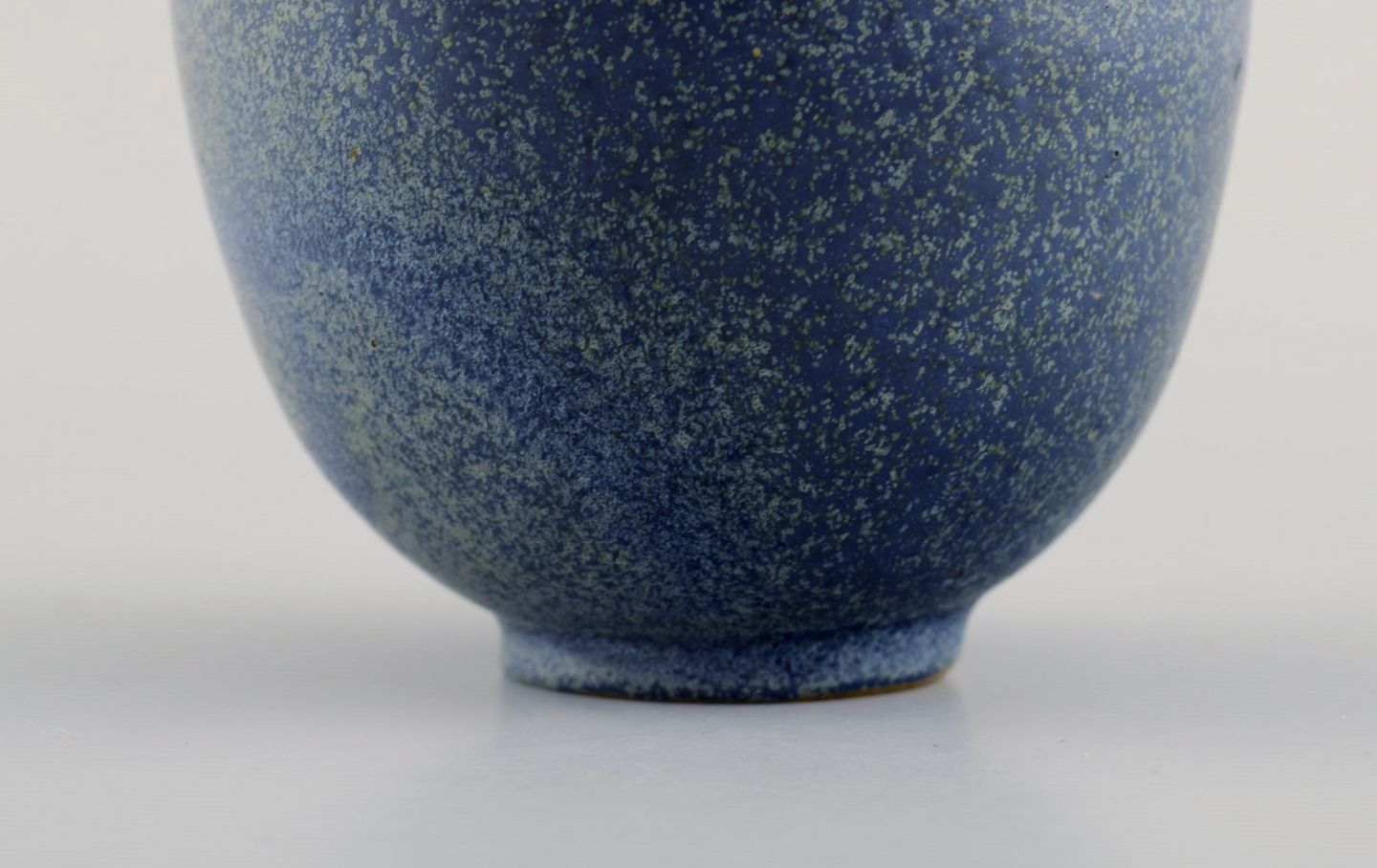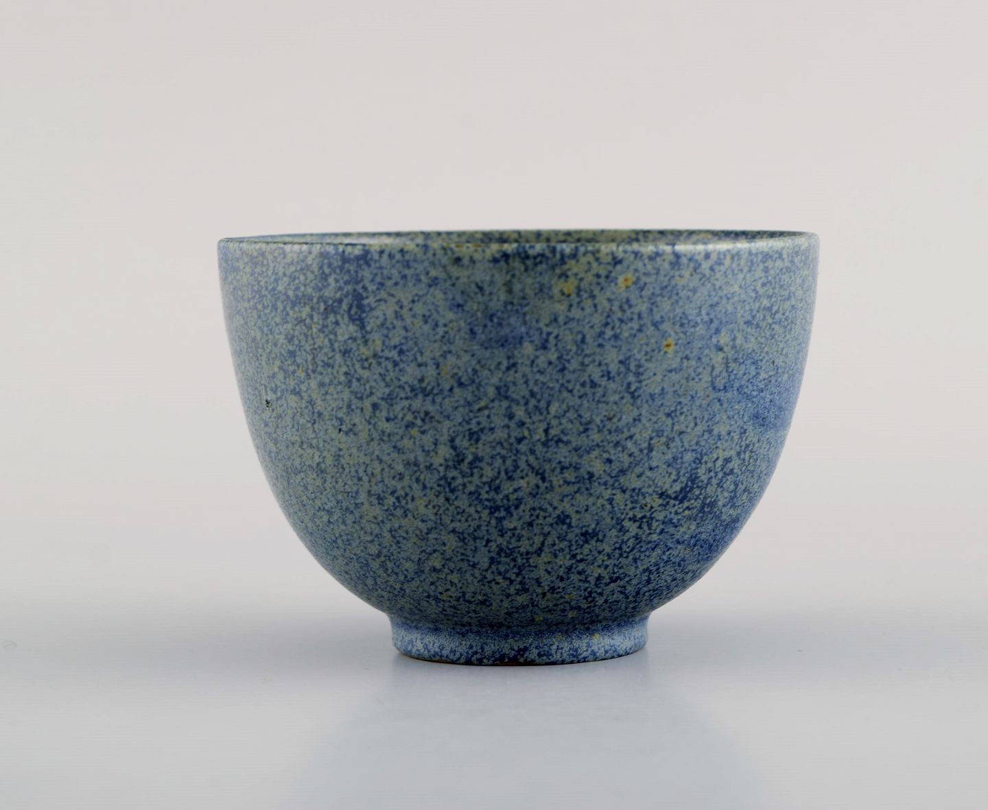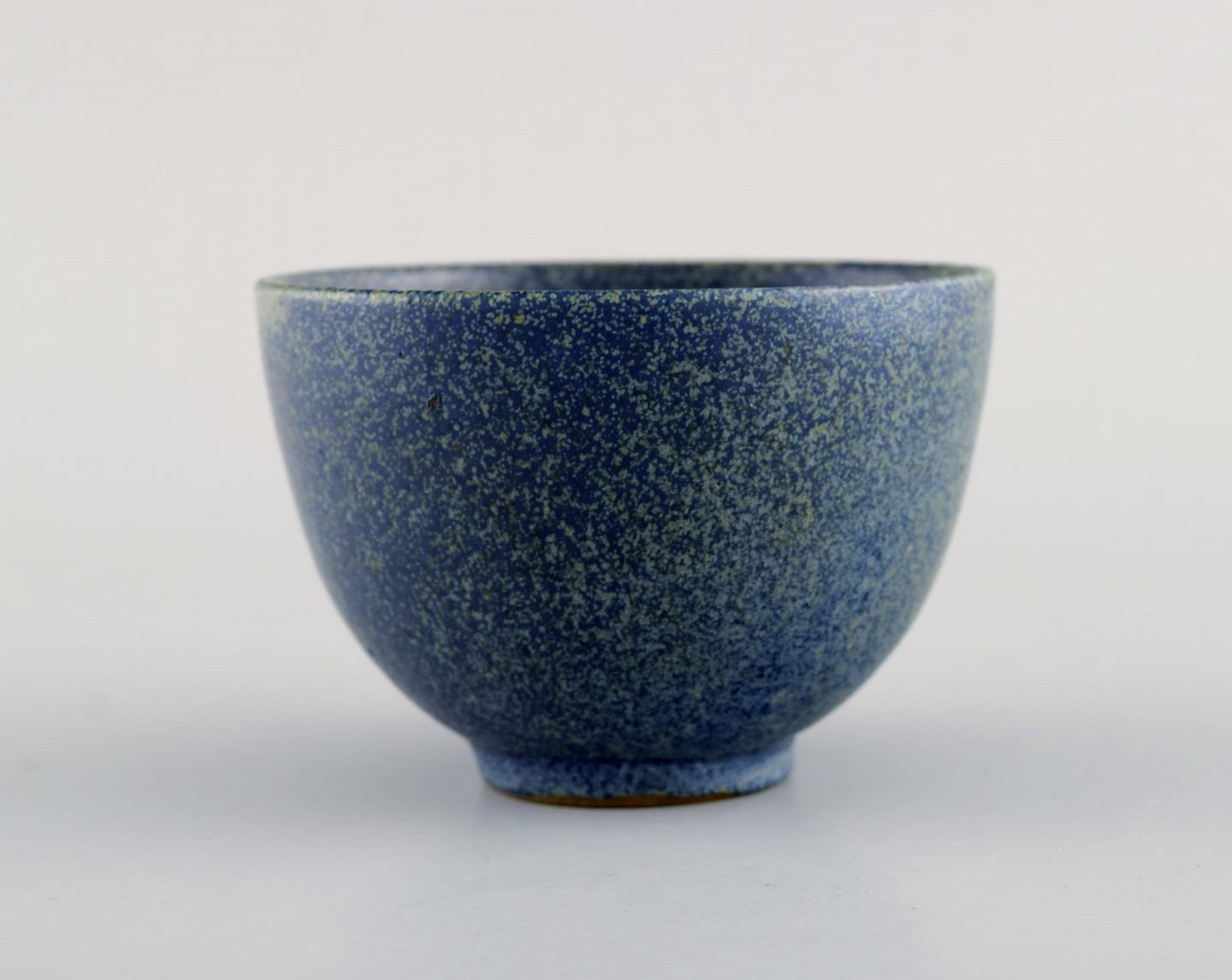 Arne Bang (1901-1983), Danmark. Skål i glaseret keramik. Modelnummer 147. Smuk spættet glasur i blå og grågrønne nuancer. 1940/50'erne. Måler: 9 x 6 cm. I flot stand. Signeret.