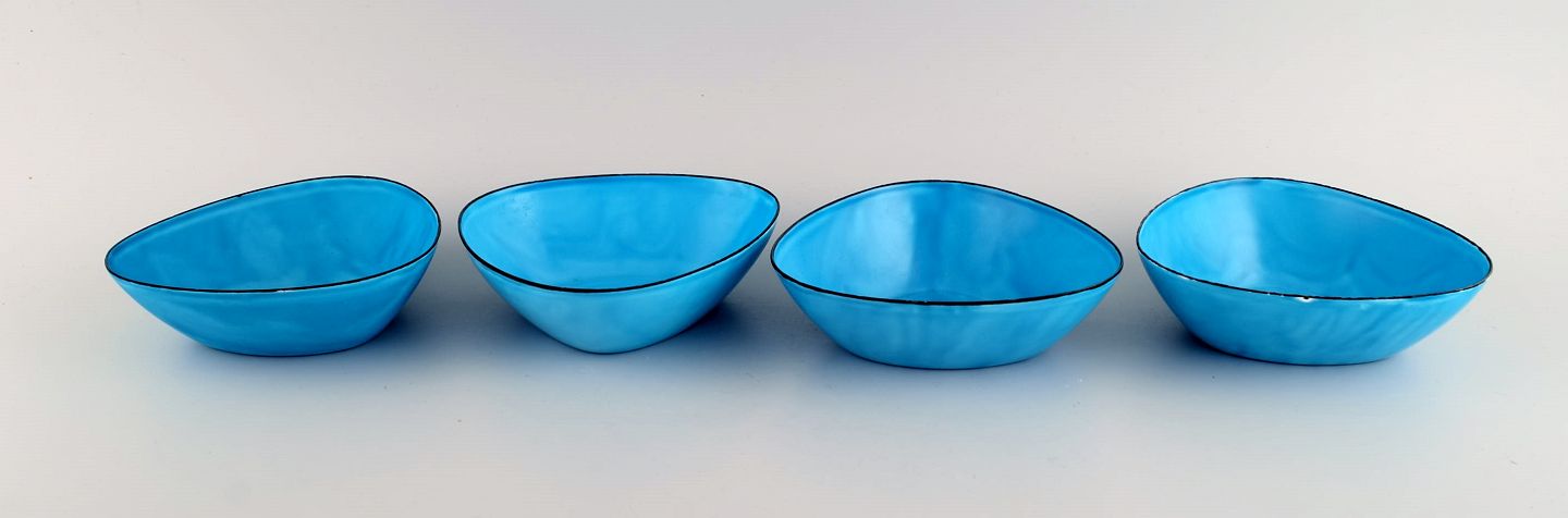 Kockum, Sverige. Fire skåle i turkis emalje. 1970'erne. Måler: 15 x 4,8 cm. I flot stand med brugspræg. Stemplet.