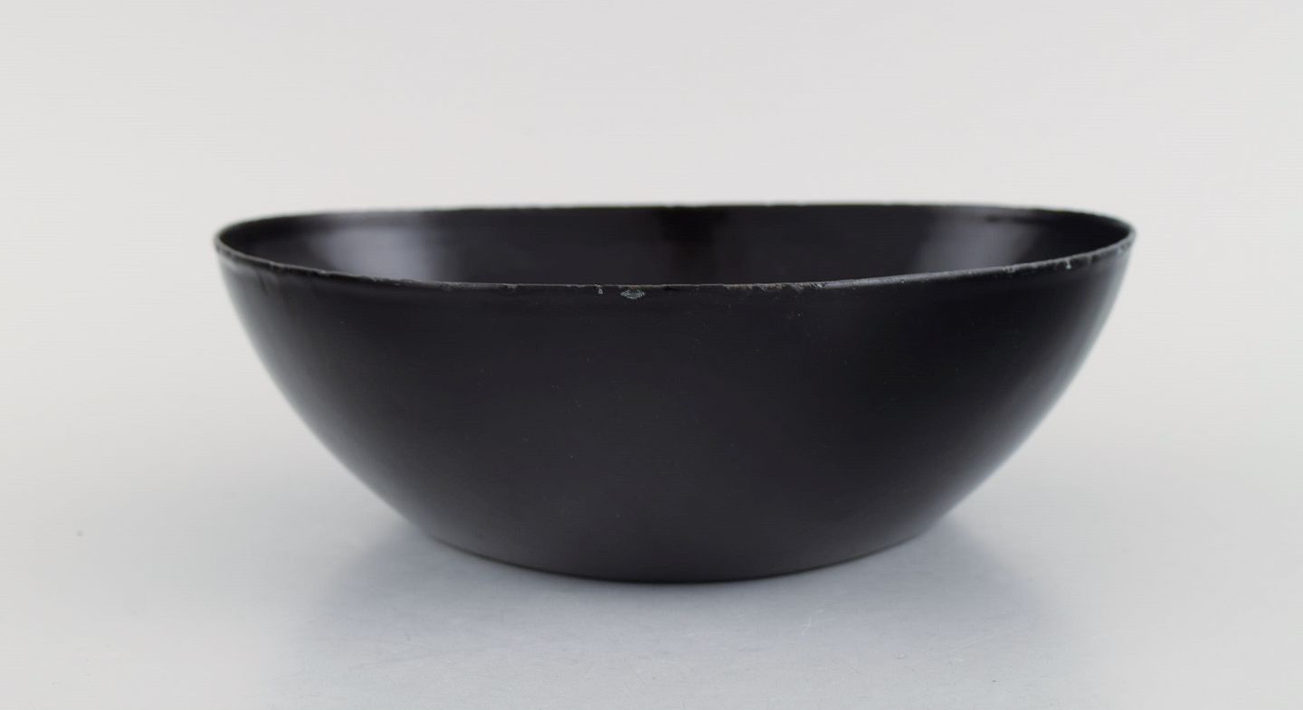 Kockum, Sverige. To skåle i sort emalje. 1970'erne. Største måler: 21 x 6,5 cm. I flot stand med brugspræg. Stemplet.