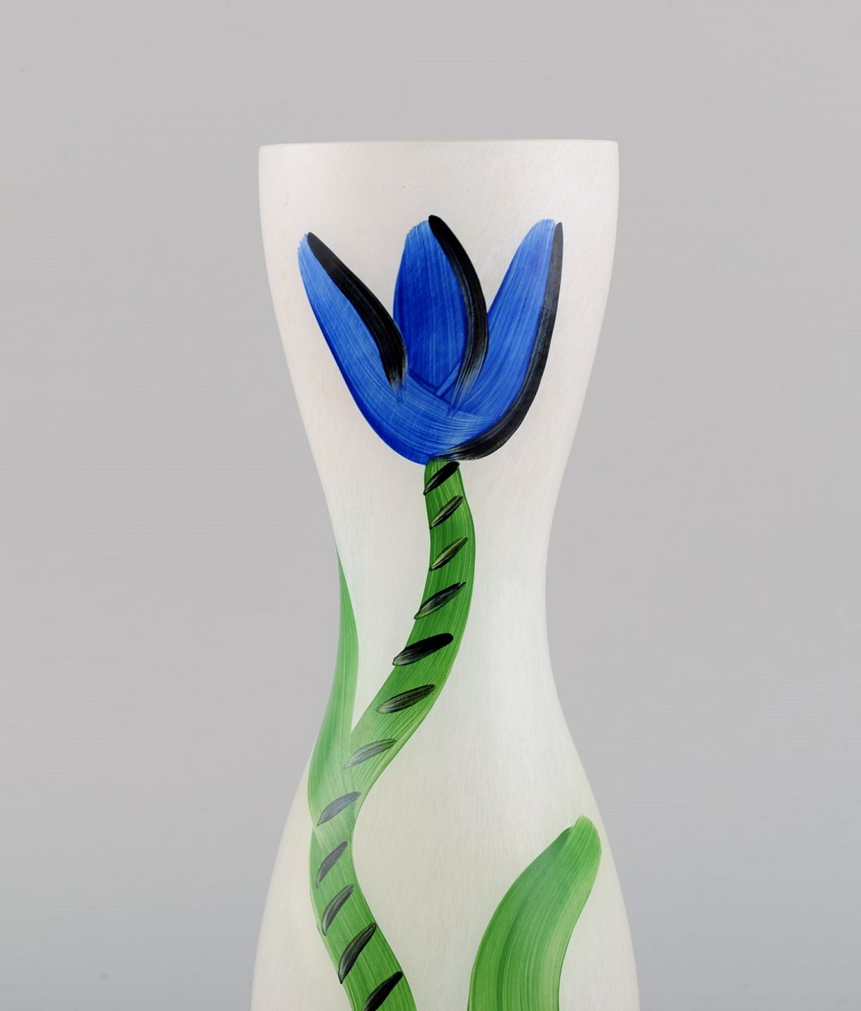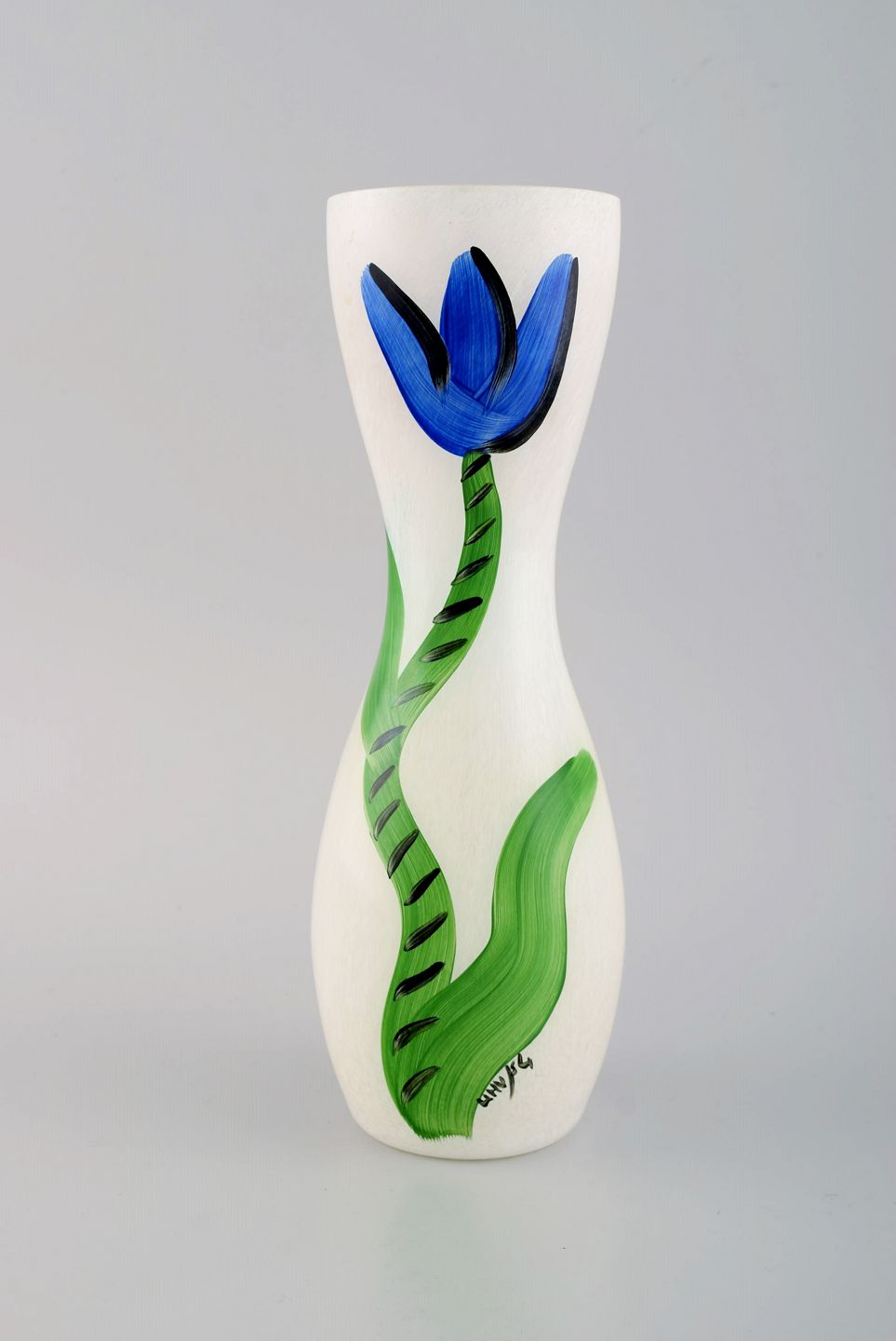 Ulrica Hydman Vallien for Kosta Boda. Vase in mouth-blown art glass with hand-painted flowers. 1980s. Measures: 26 x 9 cm. In excellent condition. Signed.