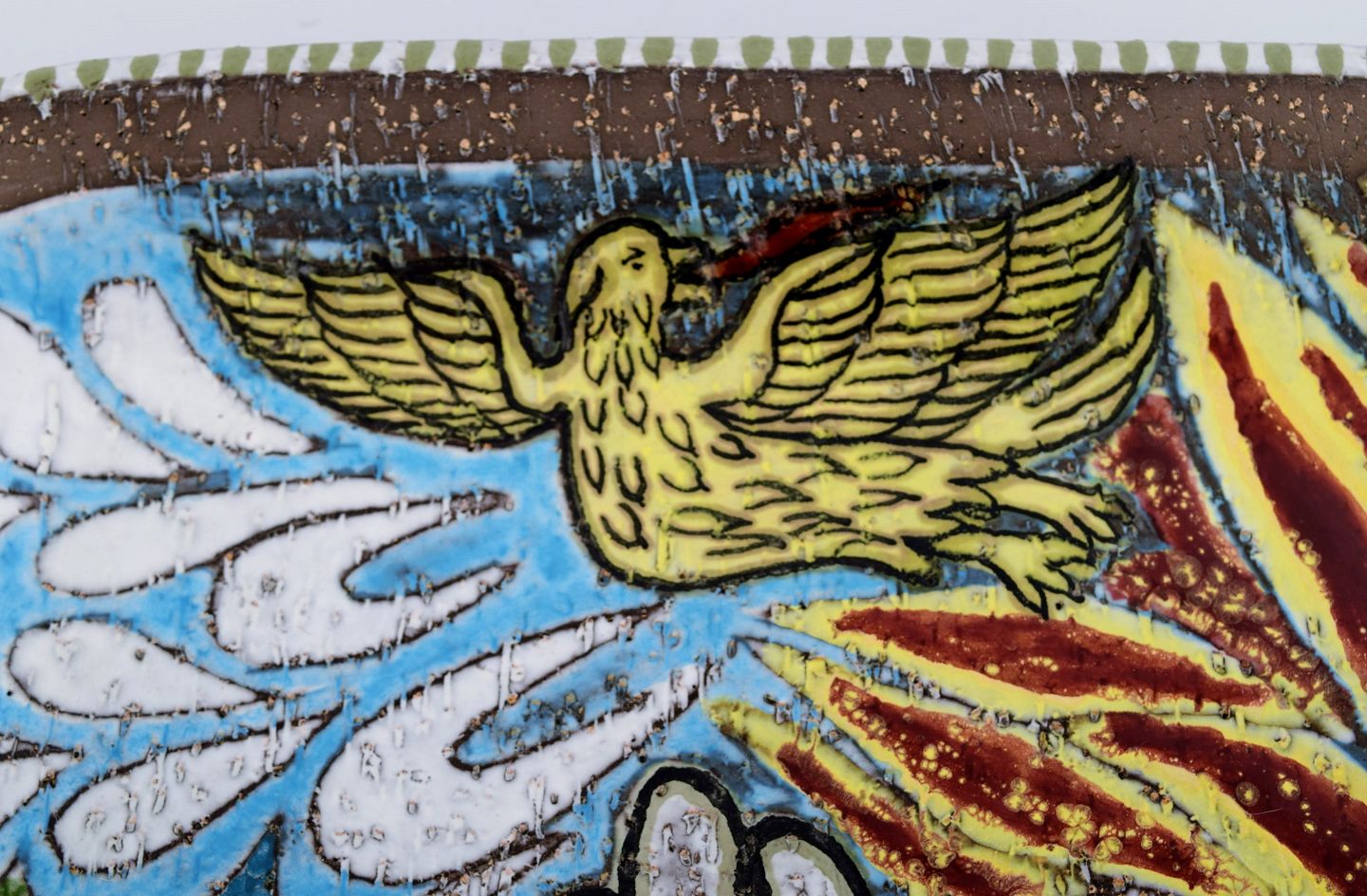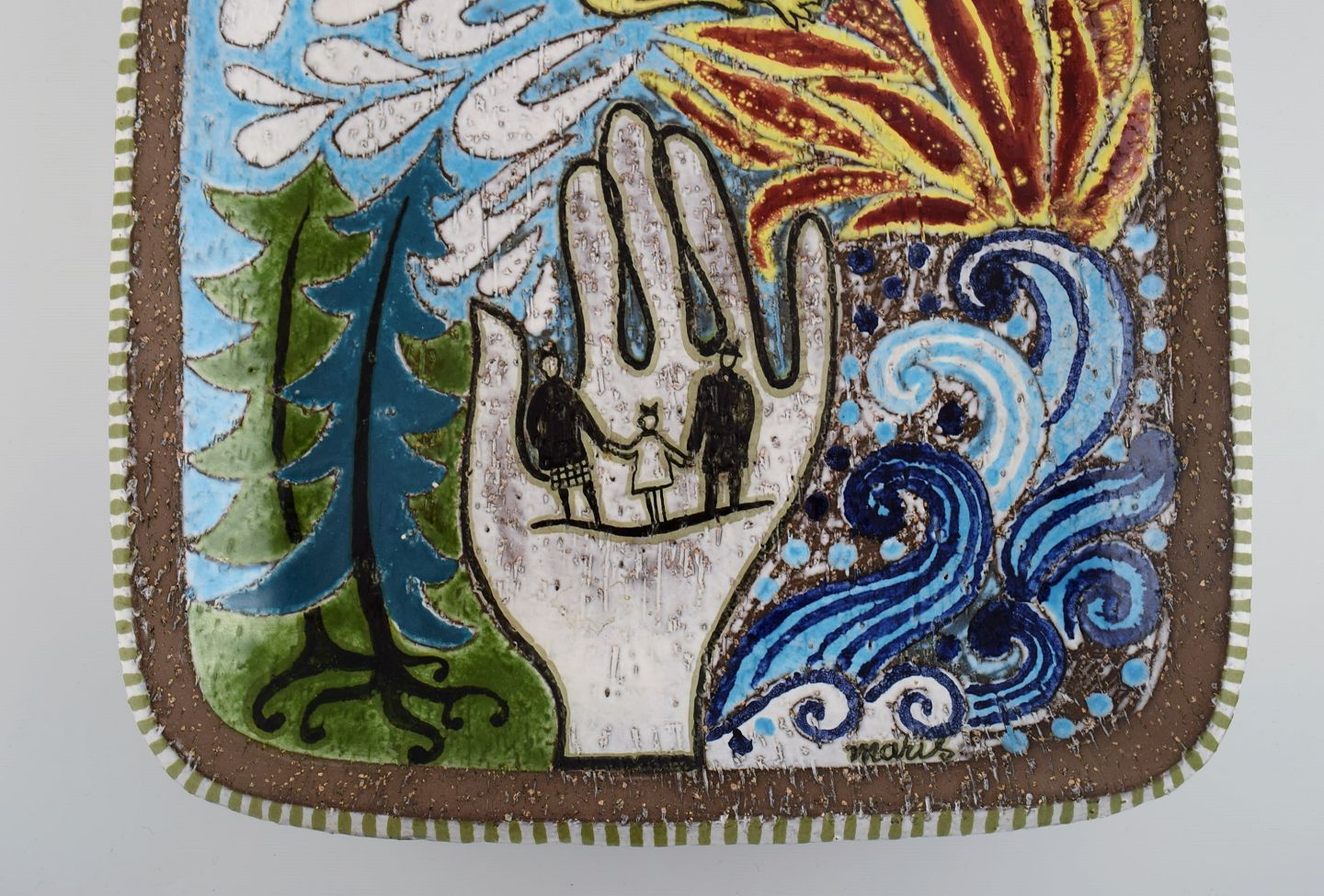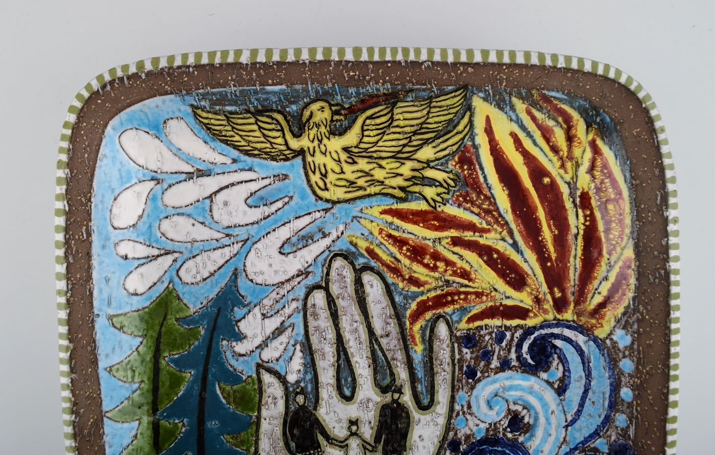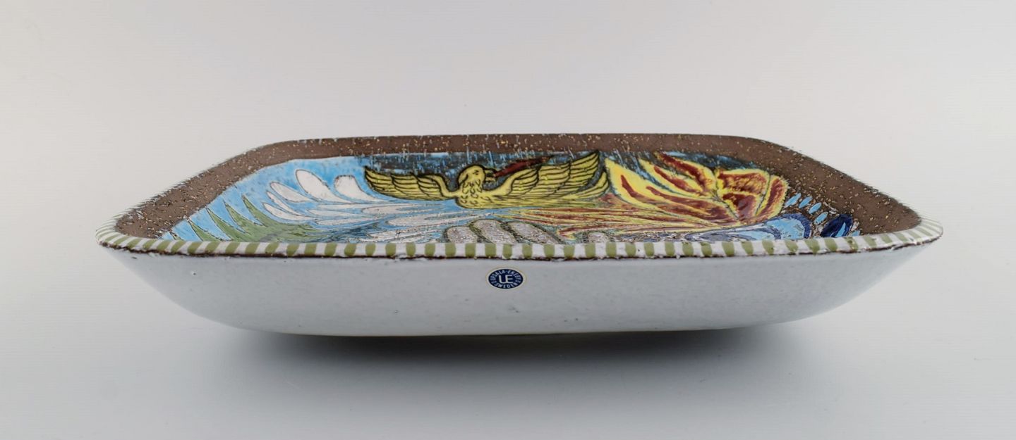 Mari Simmulson (1911-2000) for Upsala-Ekeby. Large square dish in hand-painted glazed stoneware. Mid-20th century. Measures: 32 x 31 x 6 cm. In excellent condition. Stamped.