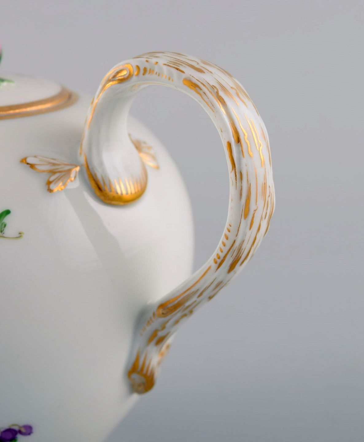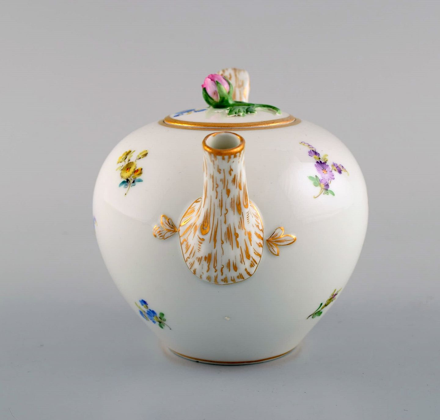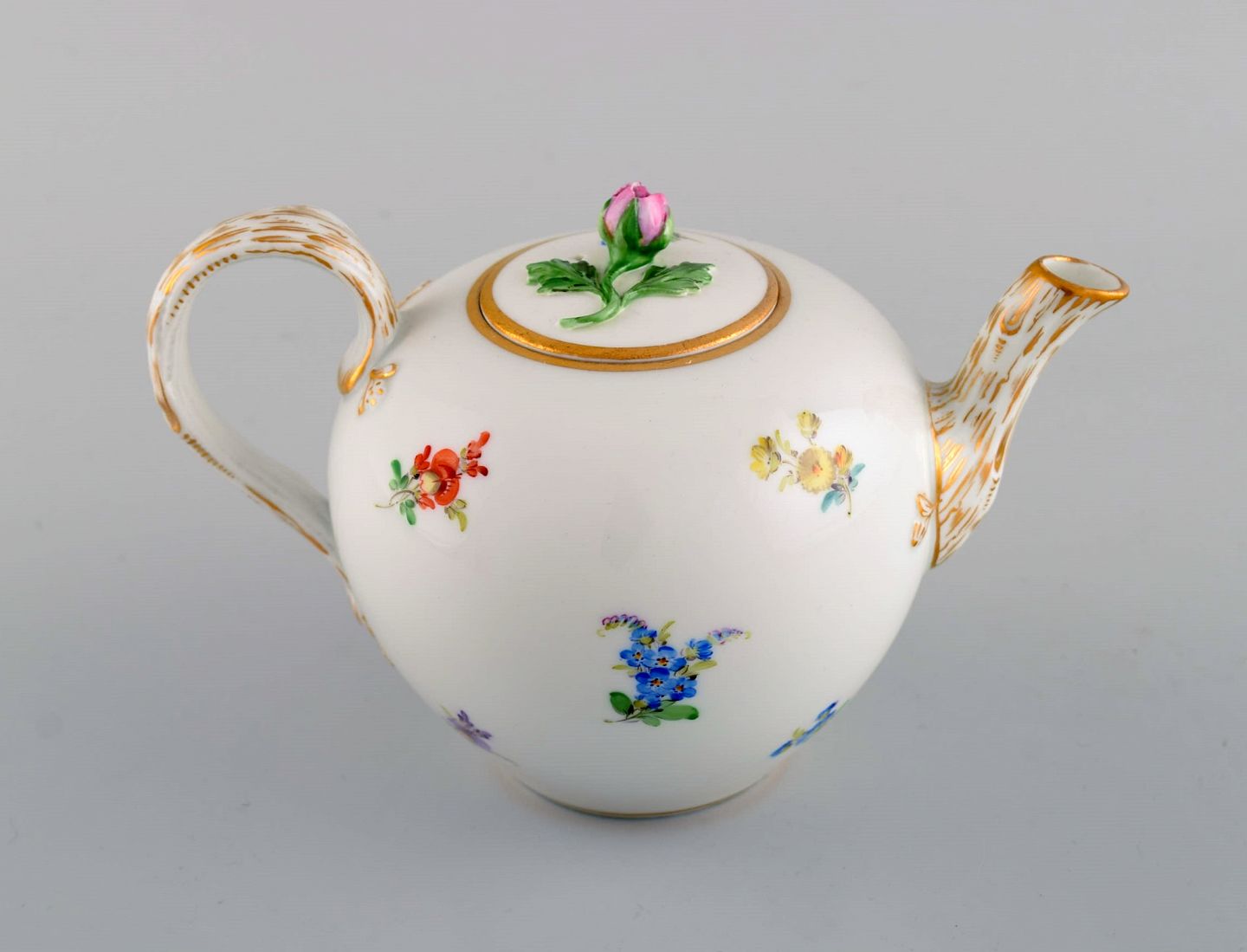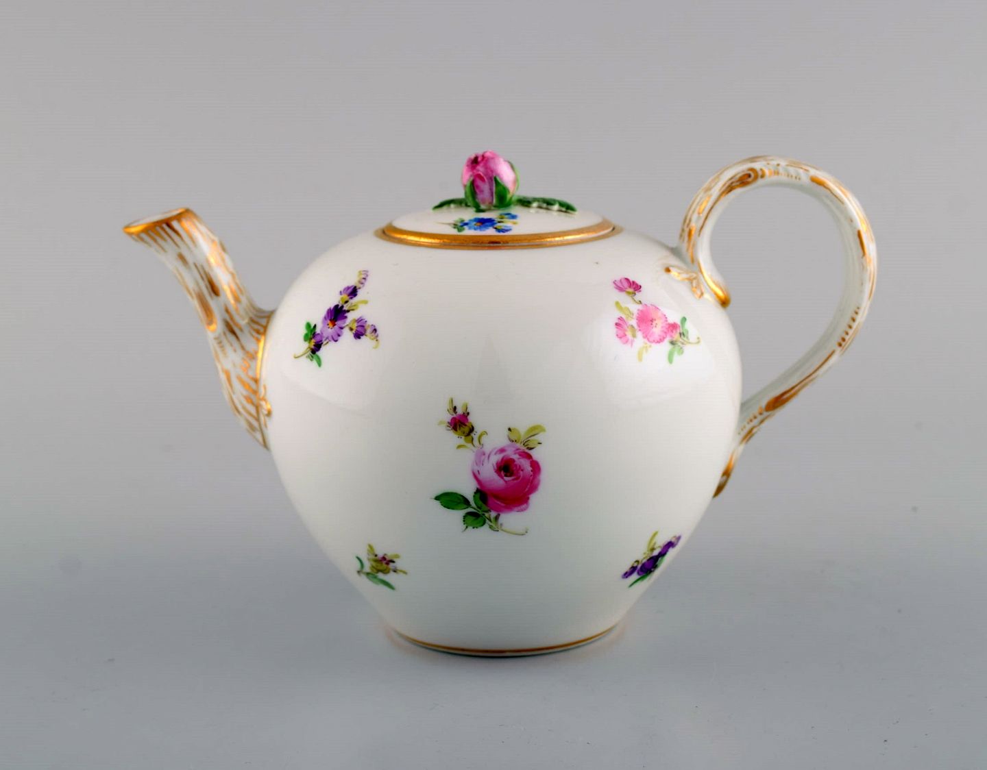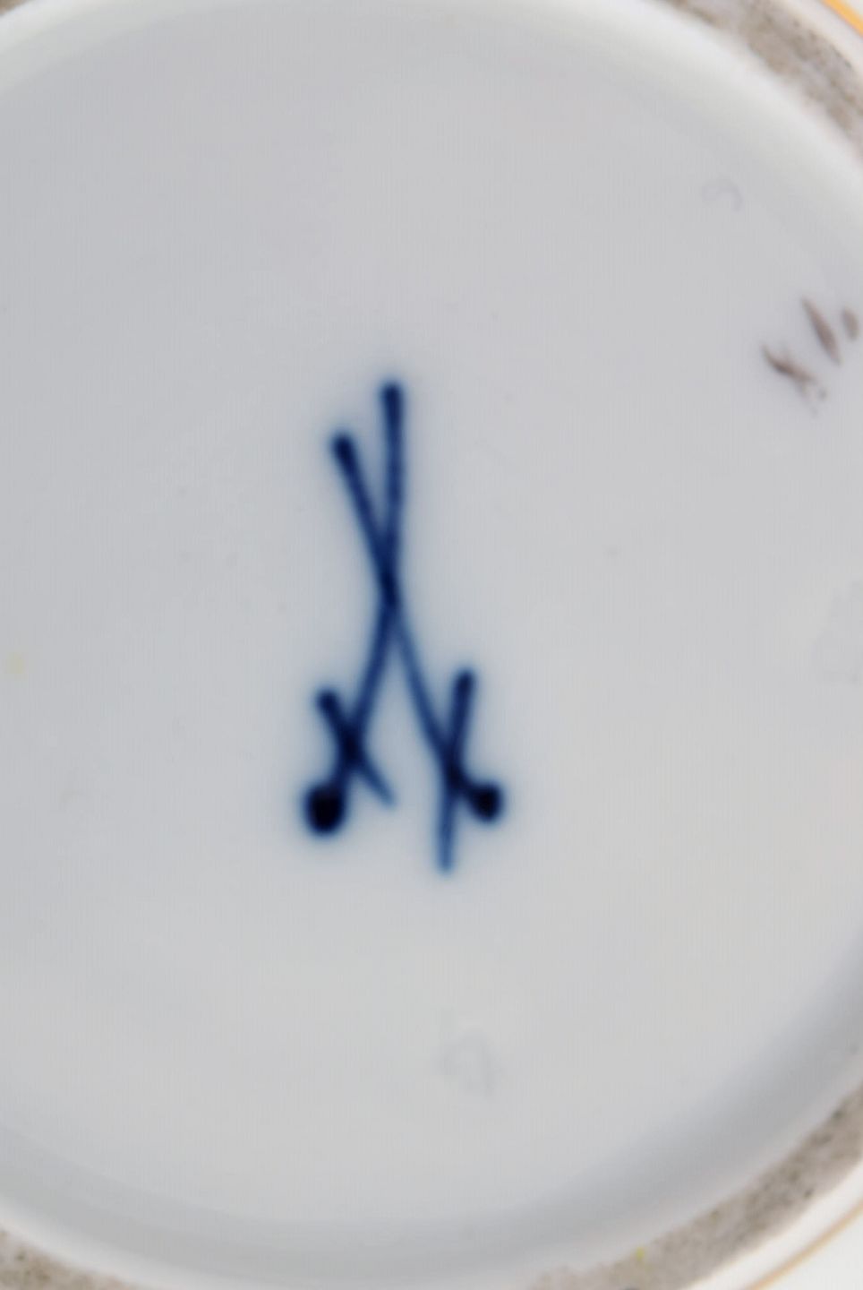 Antik Meissen tekande i håndmalet porcelæn med blomster og gulddekoration. Sent 1800-tallet. Måler:17 x 11 cm. I flot stand. Signeret. 1. Sortering.