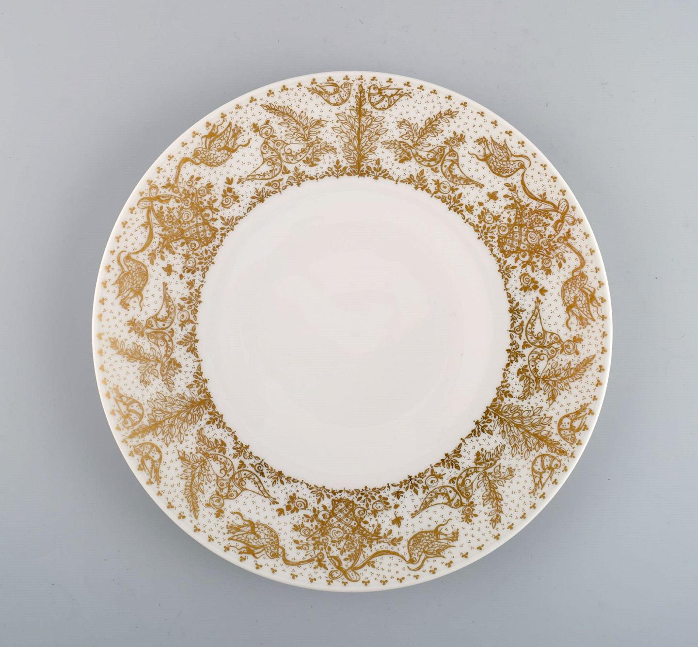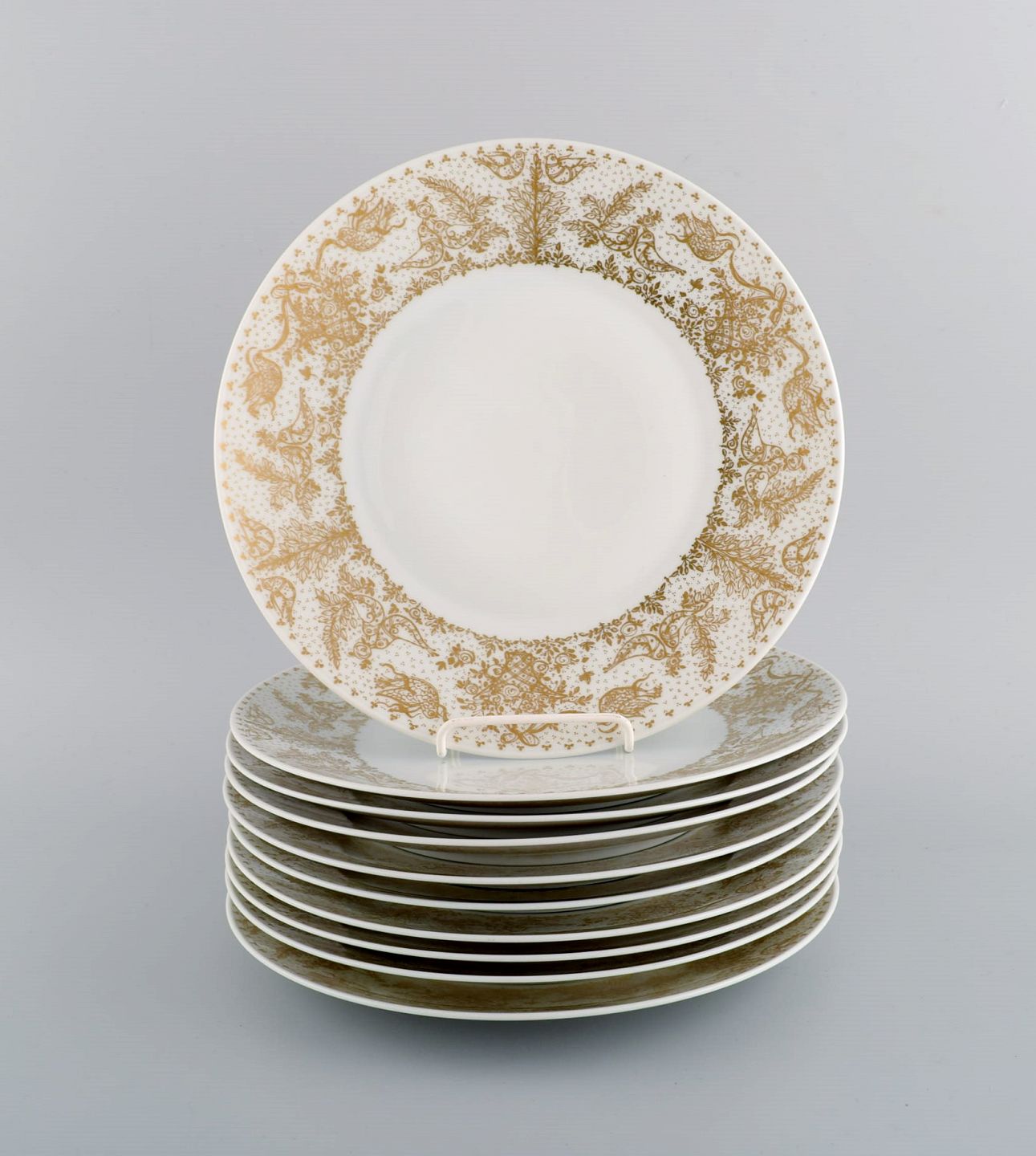 Bjørn Wiinblad for Rosenthal. 10 dinner plates in porcelain with gold decoration. 1980s. Diameter: 25.5 cm. In excellent condition. Stamped.
