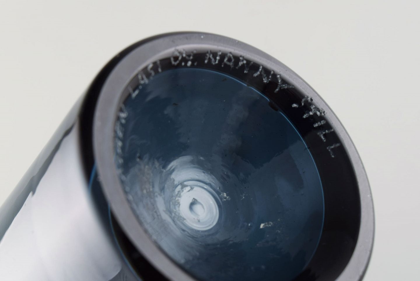 Nanny Still for Riihimäen Lasi. Dekorationsflaske / vase i mundblæst kunstglas. Finsk design, 1960/70'erne. Måler: 32 x 6 cm. I flot stand. Signeret.