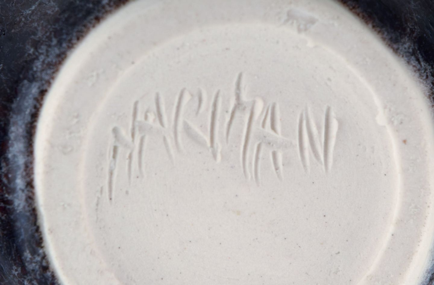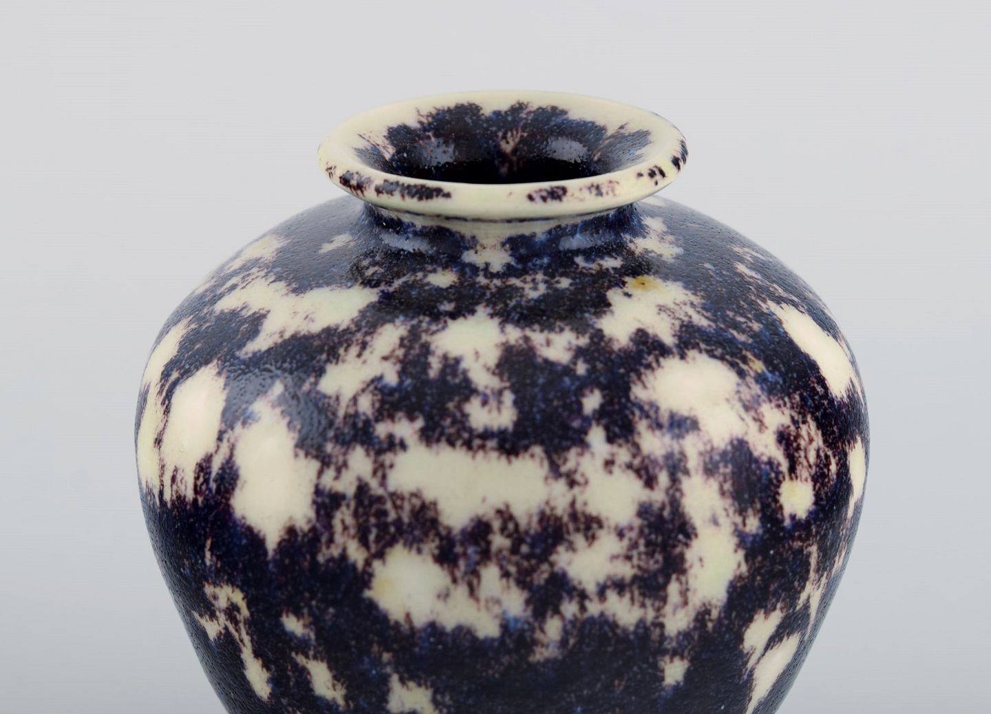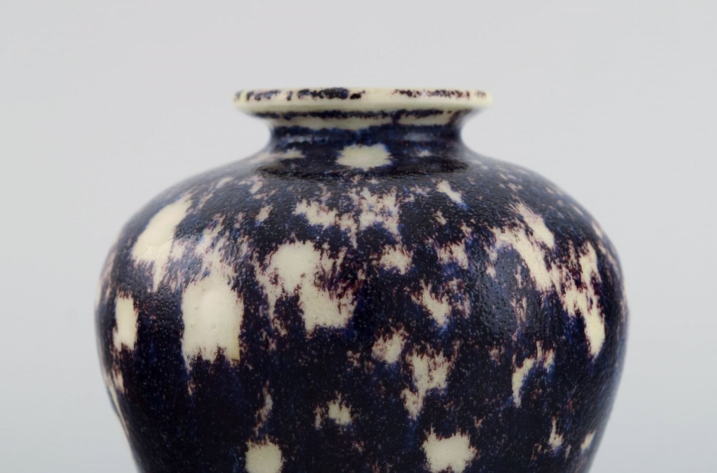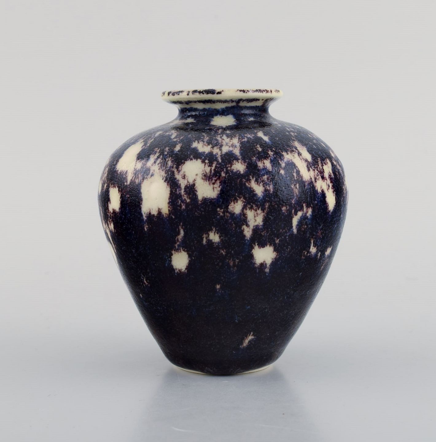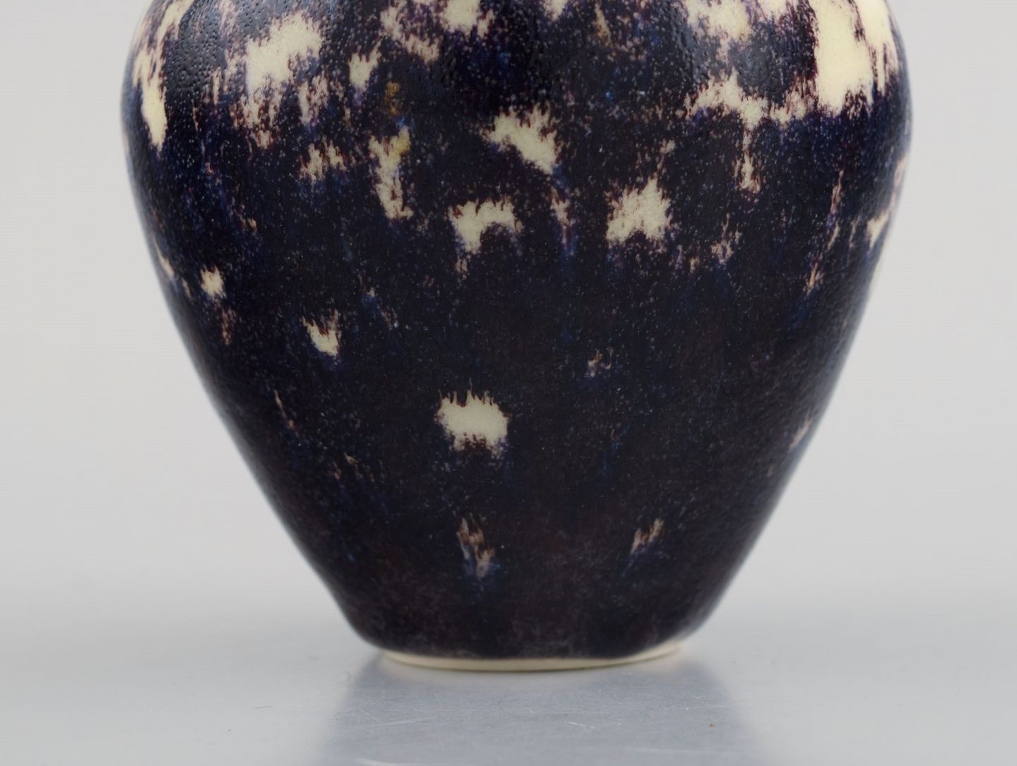 Europæisk studio keramiker. Unika vase i glaseret keramik. Smuk glasur i mørke lilla nuancer. 21. århundrede. Måler: 11 x 9,5 cm. I flot stand. Signeret.