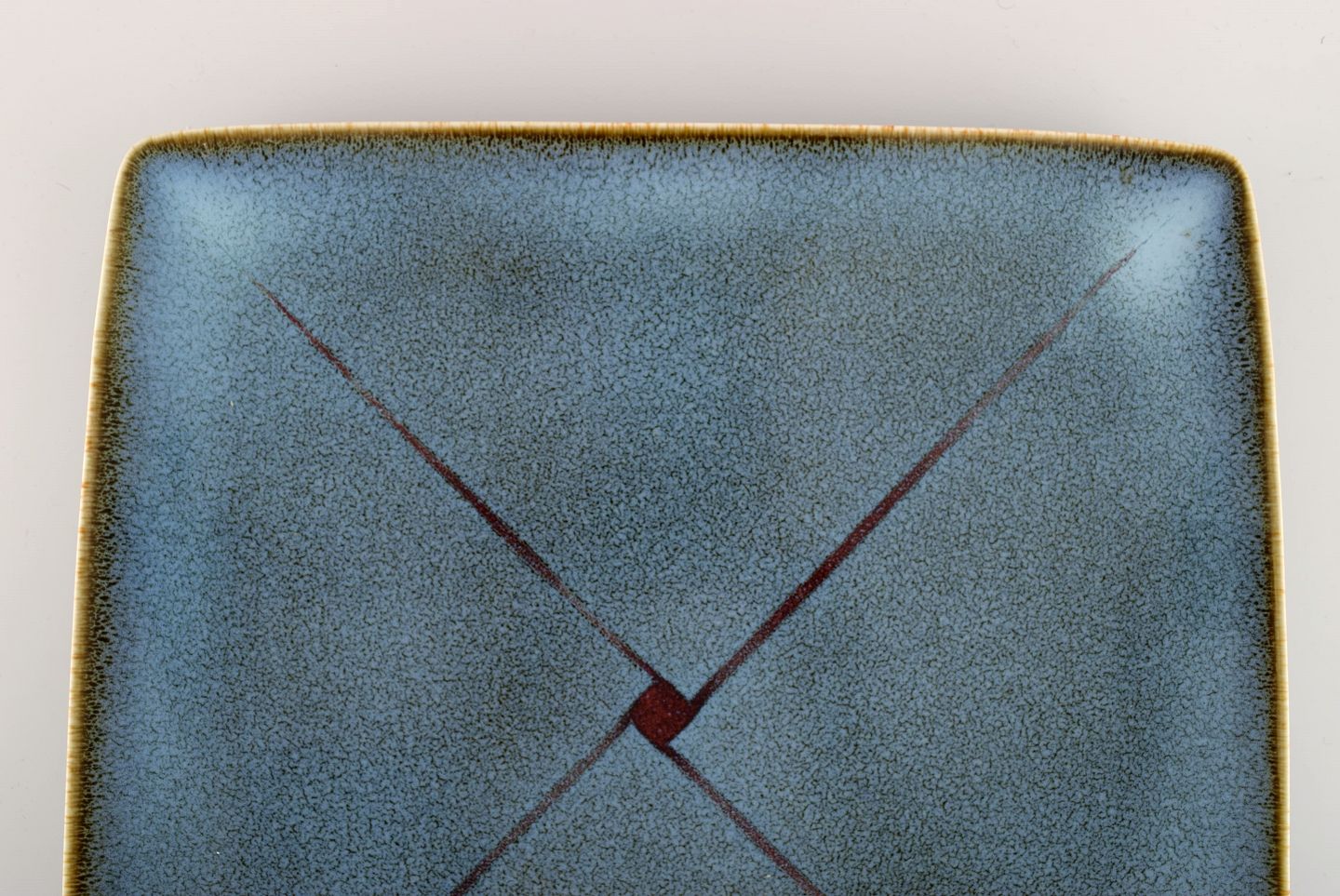 Inger Persson (f. 1936) for Rörstrand. Stort kvadratisk fad i glaseret keramik. Svensk design. Dateret 1989.