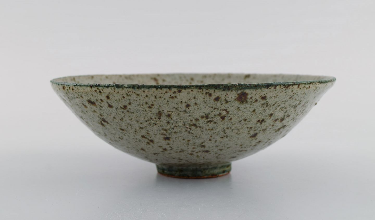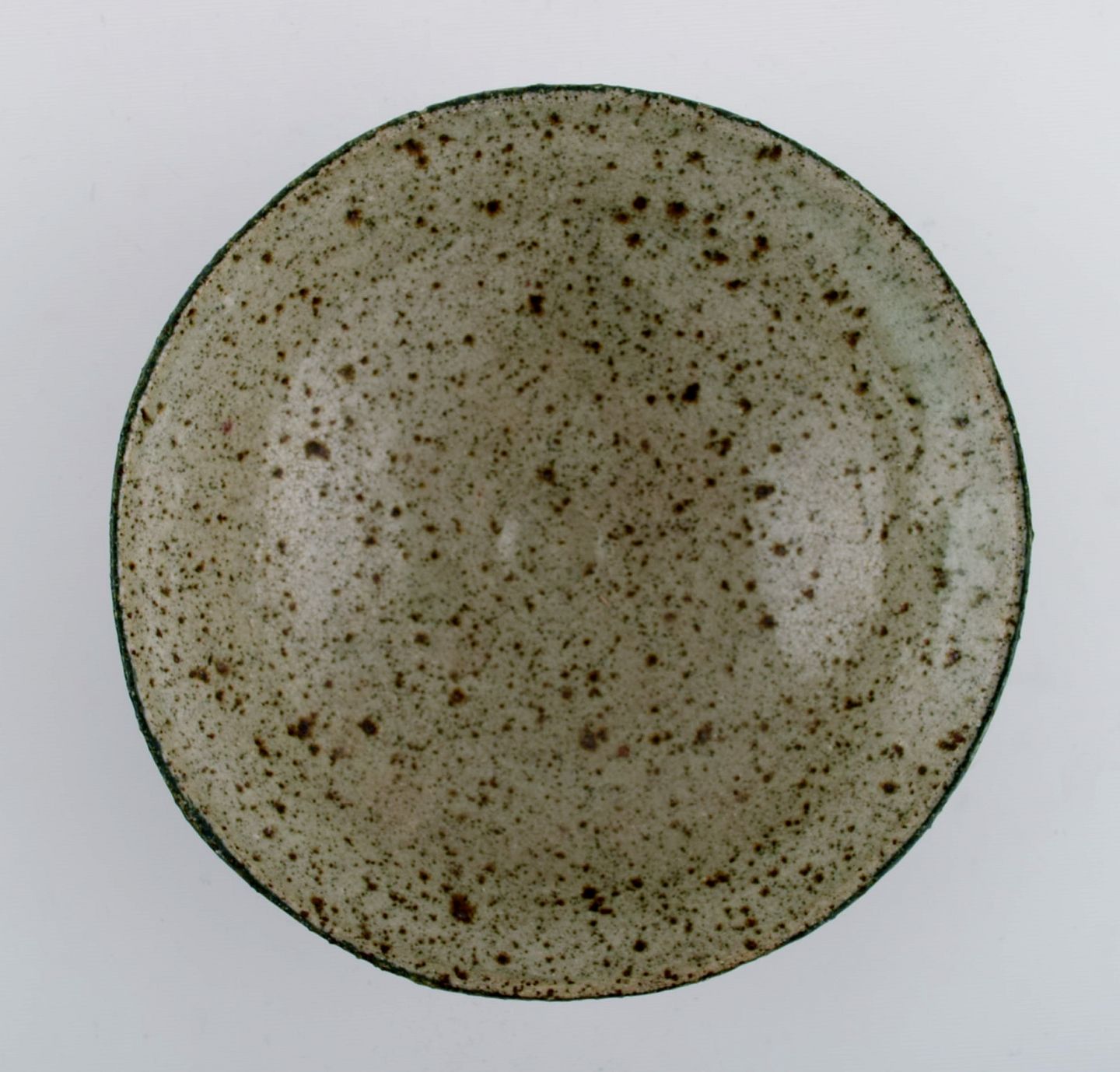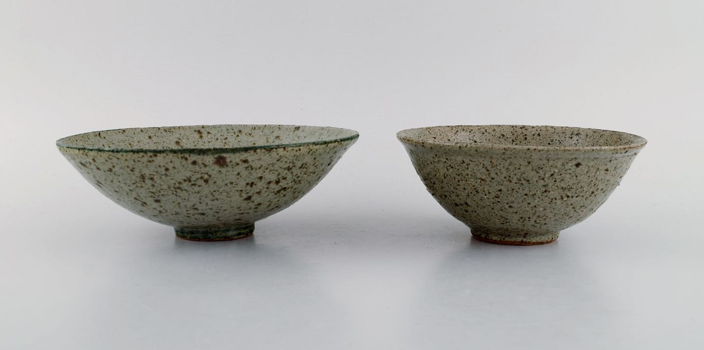 Europæisk studio keramiker. To skåle i glaseret stentøj. Smuk glasur i grå nuancer. Sent 1900-tallet. Største måler: 19,5 x 7 cm. I flot stand. Signeret.