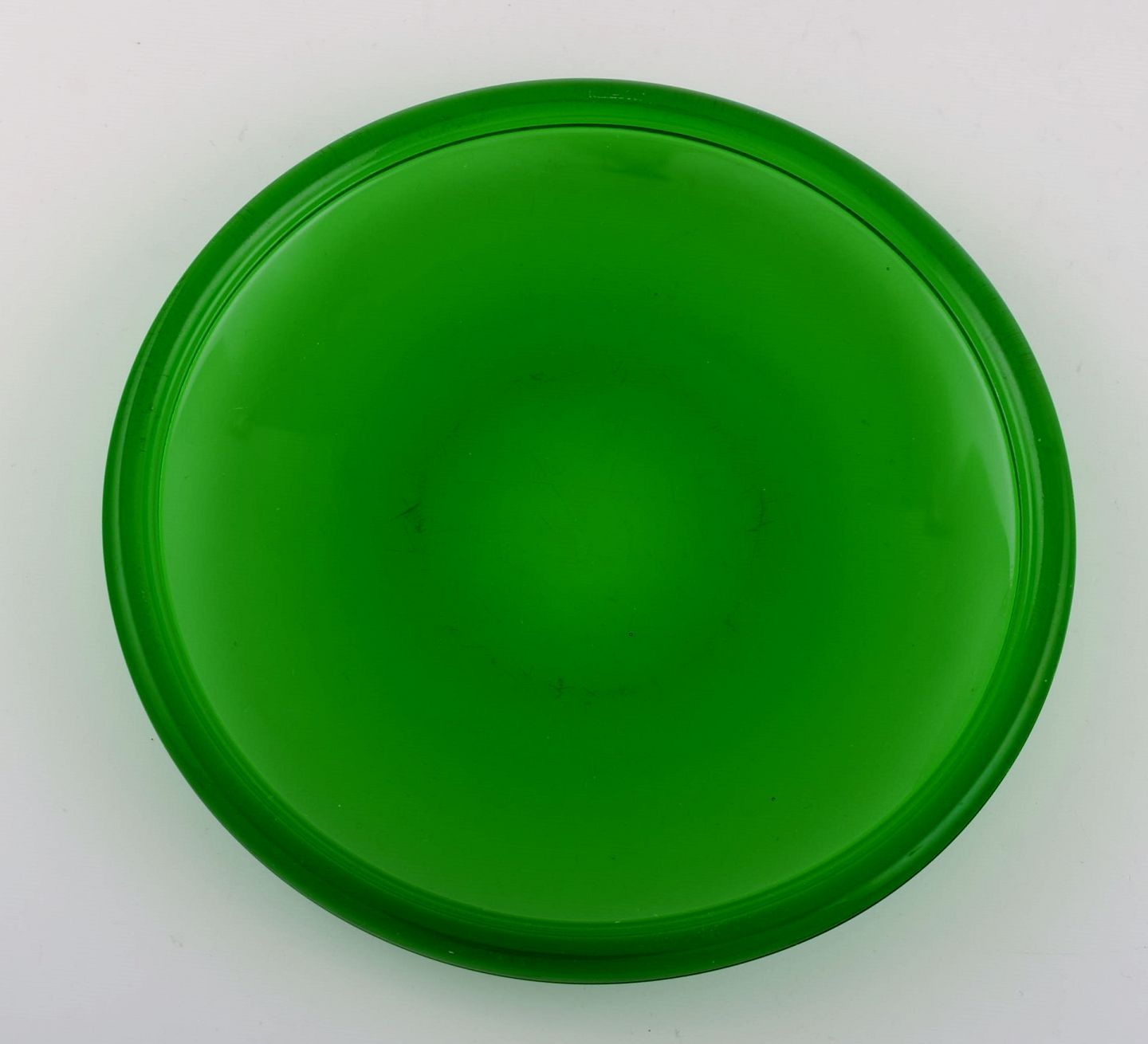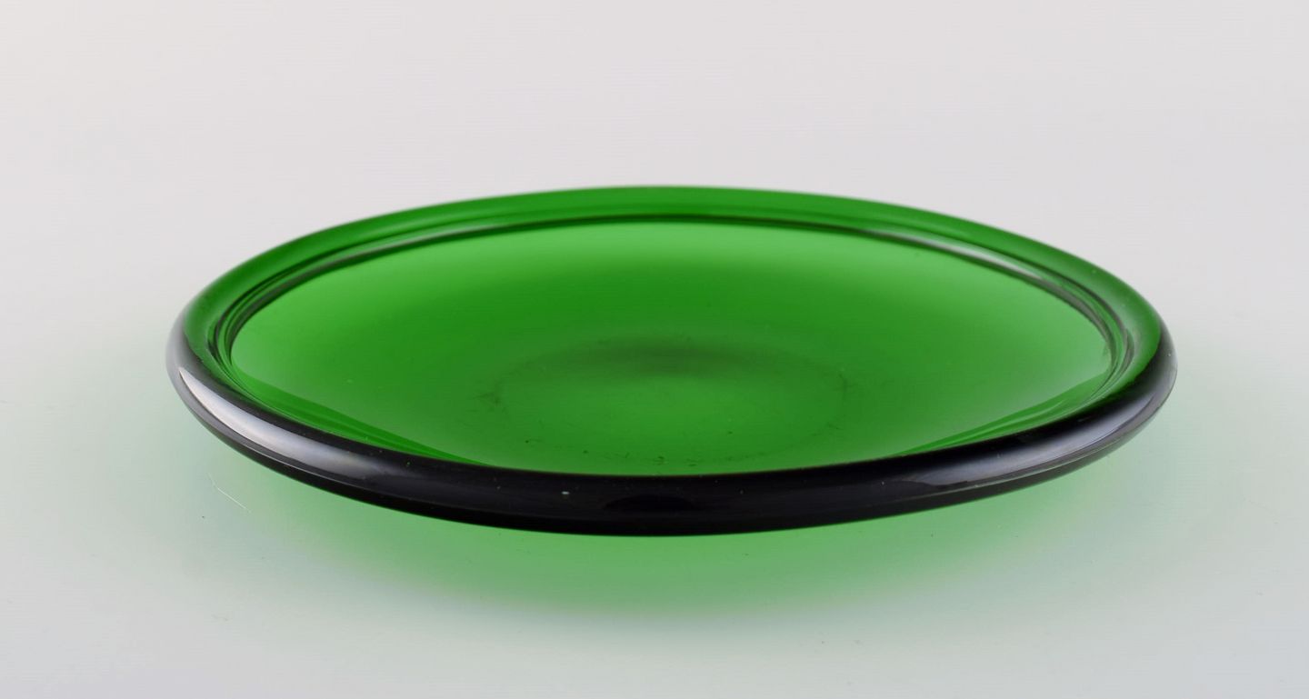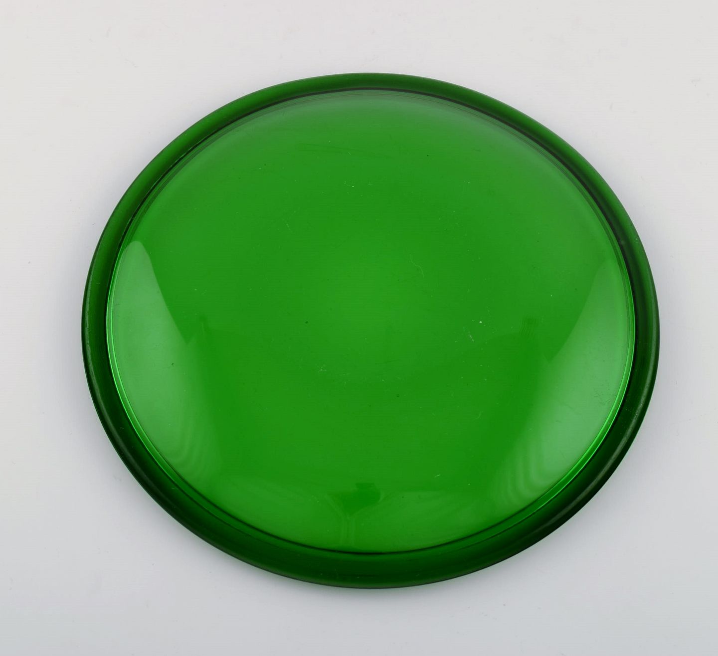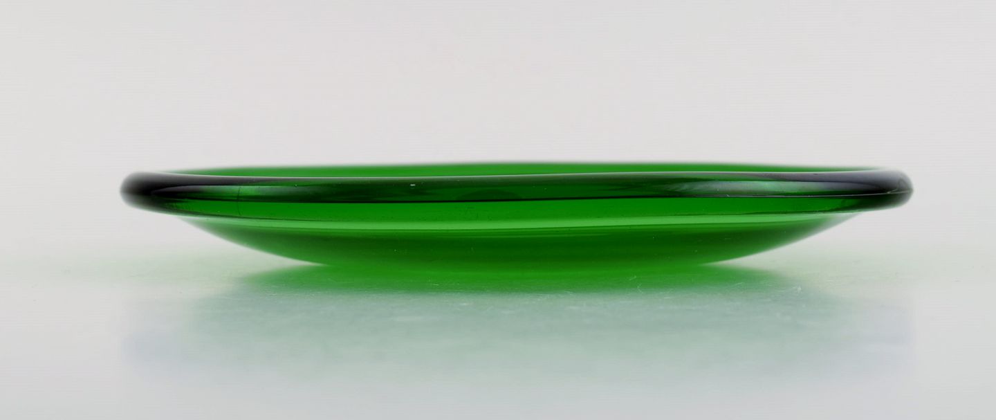Kaj Franck (1911-1989) for Nuutajärvi. Seks Luna tallerkener i grønt mundblæst kunstglas. 1970'erne. Diameter: 19 cm. I flot stand.