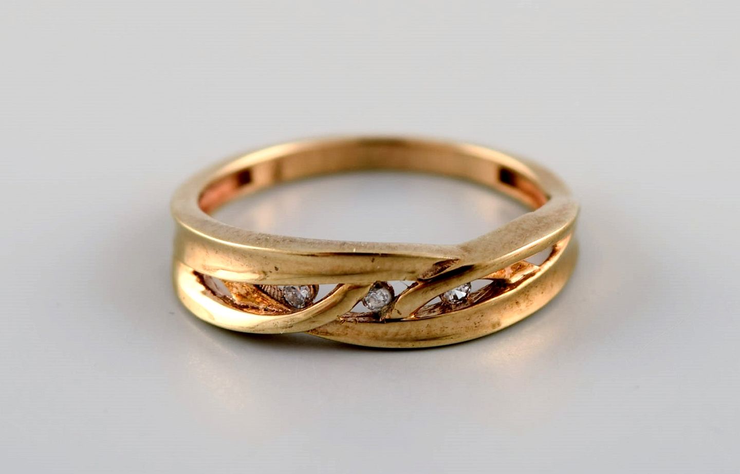 Dansk guldsmed. Vintage ring i 8 karat guld prydet med zirkoner. Midt 1900-tallet. Diameter: 16,5 mm. I flot stand. Stemplet. I de fleste tilfælde kan vi mod et gebyr (kr. 300) pr ring, få ændret størrelsen.
