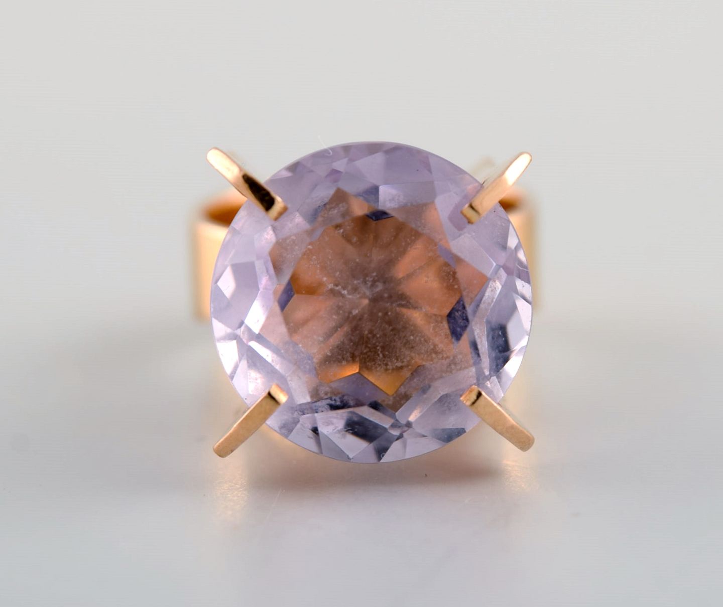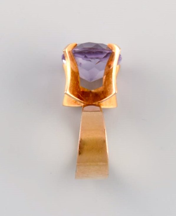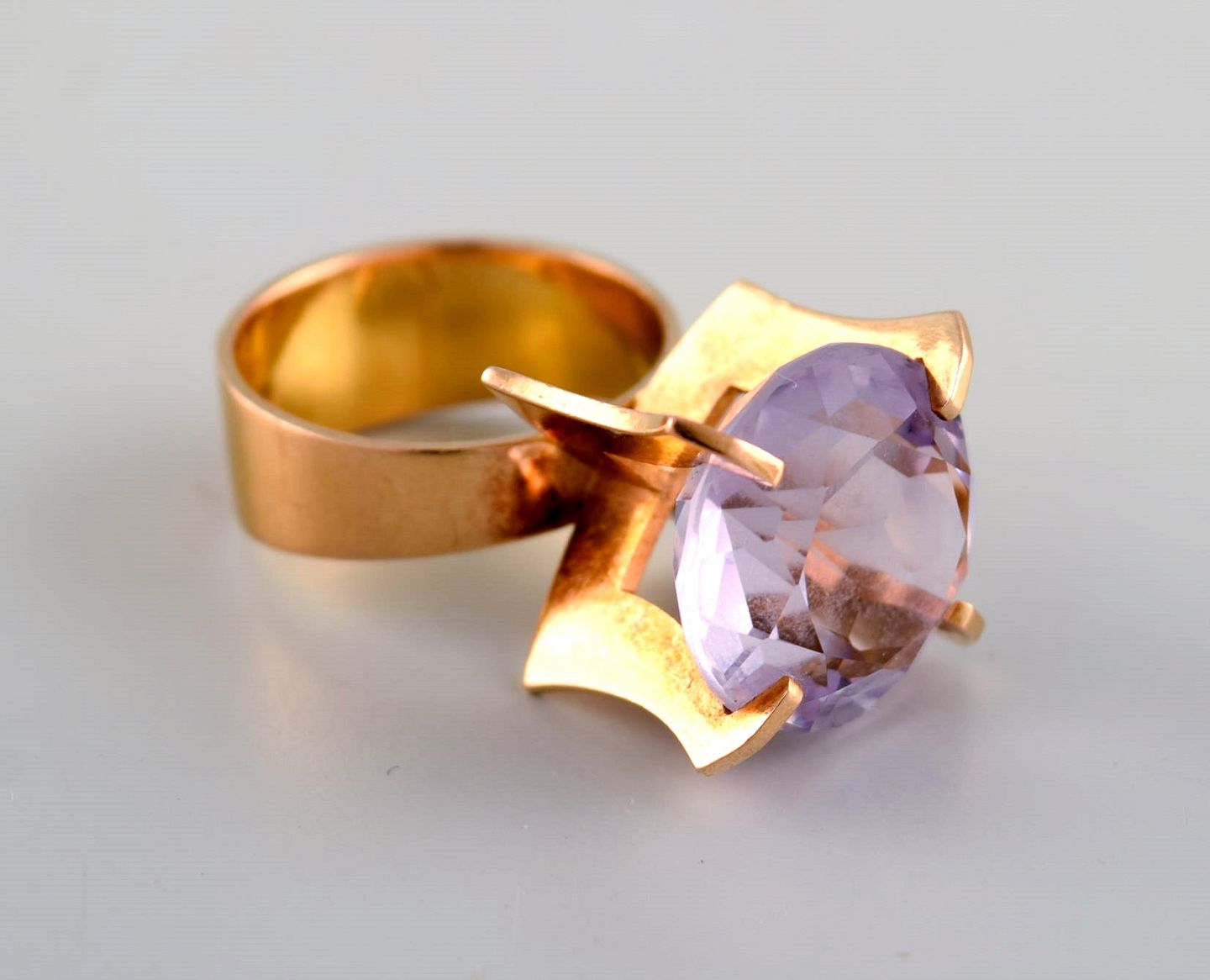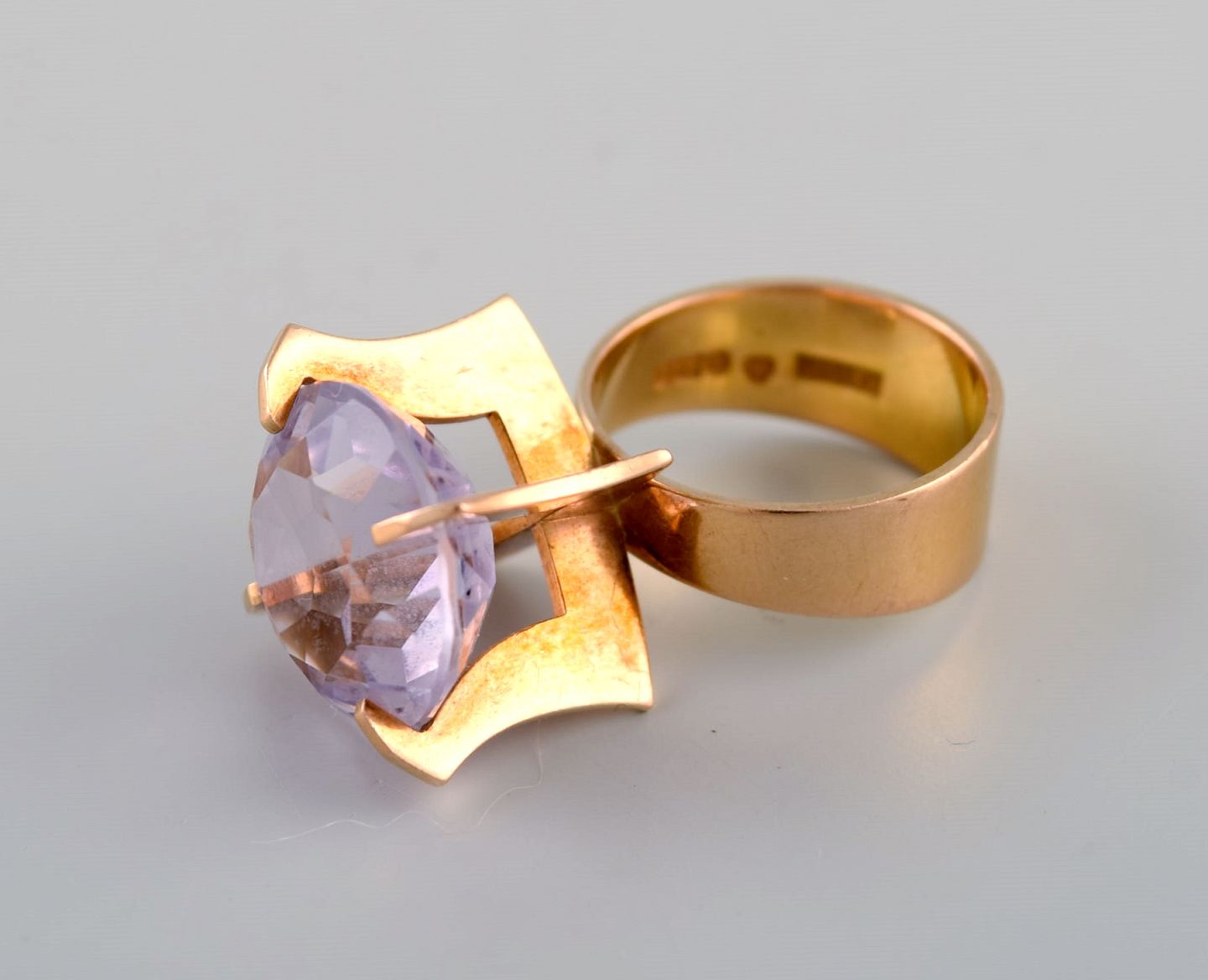 Swedish jeweler. Modernist vintage ring in 18 carat gold adorned with semi-precious stone. Dated 1967.