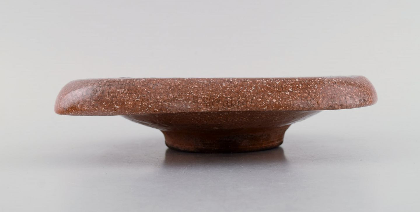 Georges Jouve (1910-1964), France. Unique bowl on foot in glazed crackle stoneware. Mid-20th century.