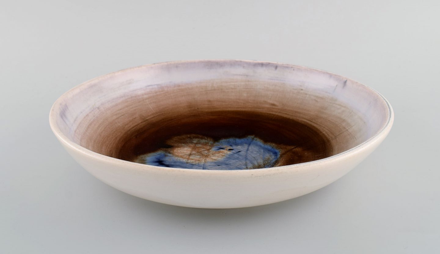 Georges Jouve (1910-1964), France. Unique bowl in glazed stoneware. Beautiful glaze in blue and light earth tones. Mid-20th century.