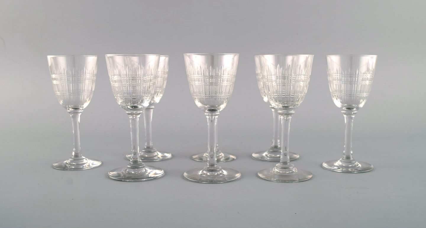 Baccarat, Frankrig. Otte art deco Cavour hedvinsglas i mundblæst krystalglas. 1920/30'erne. Måler: 12,5 x 5,5 cm. I perfekt stand.
