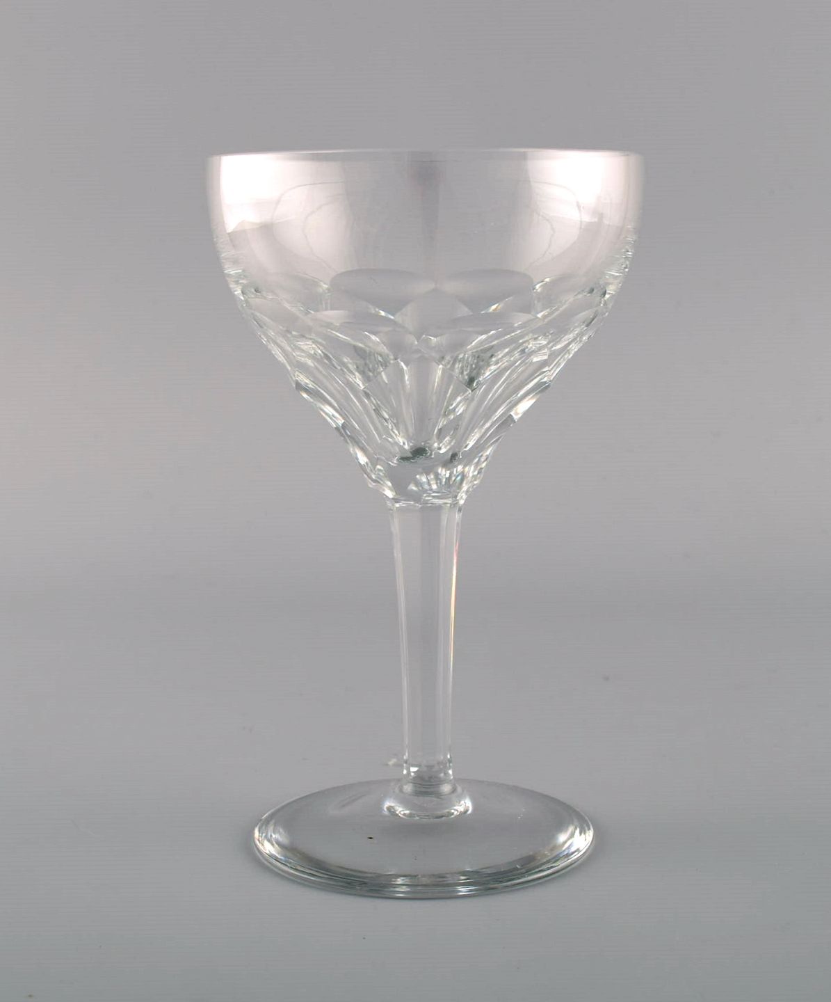 Val St. Lambert, Belgium. Nine red wine glasses in clear mouth-blown crystal glass. 1930s. Measures: 16.3 x 10 cm In perfect condition.