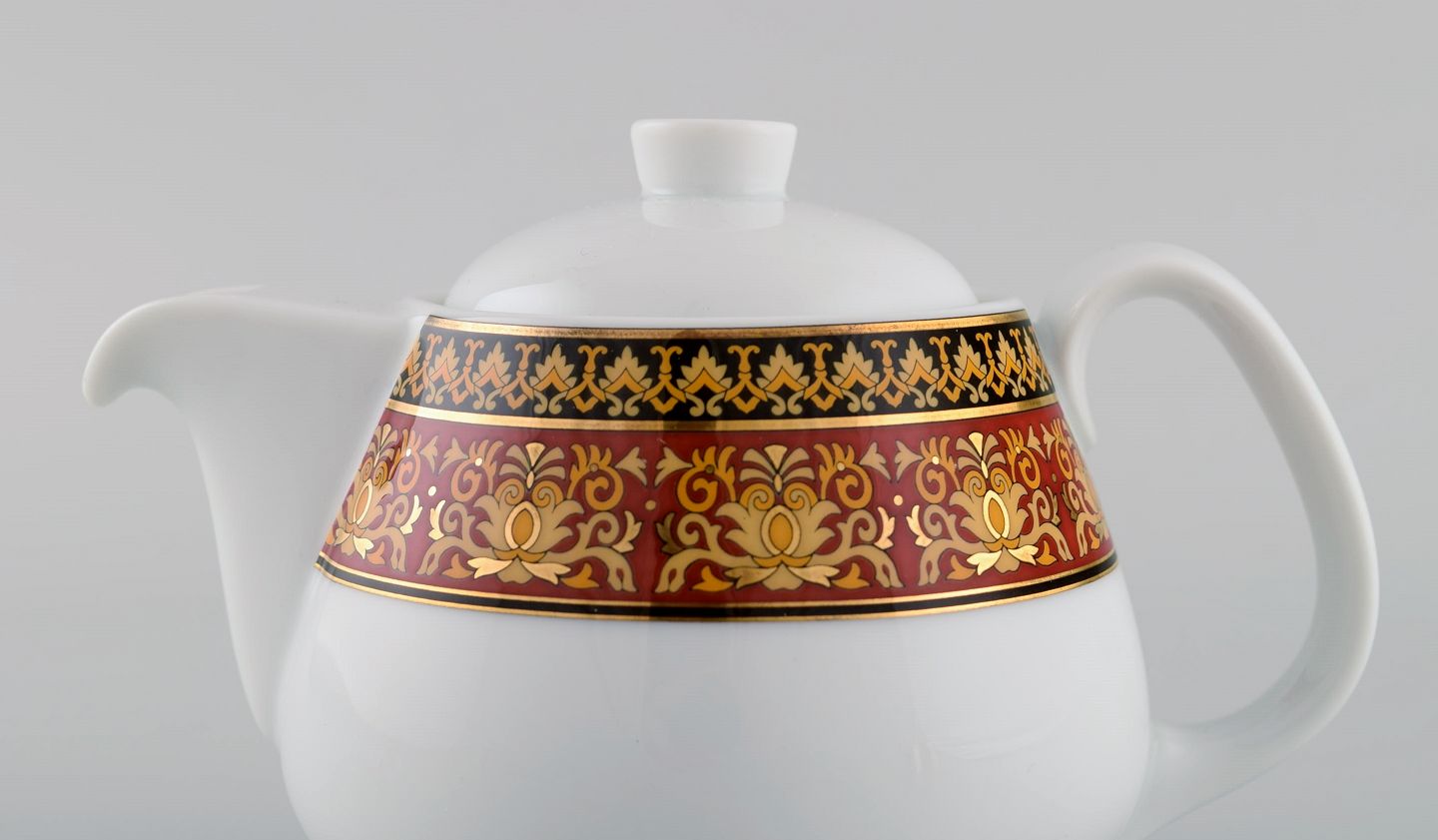 Gianni Versace for Rosenthal. Medusa porcelain teapot with gold decoration. Late 20th century. Measures: 16 x 11 cm. In perfect condition. Stamped. Original box and certificate included.