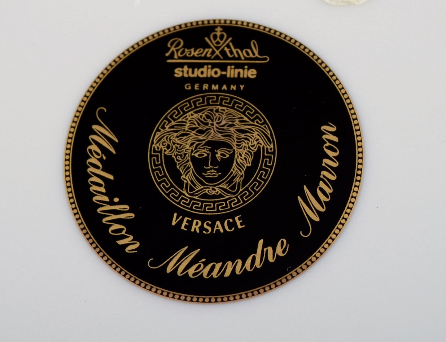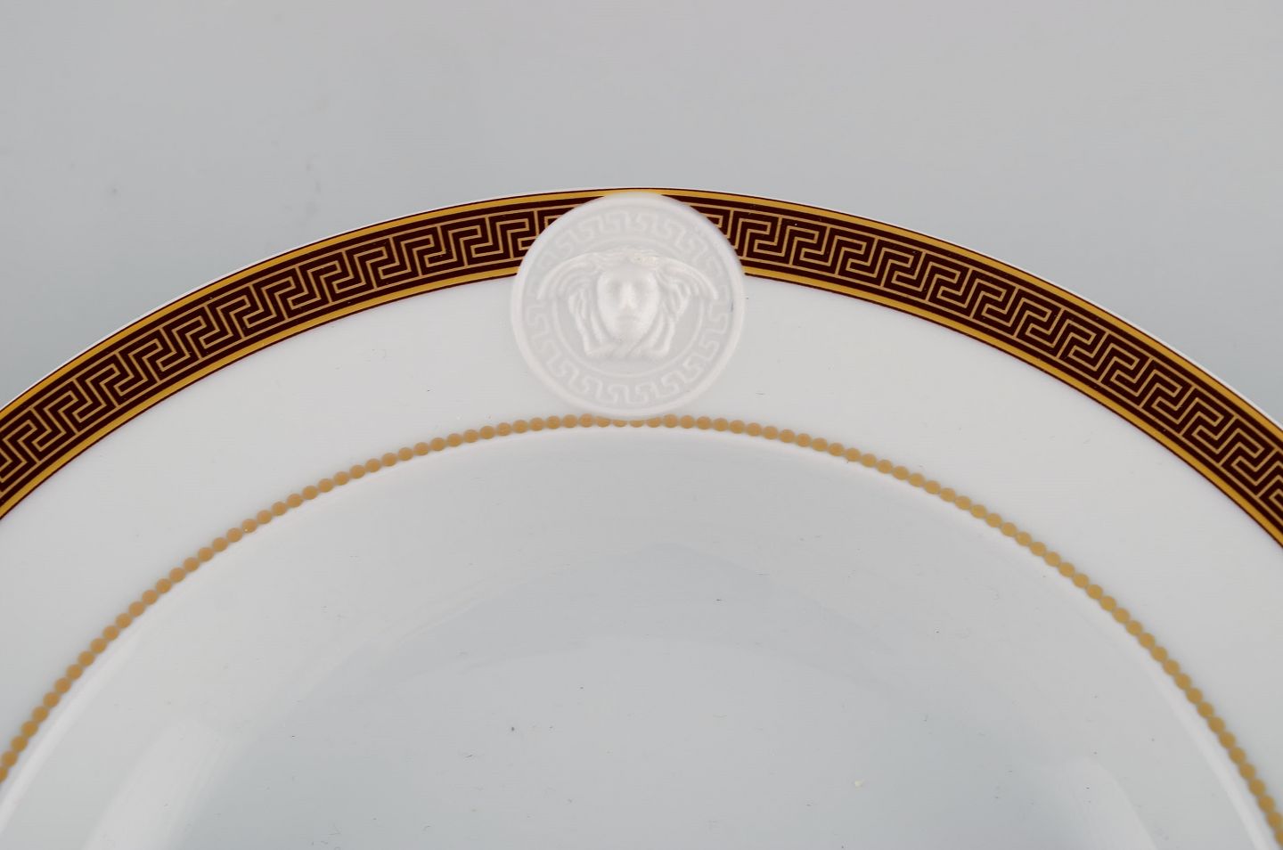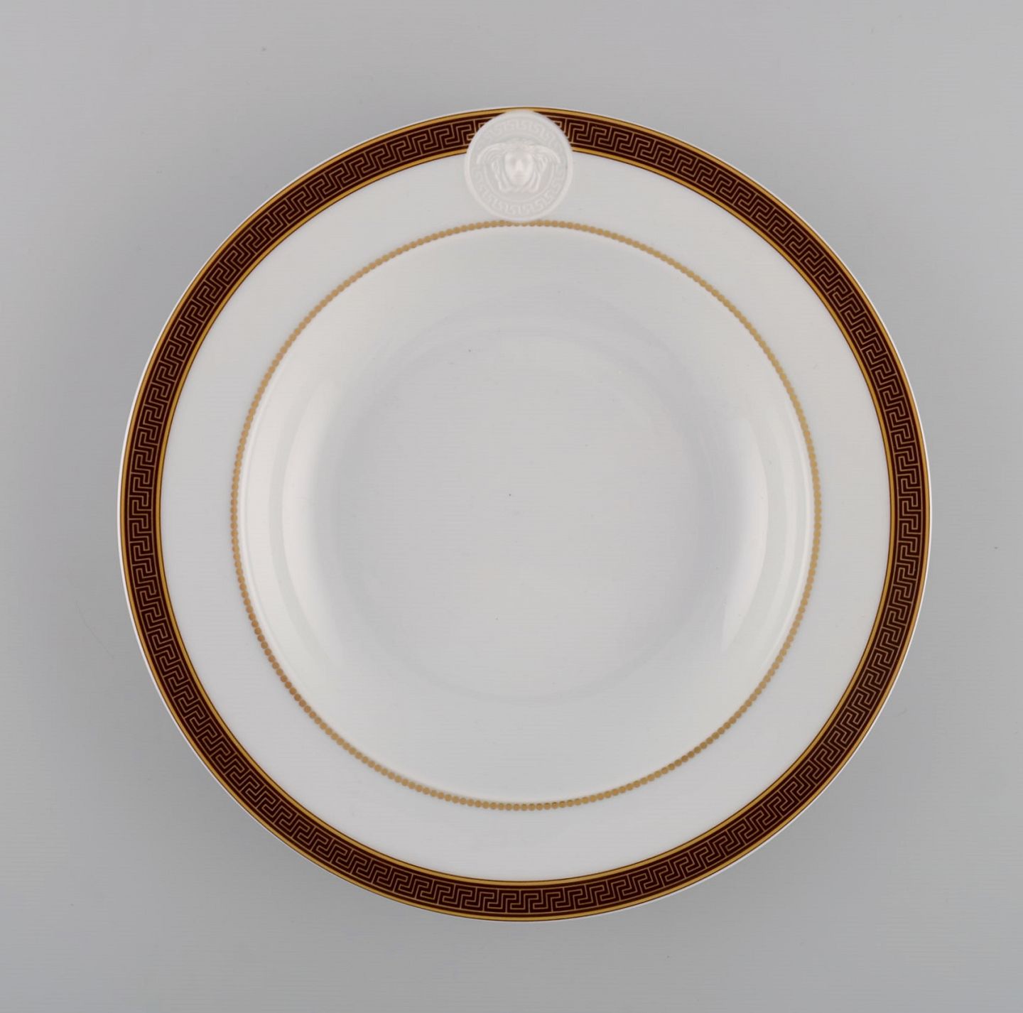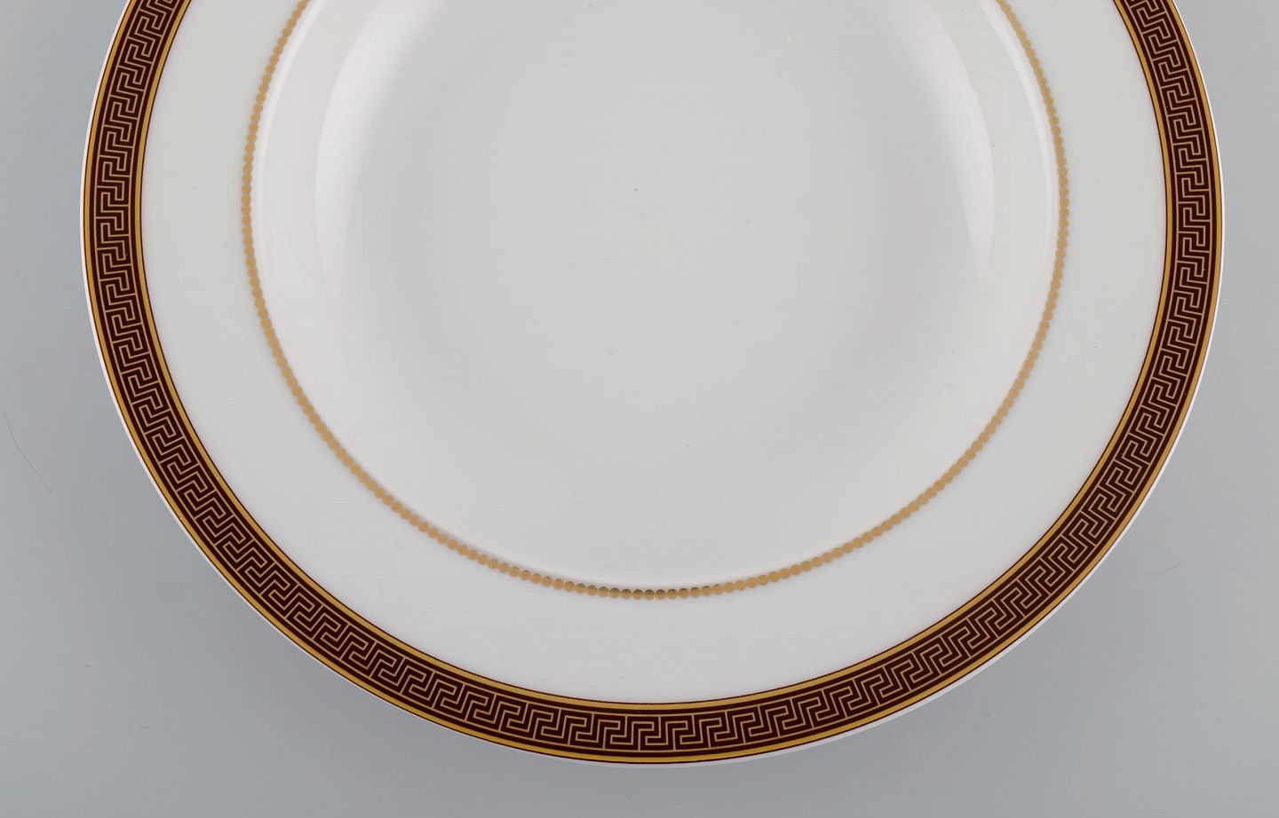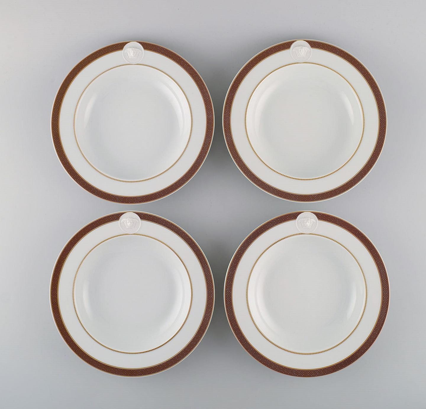 Gianni Versace for Rosenthal. Fire Médaillon Méandre D'or dybe tallerkener i hvid porcelæn med gulddekoration. Sent 1900-tallet. Måler: 22,5 x 3,5 cm. I perfekt stand. Stemplet. Originale kasser medfølger.