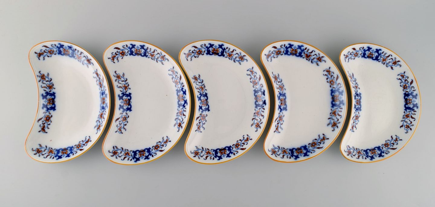 Mintons, England. Fem antikke skåle i håndmalet fajance. Kinesisk stil, tidligt 1900-tallet. Måler: 21 x 13 cm. I flot stand. Stemplet.