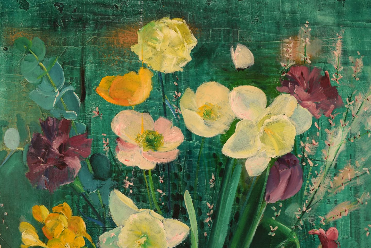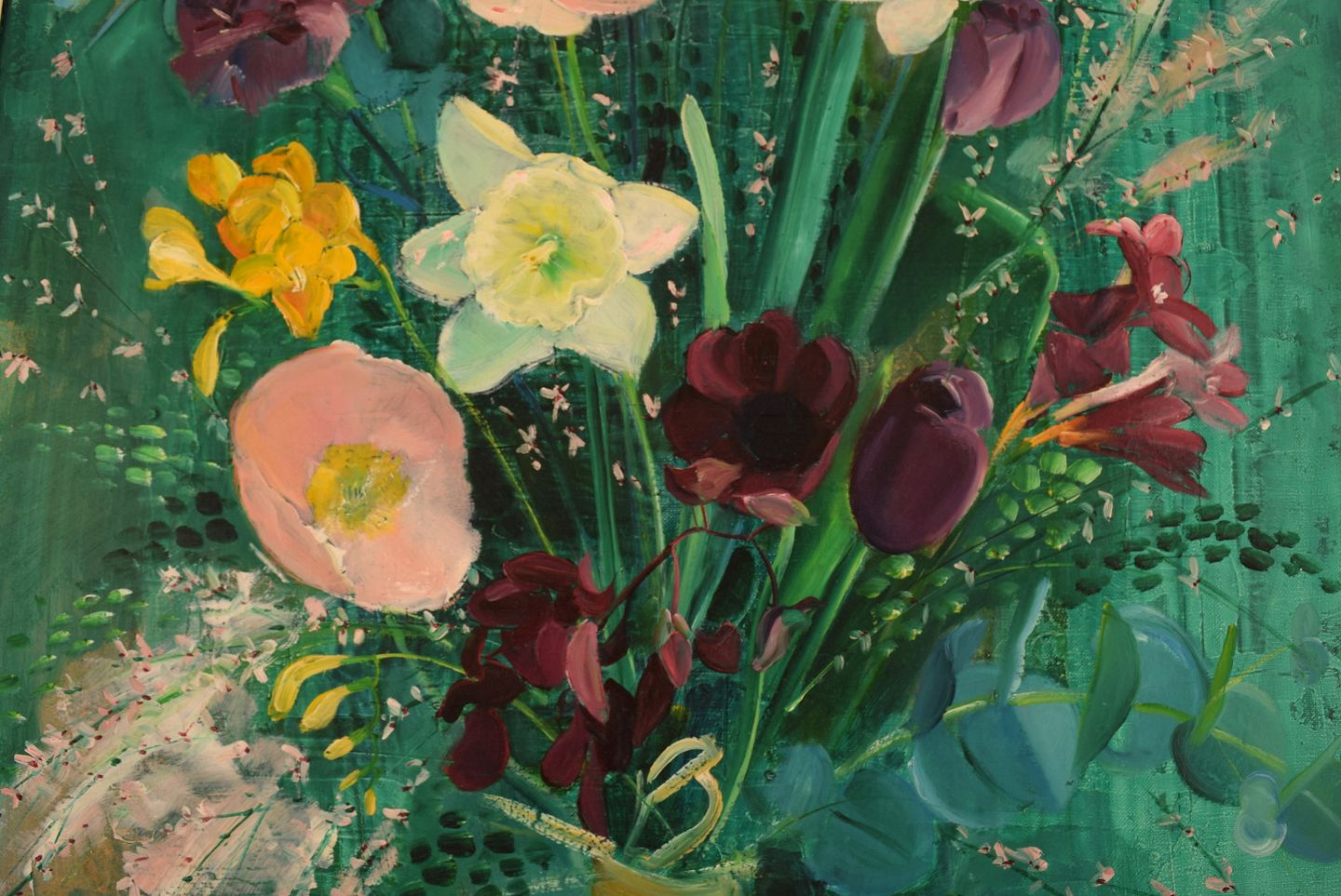 Hans Ripa (1912-2001), Swedish artist. Oil on canvas. Arrangement with flowers. 1970's. The canvas measures: 72 x 59 cm. The frame measures: 6 cm. Signed and dated. In excellent condition.