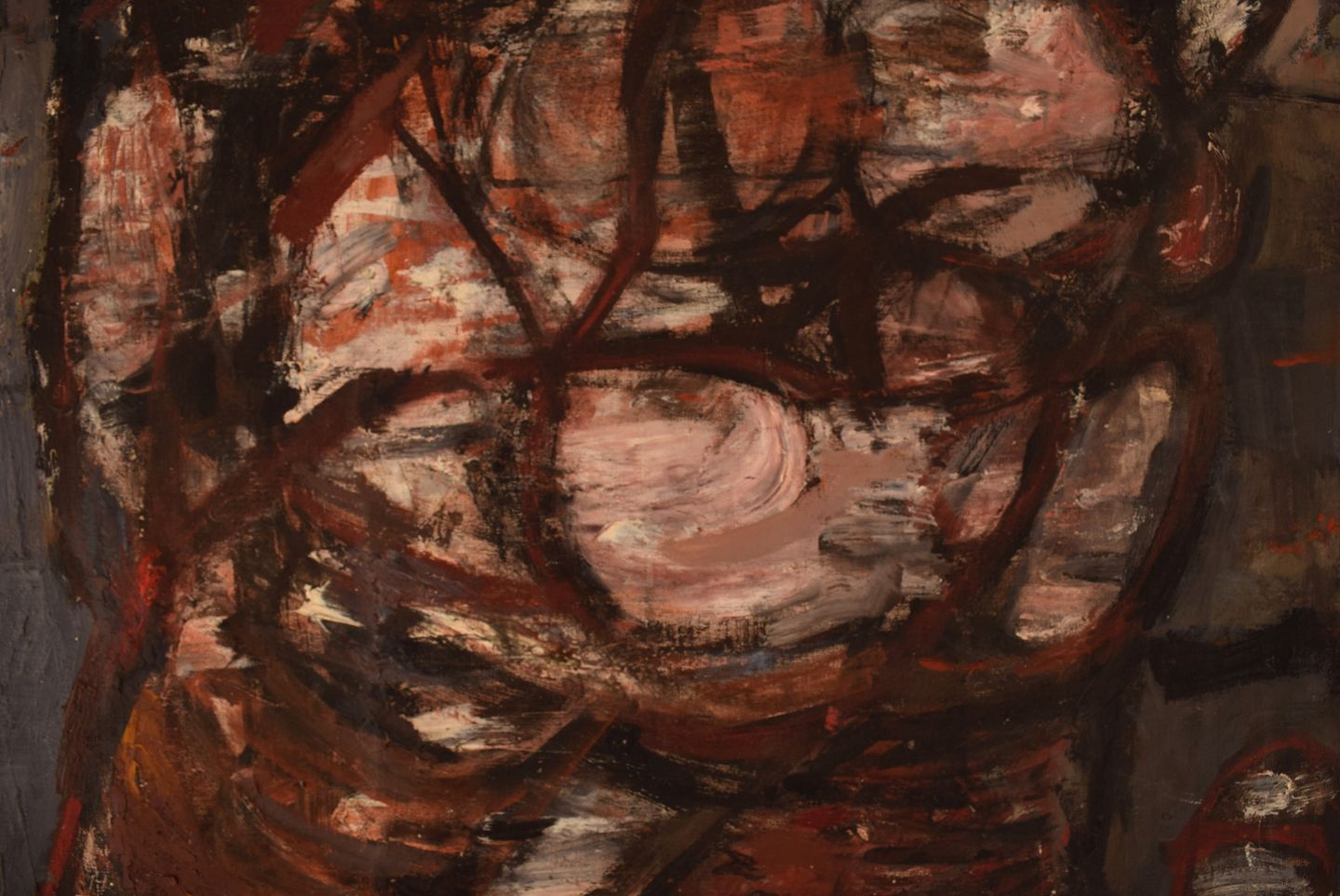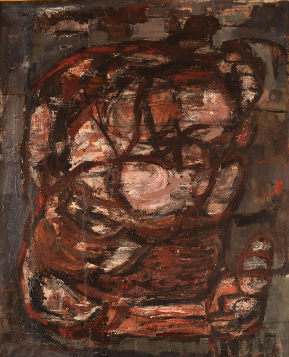 Pipin Henderson (f. 1924), Danmark. Olie på lærred. Abstrakt komposition. Midt 1900-tallet. Lærredet måler: 69 x 57 cm. Rammen måler: 7 cm. I flot stand. Usigneret.