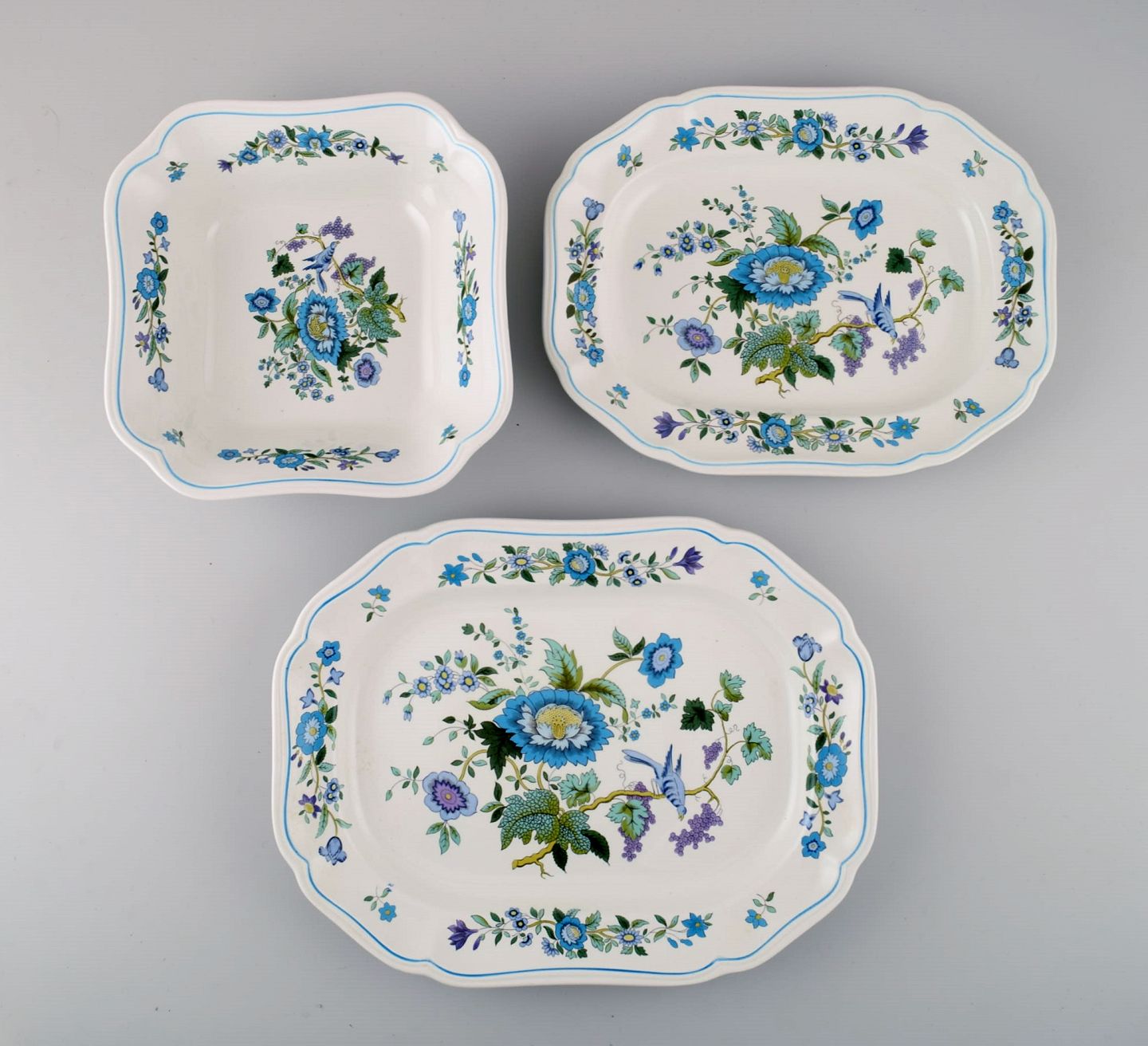 Spode, England. Bowl and two dishes in hand-painted porcelain with floral and bird motifs. 1960s / 70s. The bowl measures: 23.5 x 7 cm. Largest dish measures: 36.5 x 28 cm. In excellent condition. Stamped.