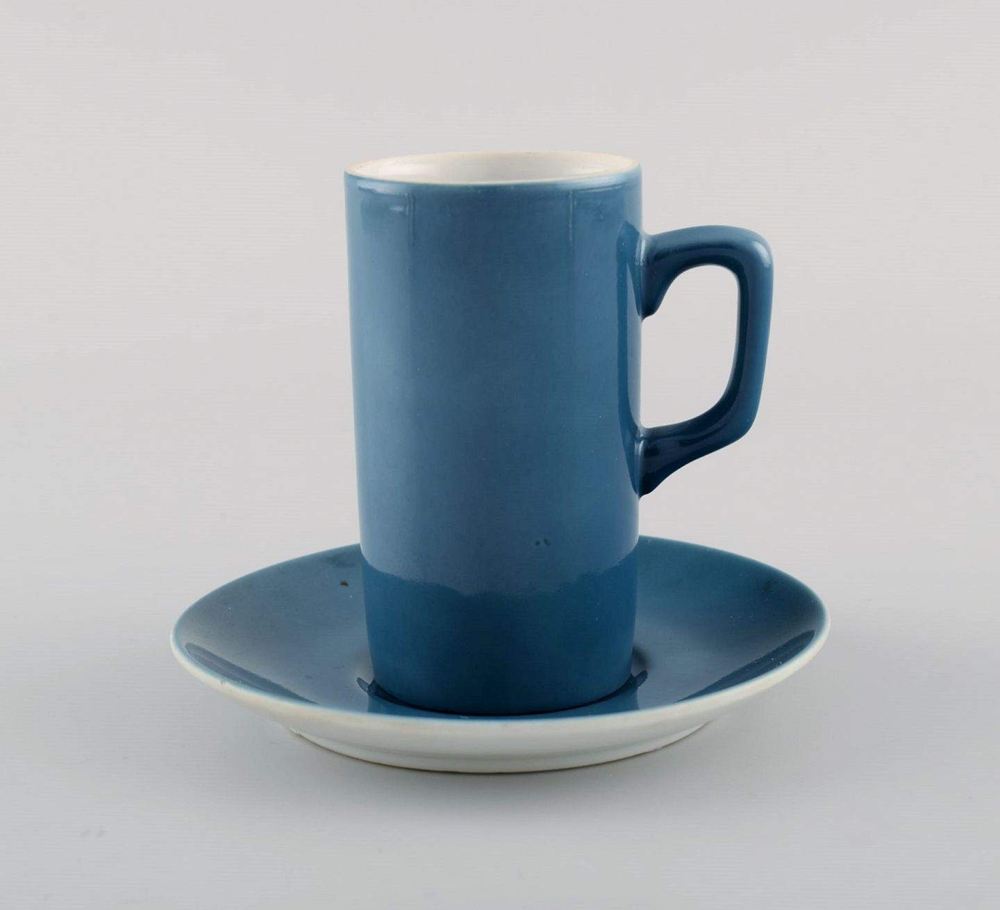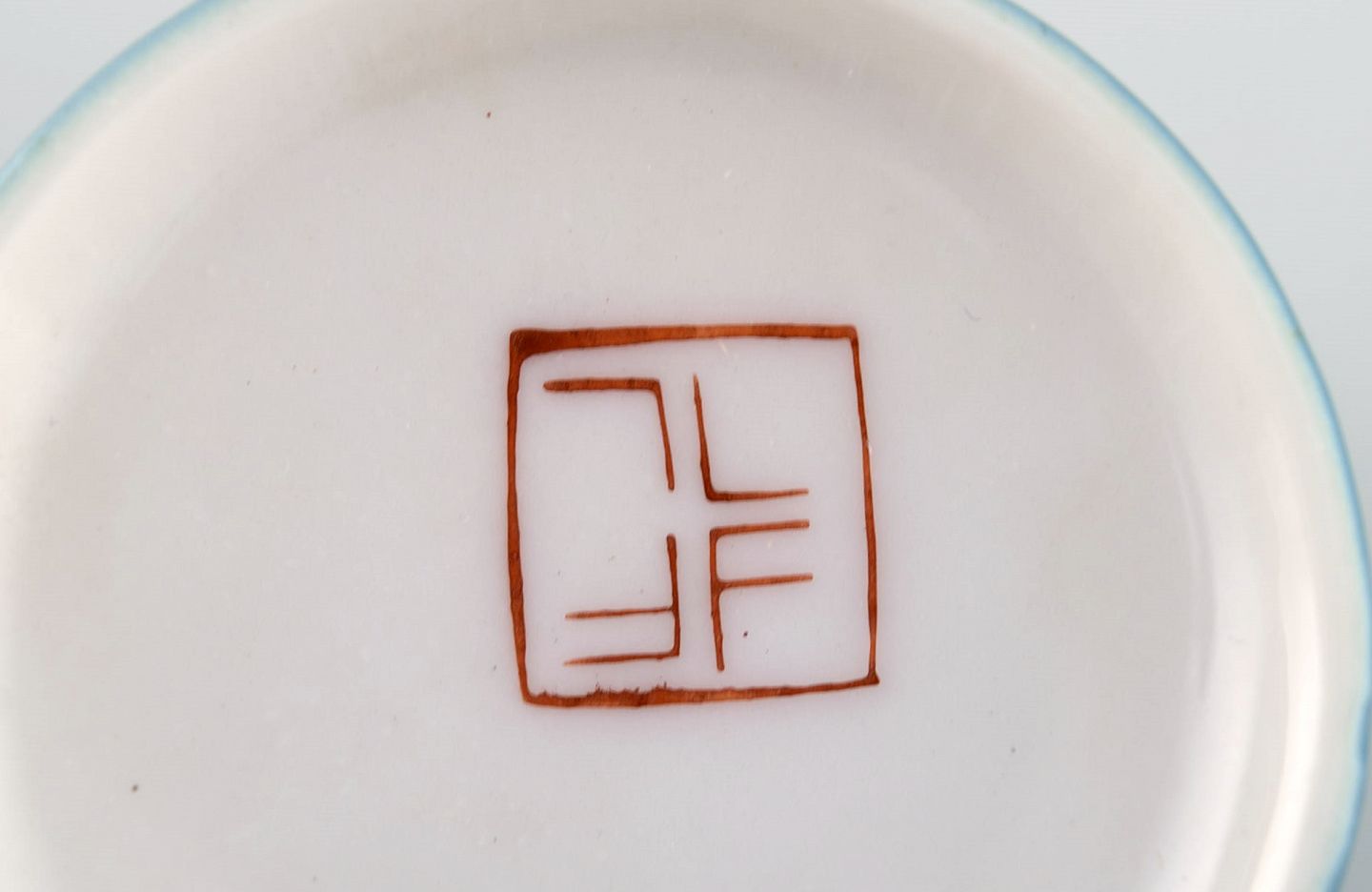 Kenji Fujita for Tackett Associates. Seks kaffekopper med underkopper i porcelæn. Dateret 1953-56. Koppen måler: 8 x 4,5 cm. Underkop diameter: 10,3 cm. I flot stand. Stemplet.