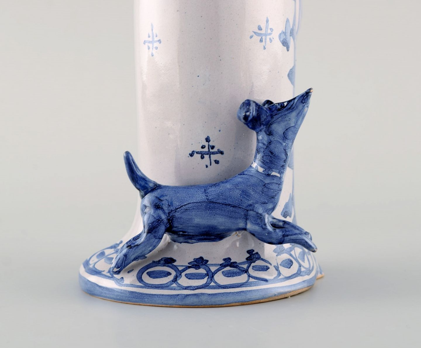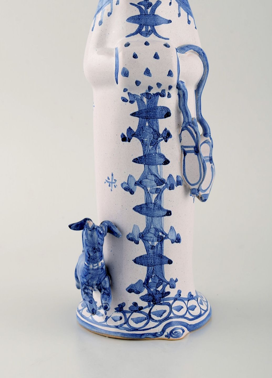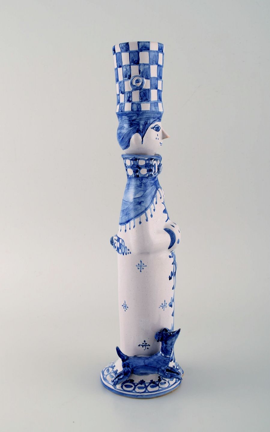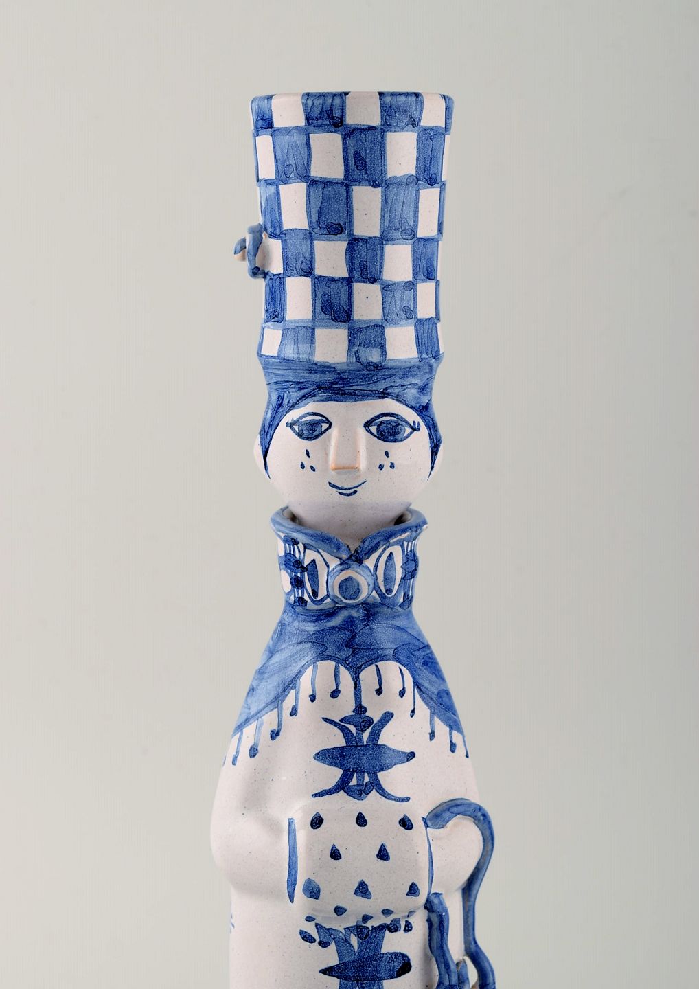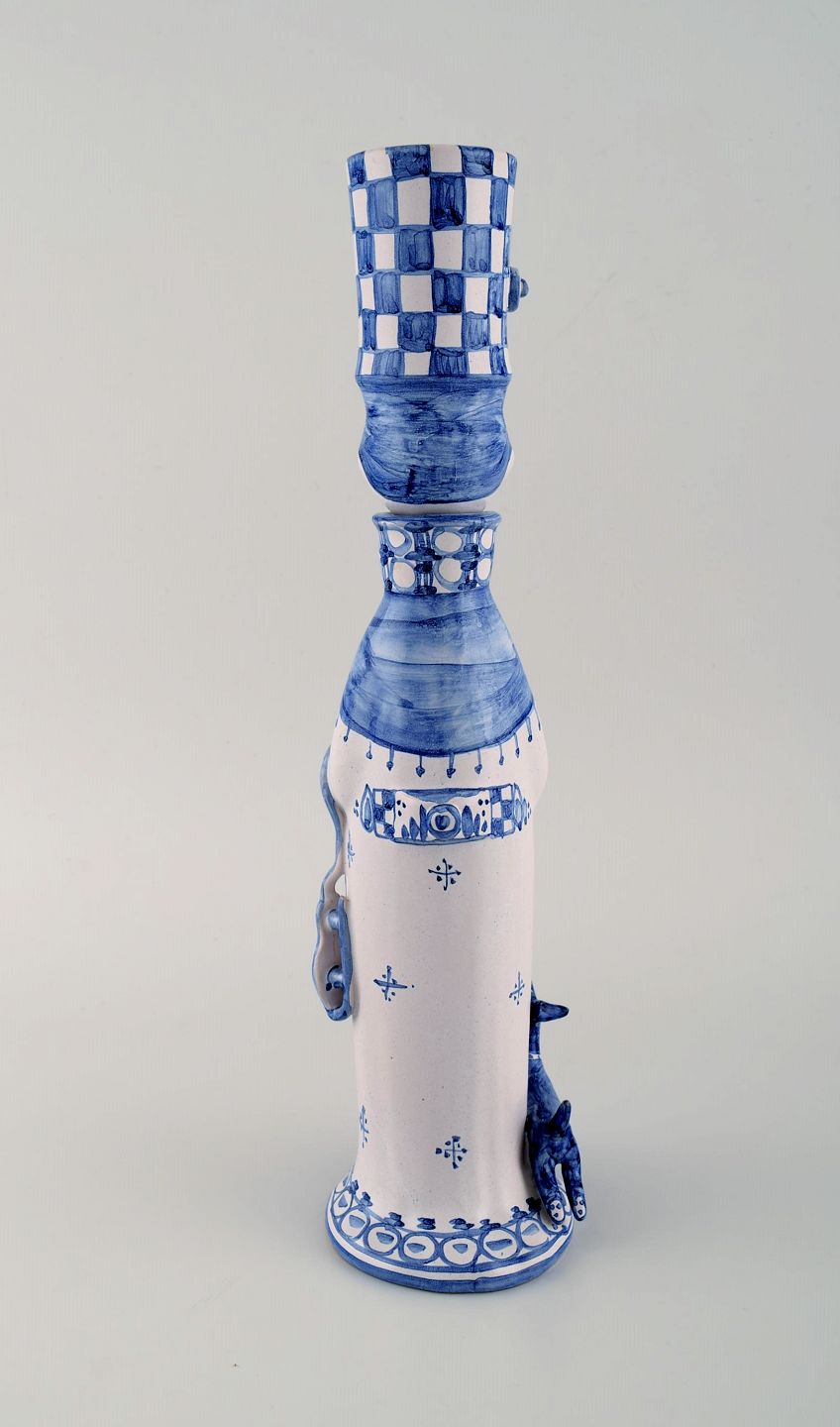Bjørn Wiinblad unique ceramic figure. "Winter" in blue "Seasons". Signed and dated. 1999. Measures: 34 x 9,5 cm. In perfect condition. All 4 figures from the "Seasons" in stock.