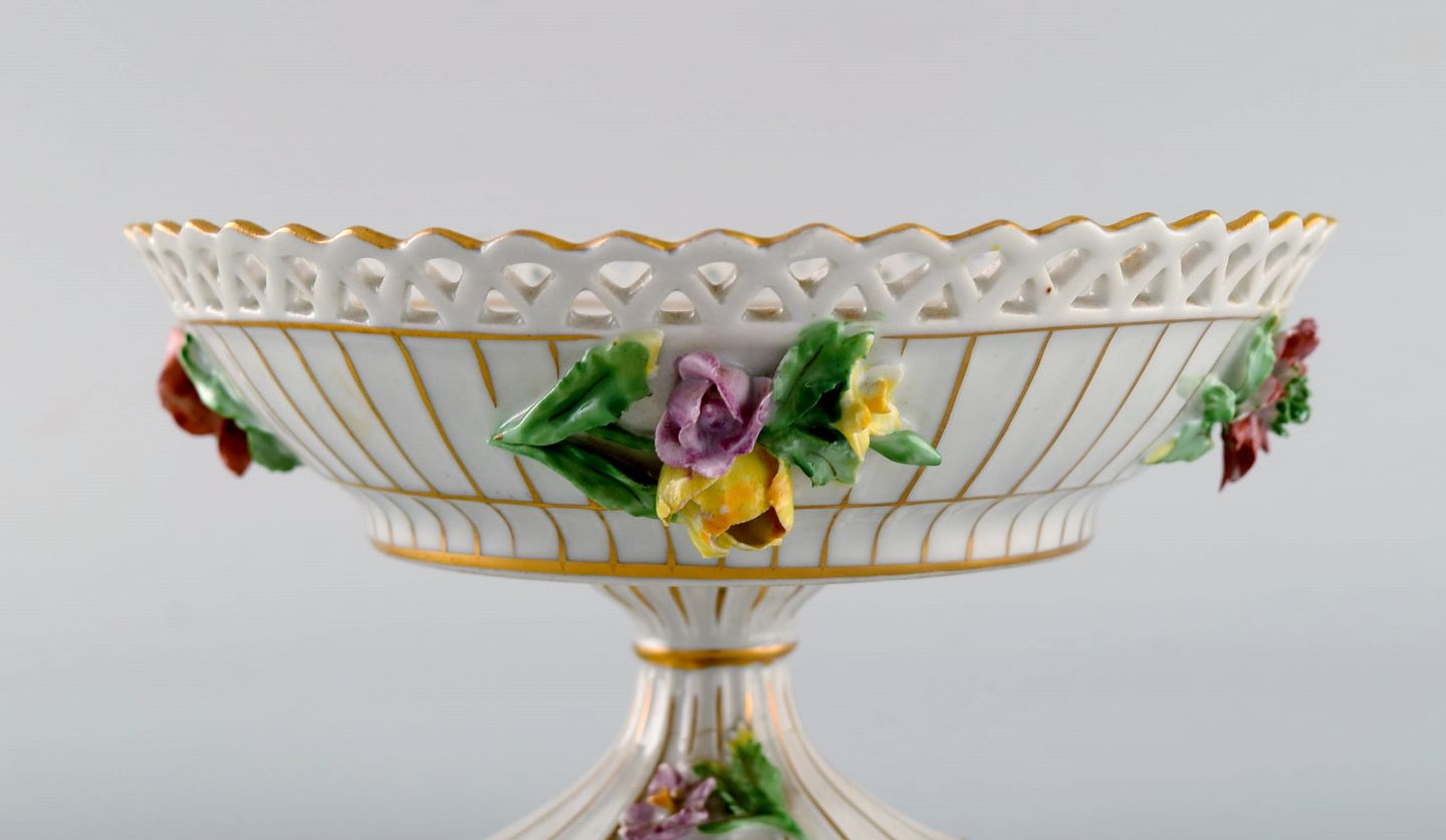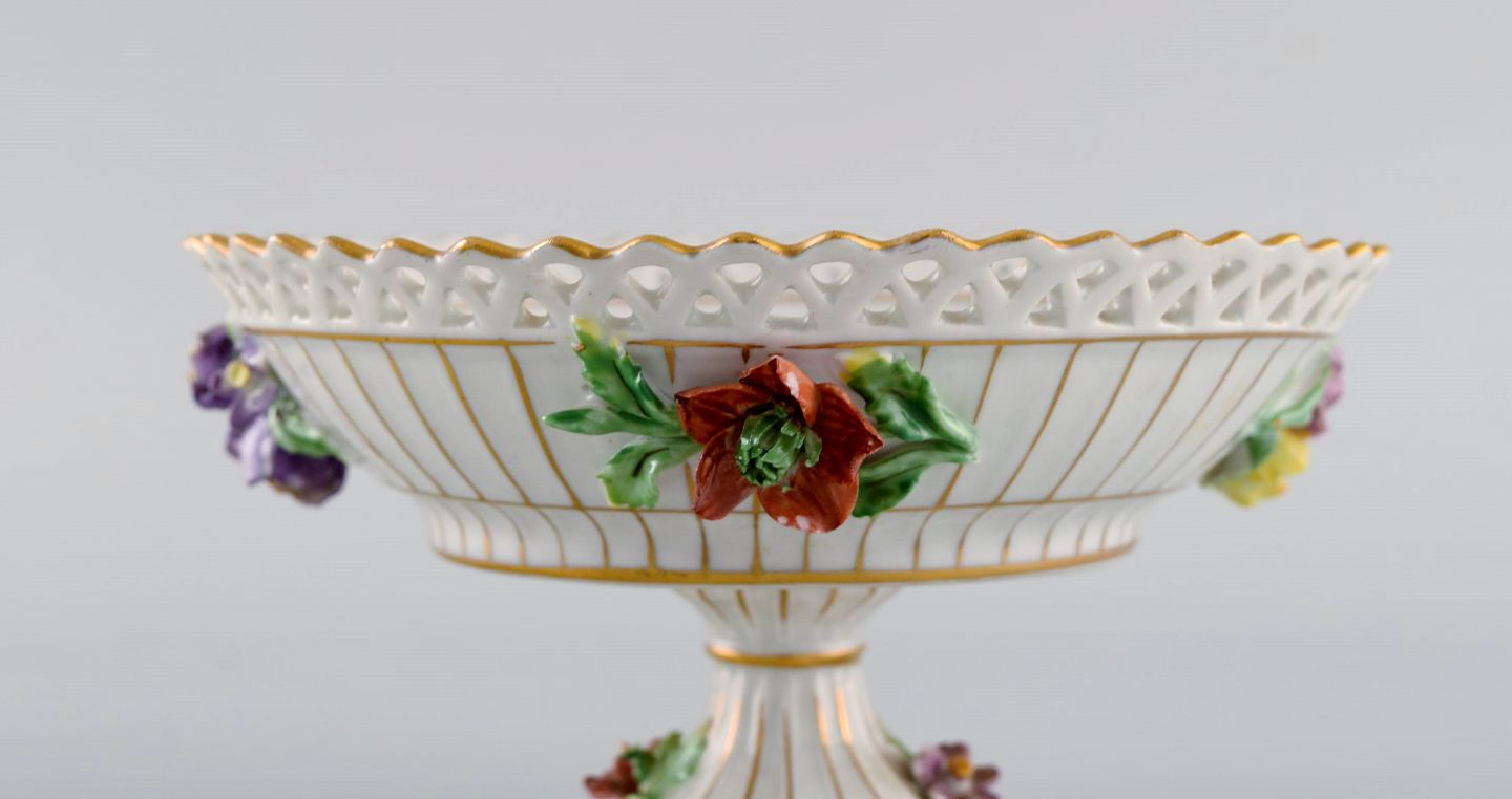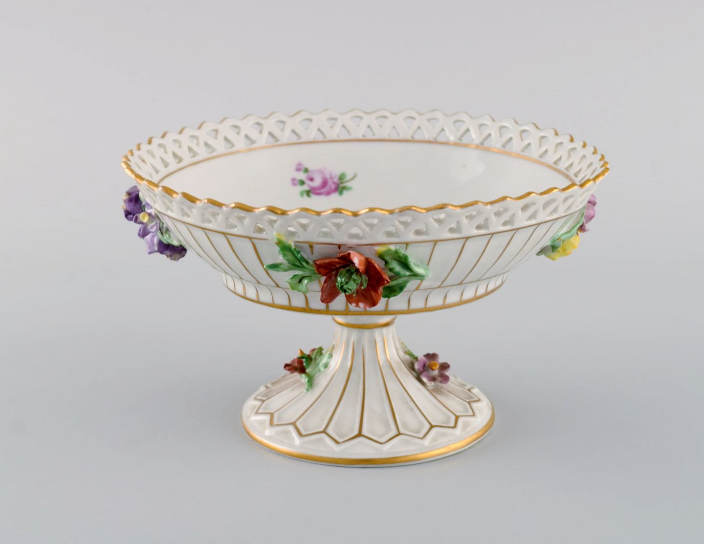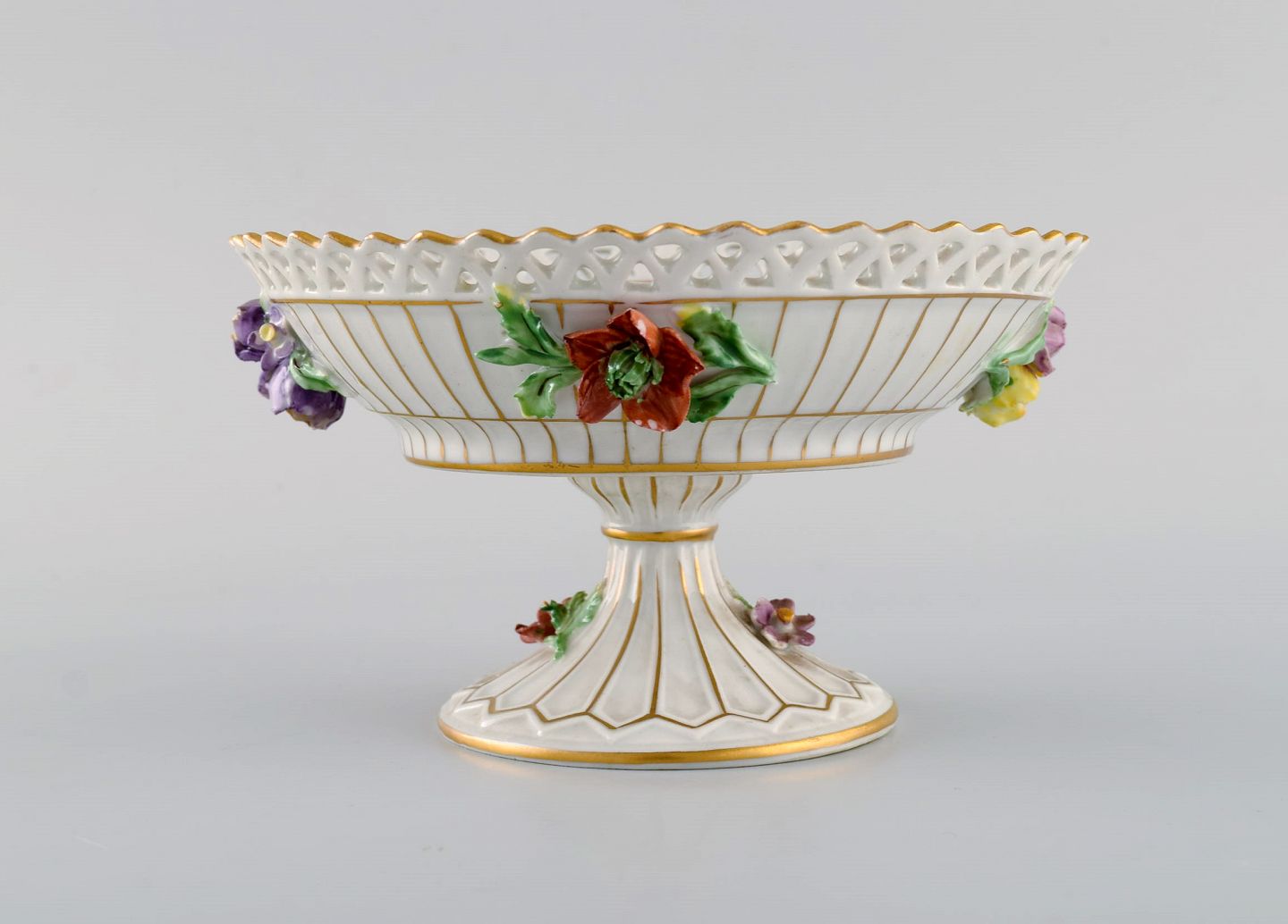 Dresden opsats i gennembrudt porcelæn med håndmalede blomster og gulddekoration. 1920'erne. Måler: 16 x 9,5 cm. I flot stand. Stemplet.