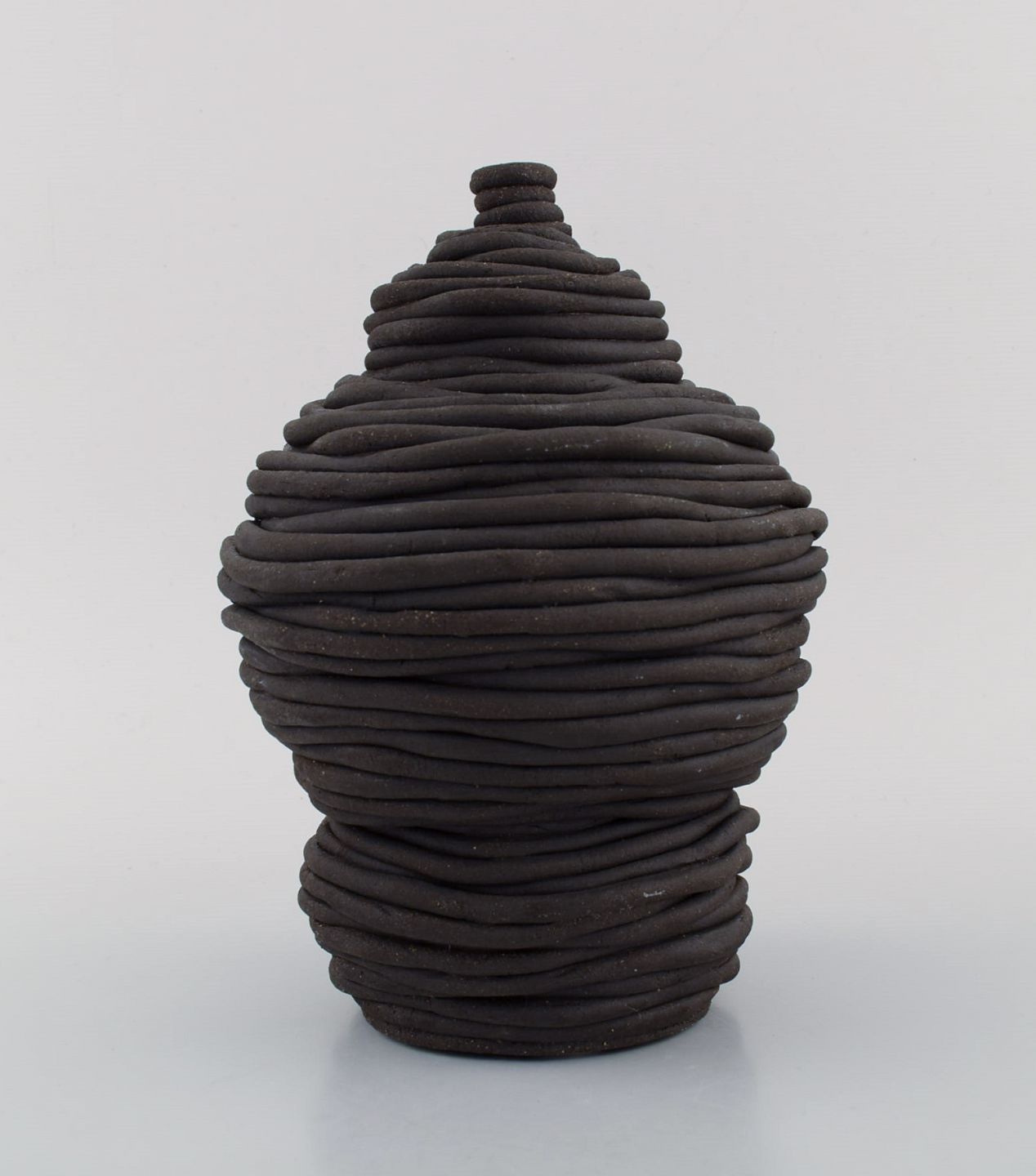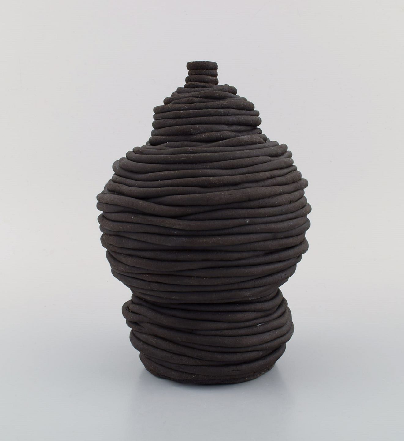 European studio ceramicist. Vase in black glazed ceramics. Late 20th century. Measures: 22 x 15.5 cm. In excellent condition. Signed.