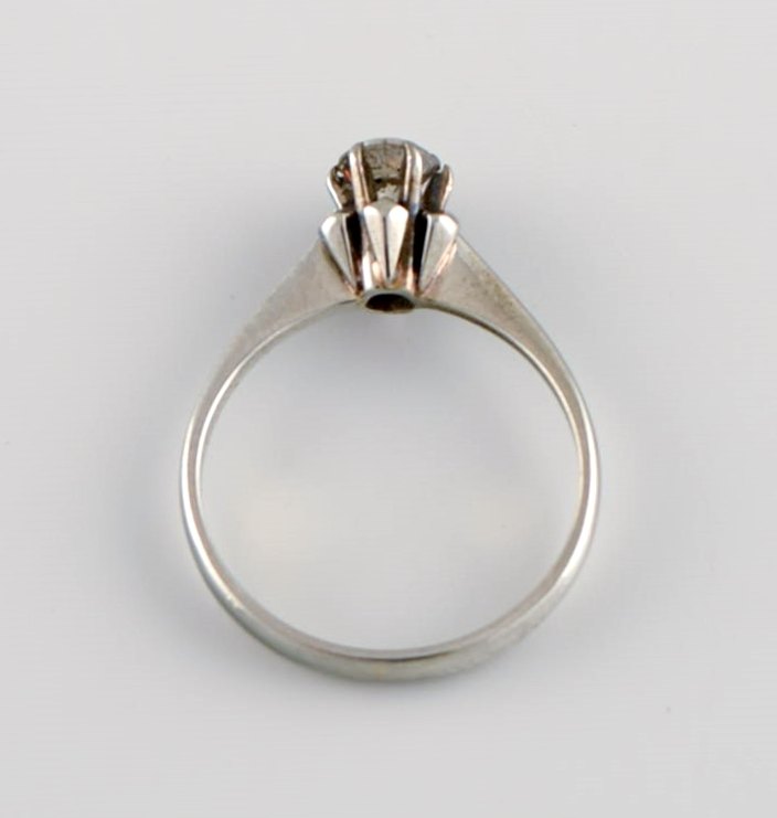 Skandinavisk guldsmed. Vintage ring i 18 karat hvidguld prydet med halvædelsten. Midt 1900-tallet.