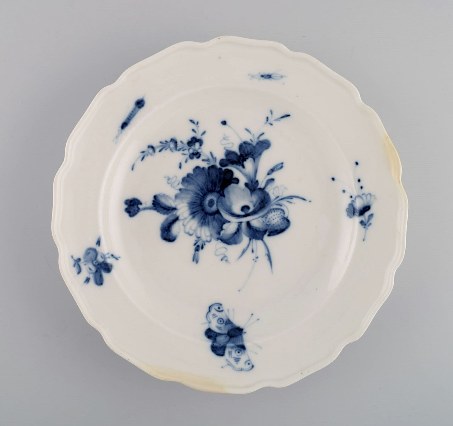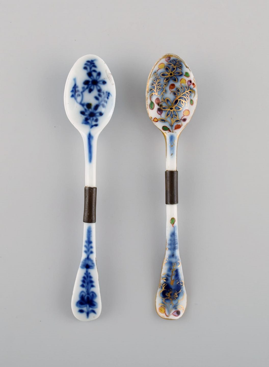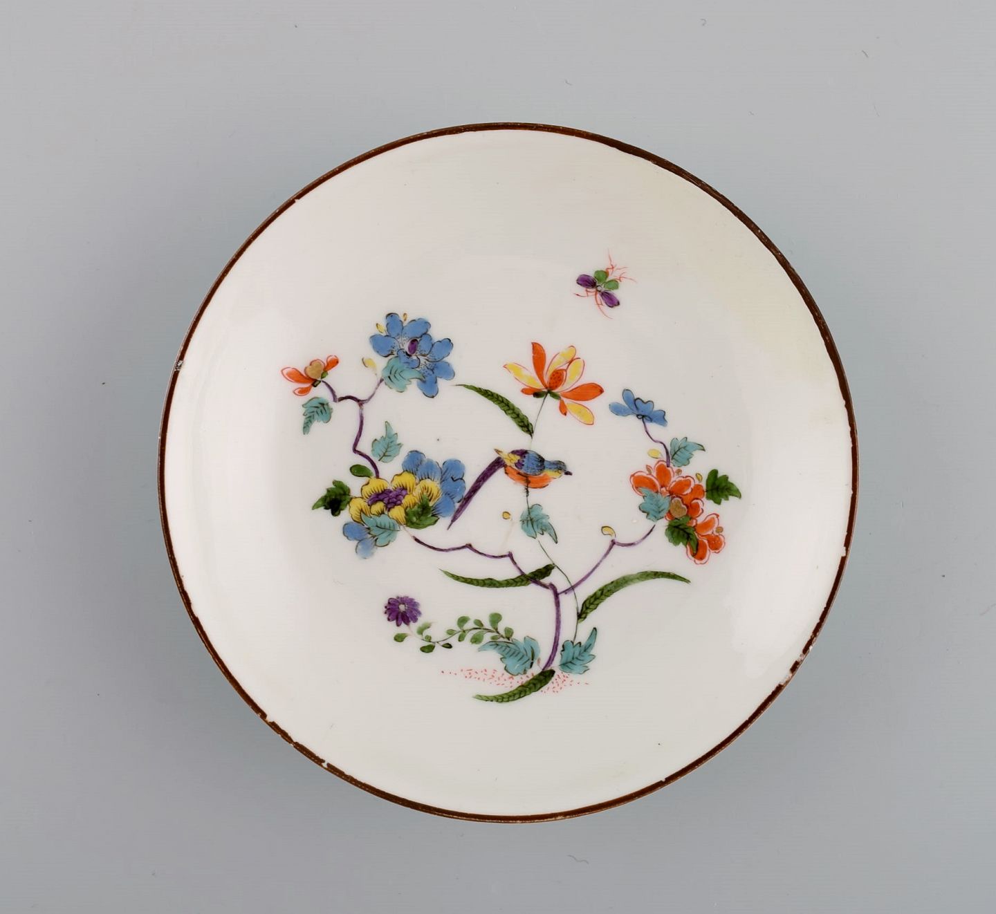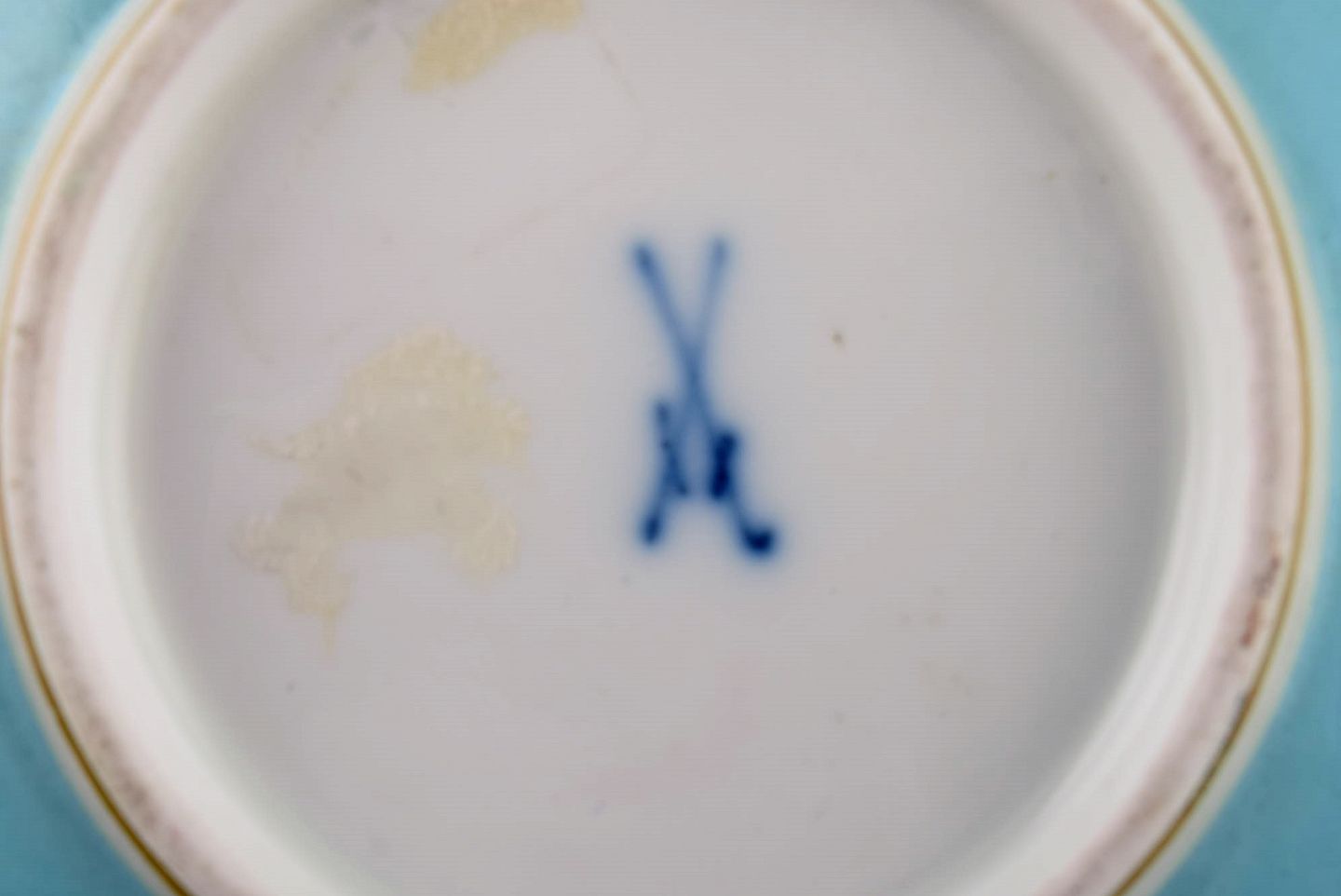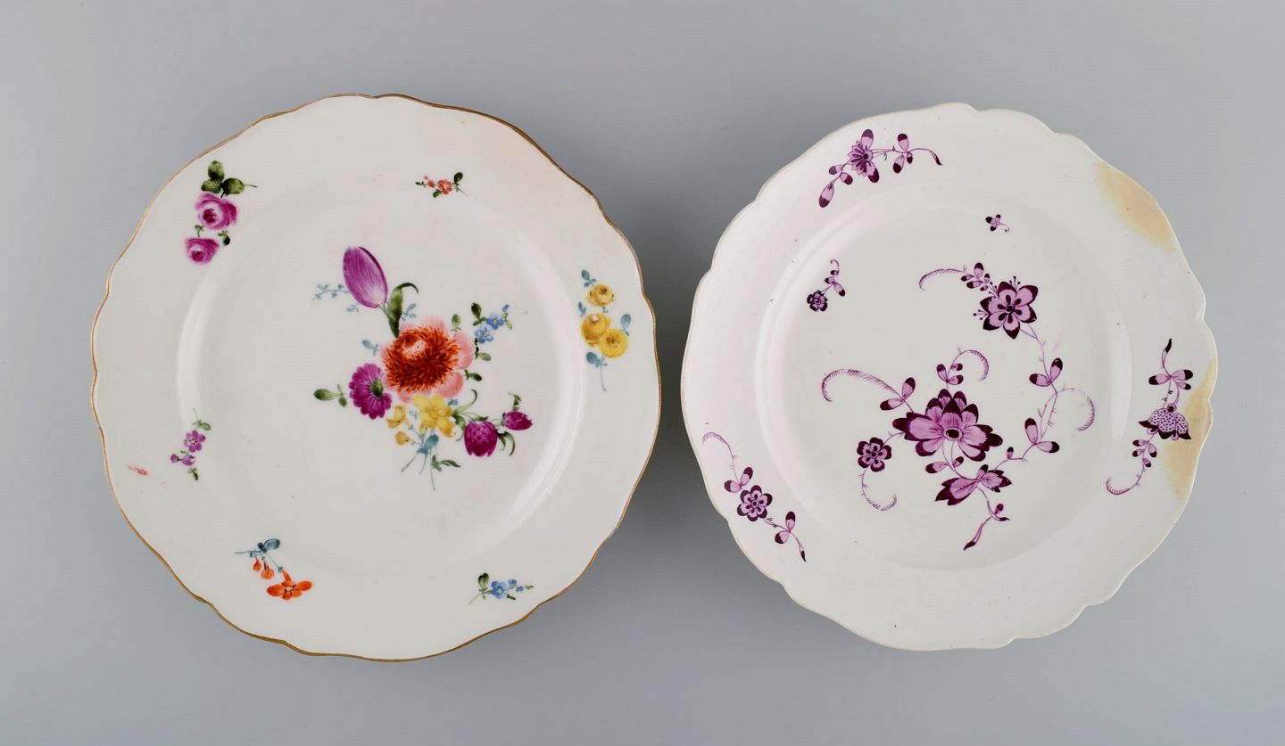 Antique Meissen bowl, three plates and two spoons in hand-painted porcelain. 19th century.