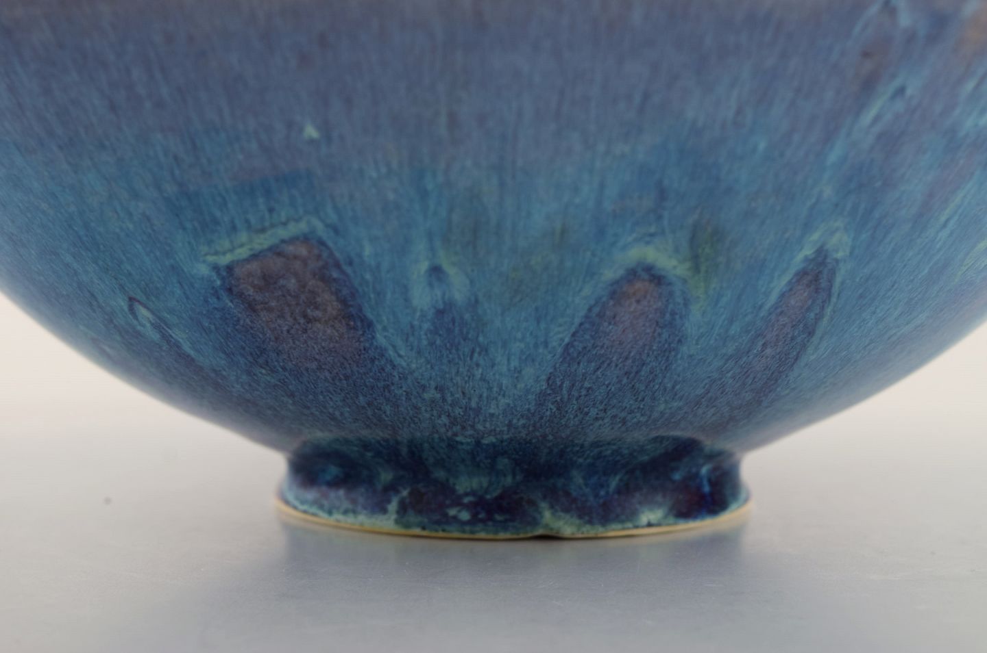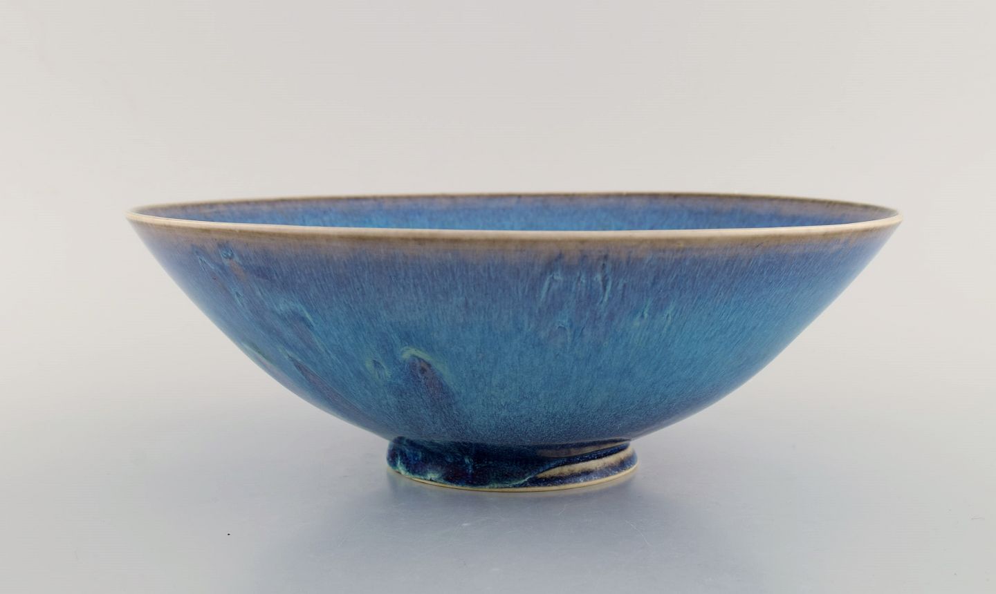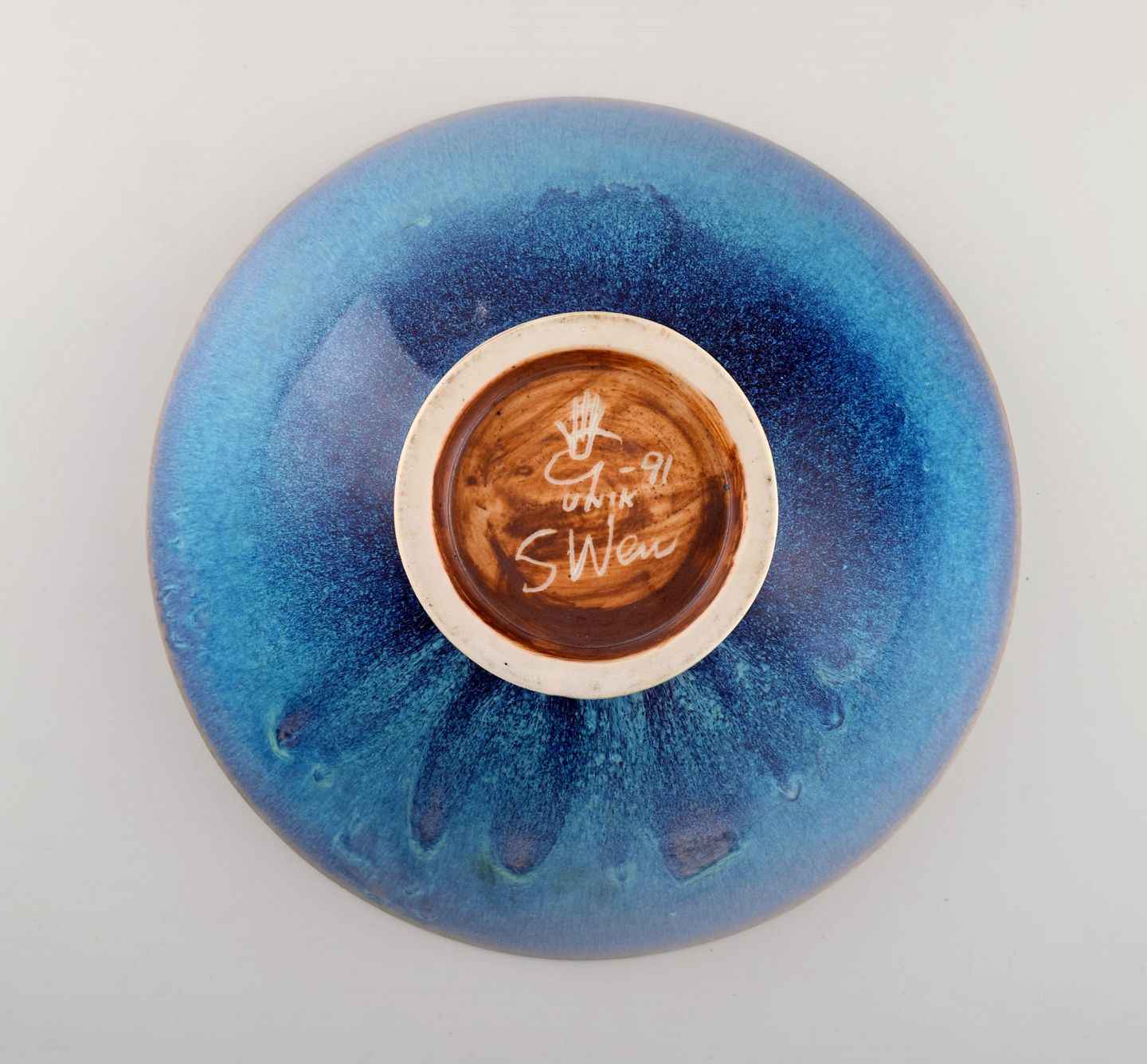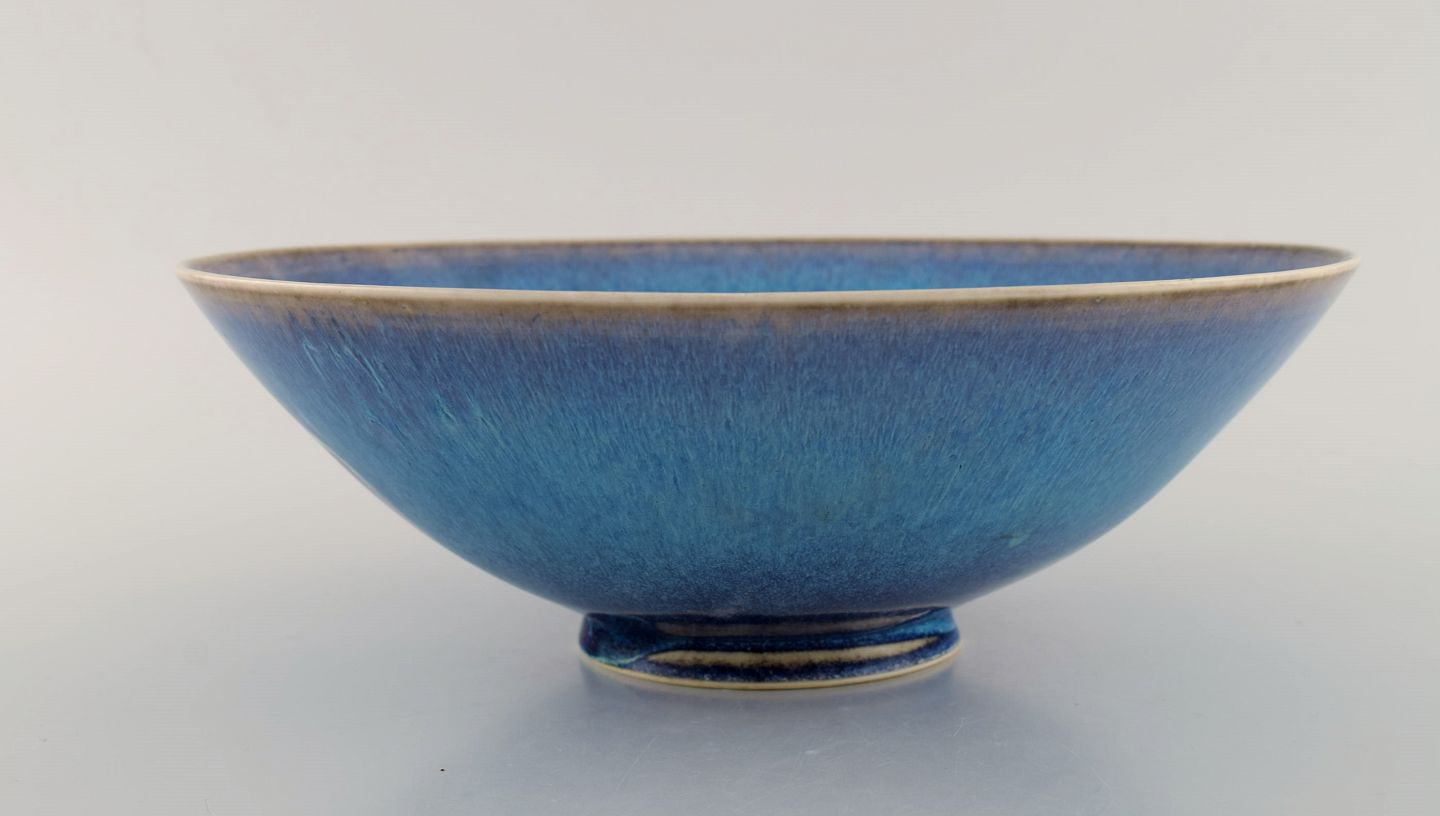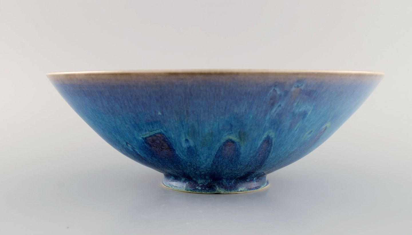 Sven Wejsfelt (1930-2009), Gustavsberg Studiohand. Unique bowl on base in glazed ceramics. Beautiful glaze in shades of blue. Dated 1991. Measures: 25.5 x 8.8 cm. In excellent condition. Signed and dated.