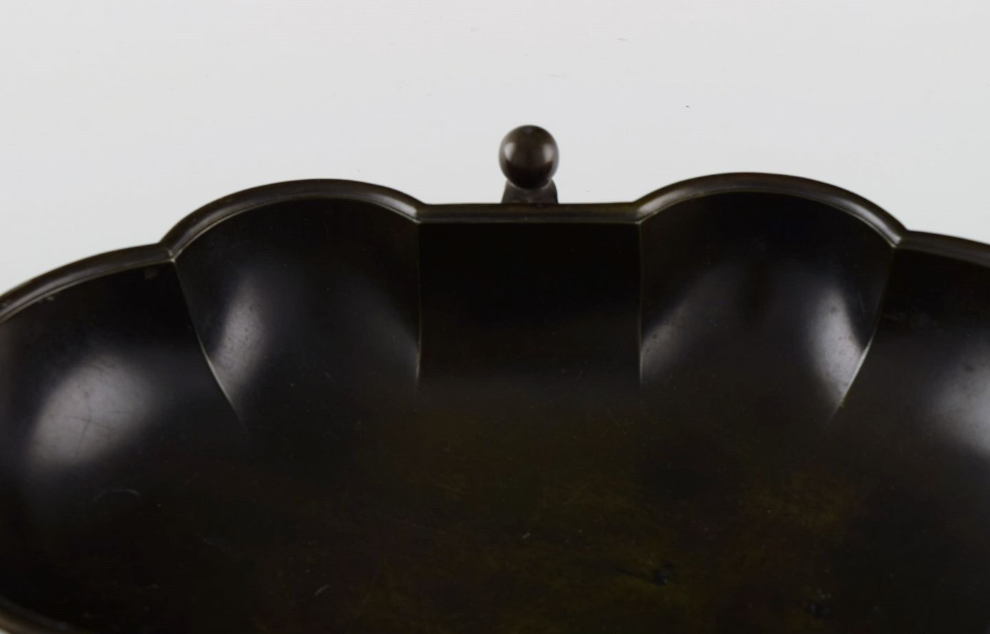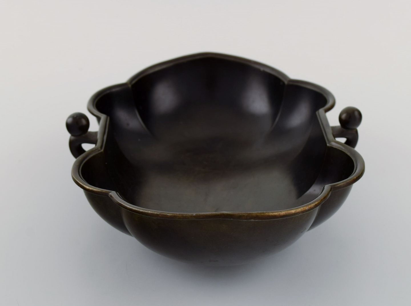 Just Andersen (1884-1943), Danmark. Tidlig skål i diskometal. Smuk patina. 1930'erne. Modelnummer 1359. Måler: 24,5 x 18 x 6 cm. I flot stand. Stemplet.