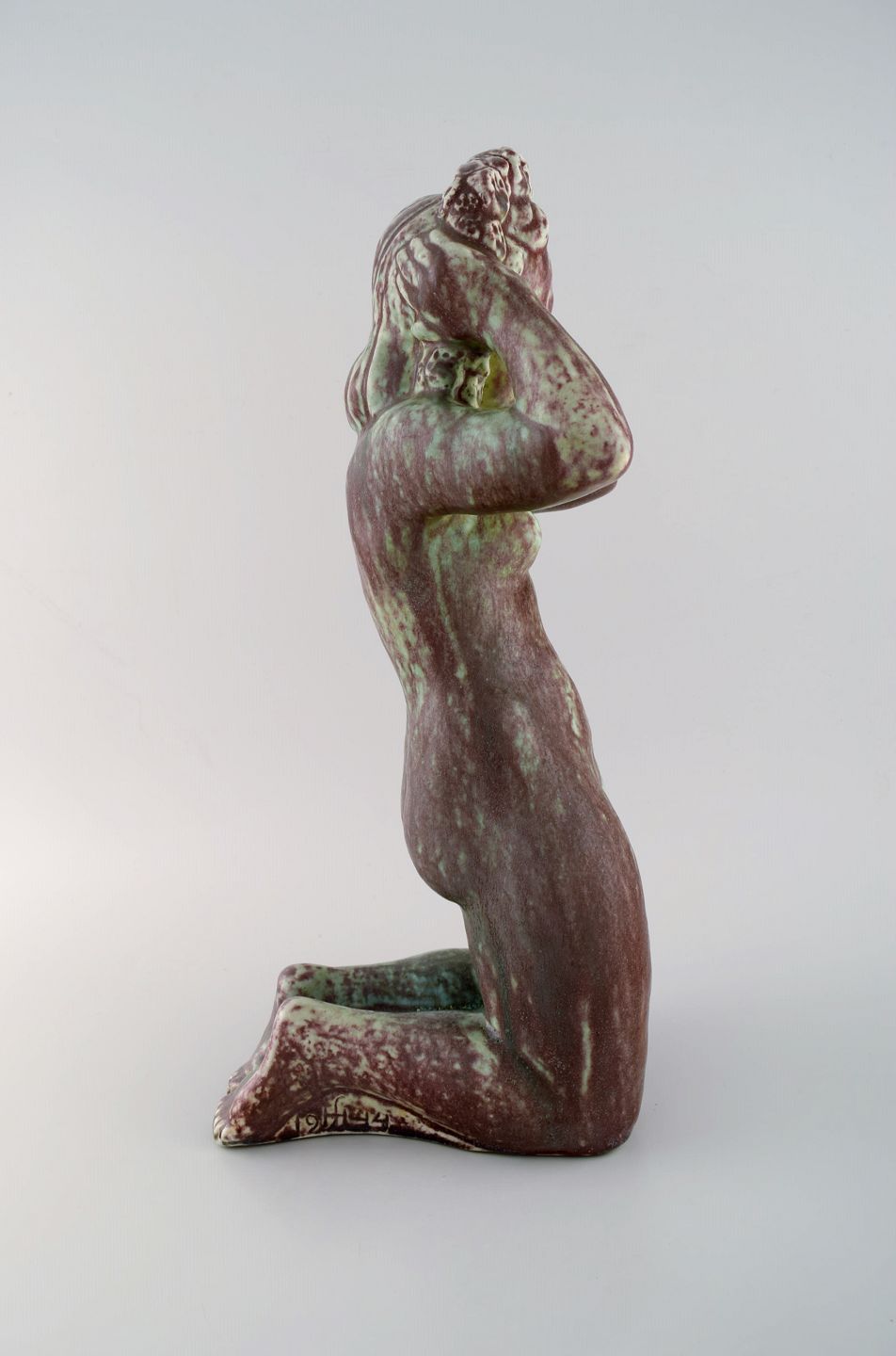 Harald Salomon for Rörstrand. Large unique sculpture of naked woman in glazed stoneware. Dated 1944.