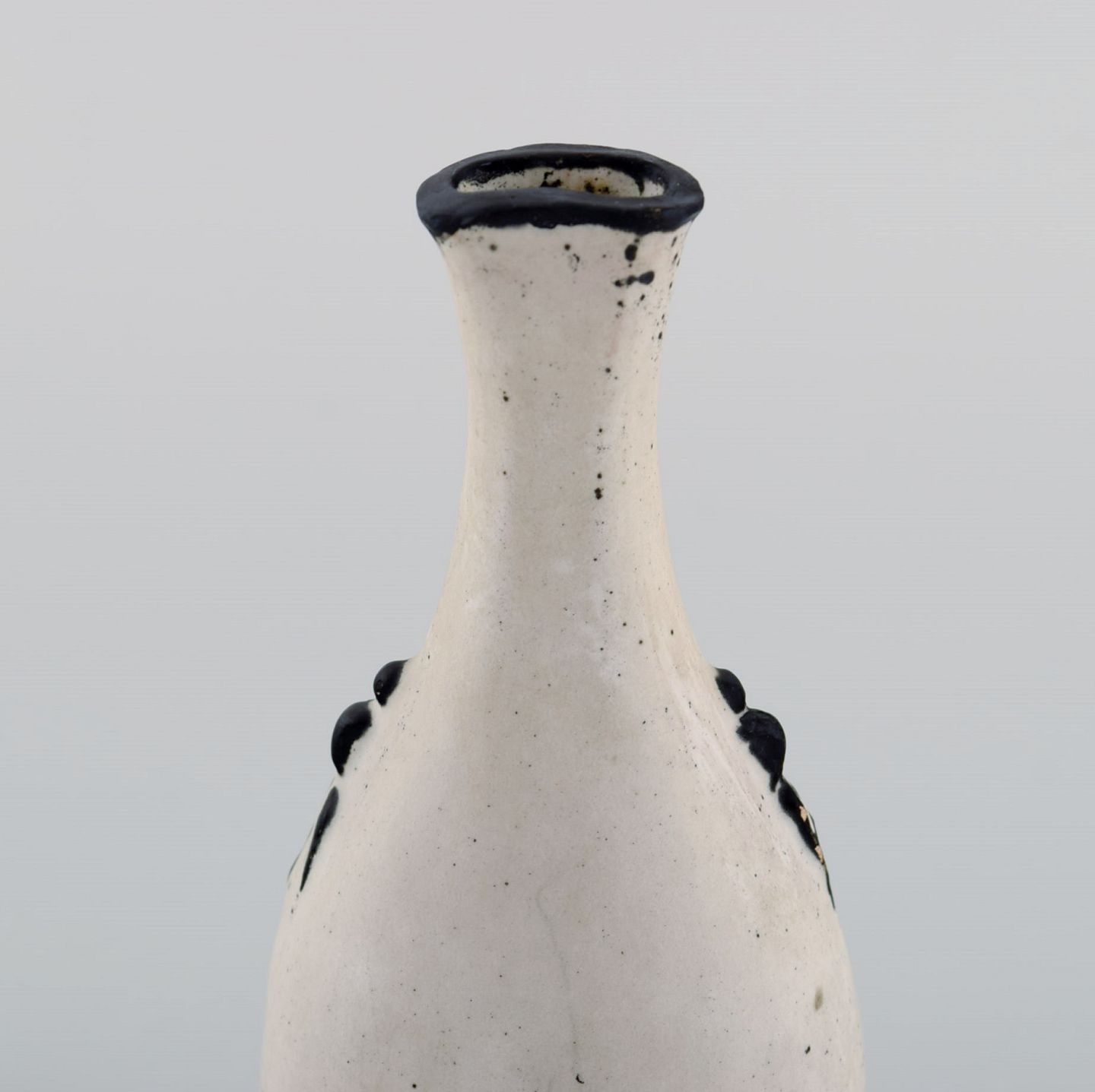 Svend Hammershøi for Kähler, HAK. Vase i glaseret stentøj. Smuk gråsort dobbeltglasur. 1930/40'erne. Måler: 15 x 6,5 cm. Stemplet. I flot stand.