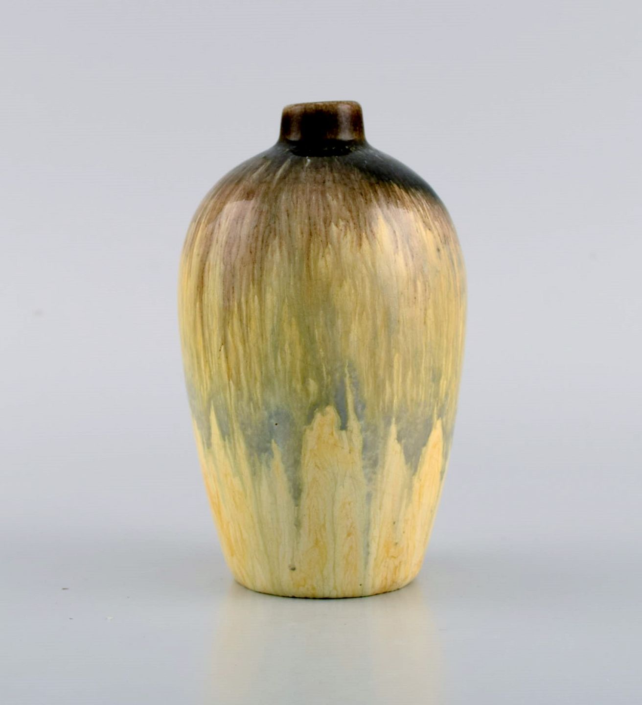 Pieter Groeneveldt (1889-1982), Dutch ceramicist. Unique vase in glazed ceramics. Beautiful glaze in yellow and black shades. Mid-20th century.