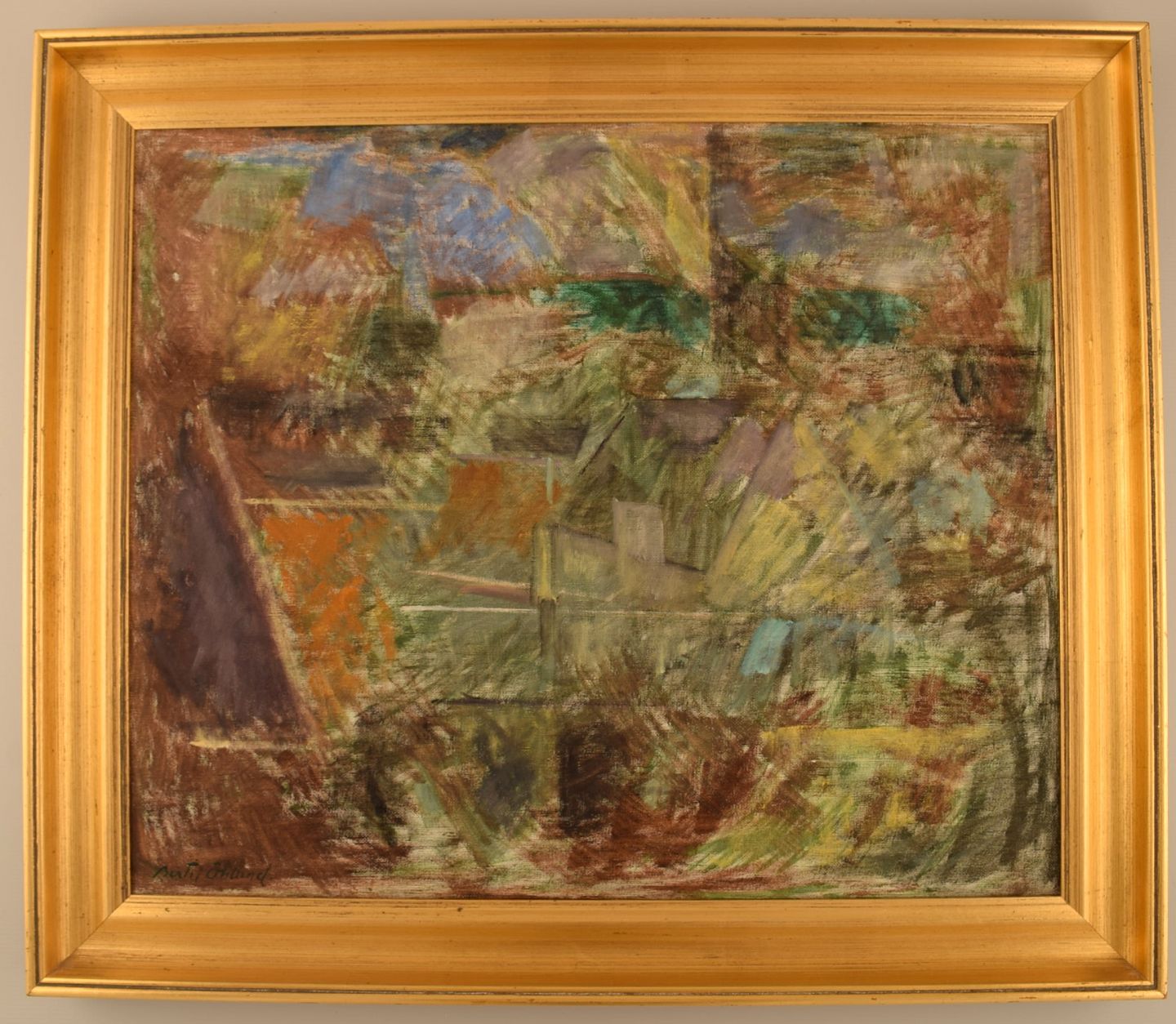 Bertil Öhlund (1923-2003), Sweden. Oil on canvas. Abstract composition. 1960/70's. The canvas measures: 54 x 45 cm. The frame measures: 5.5 cm. Signed. In excellent condition.