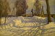 Danish painter. Oil on canvas. Winter landscape with farm. 1920s / 30s. The canvas measures: 98 x 68 cm. The frame measures: 9 cm. In excellent condition. Signed.