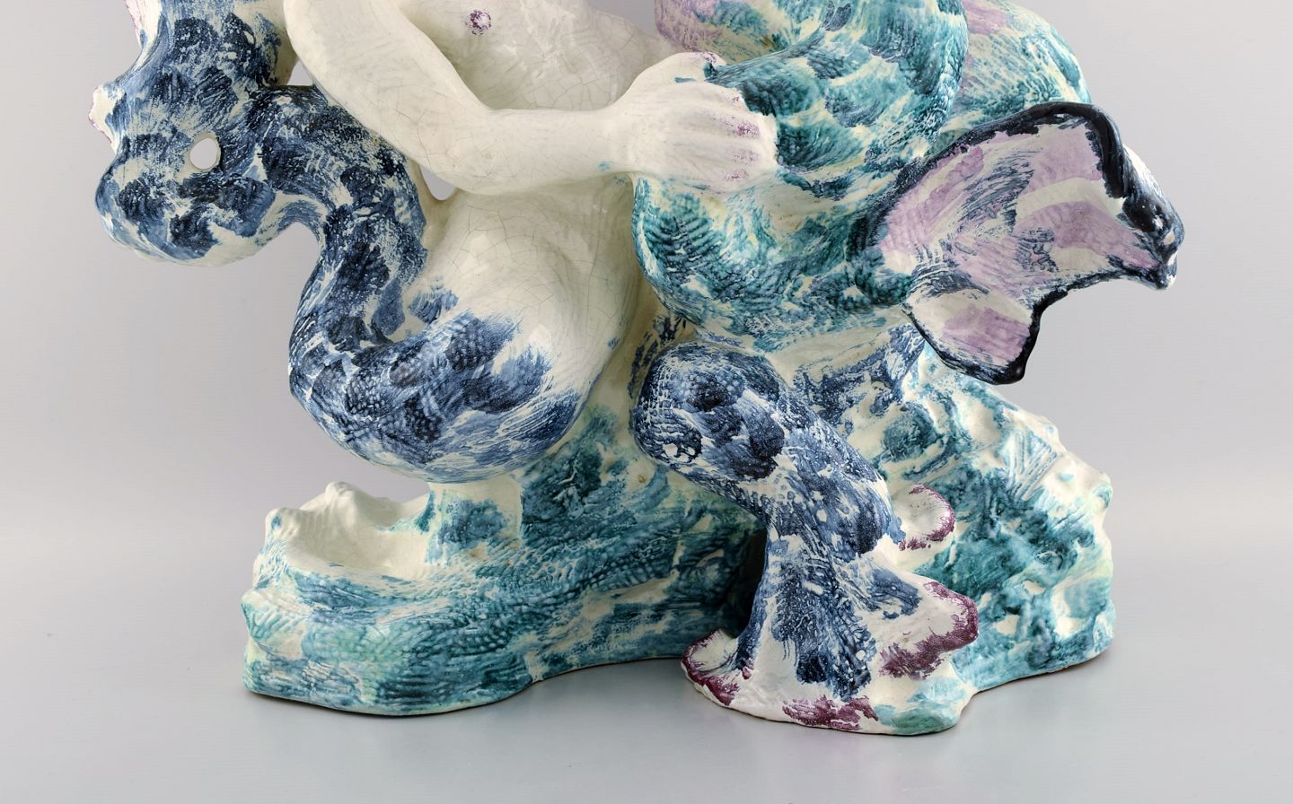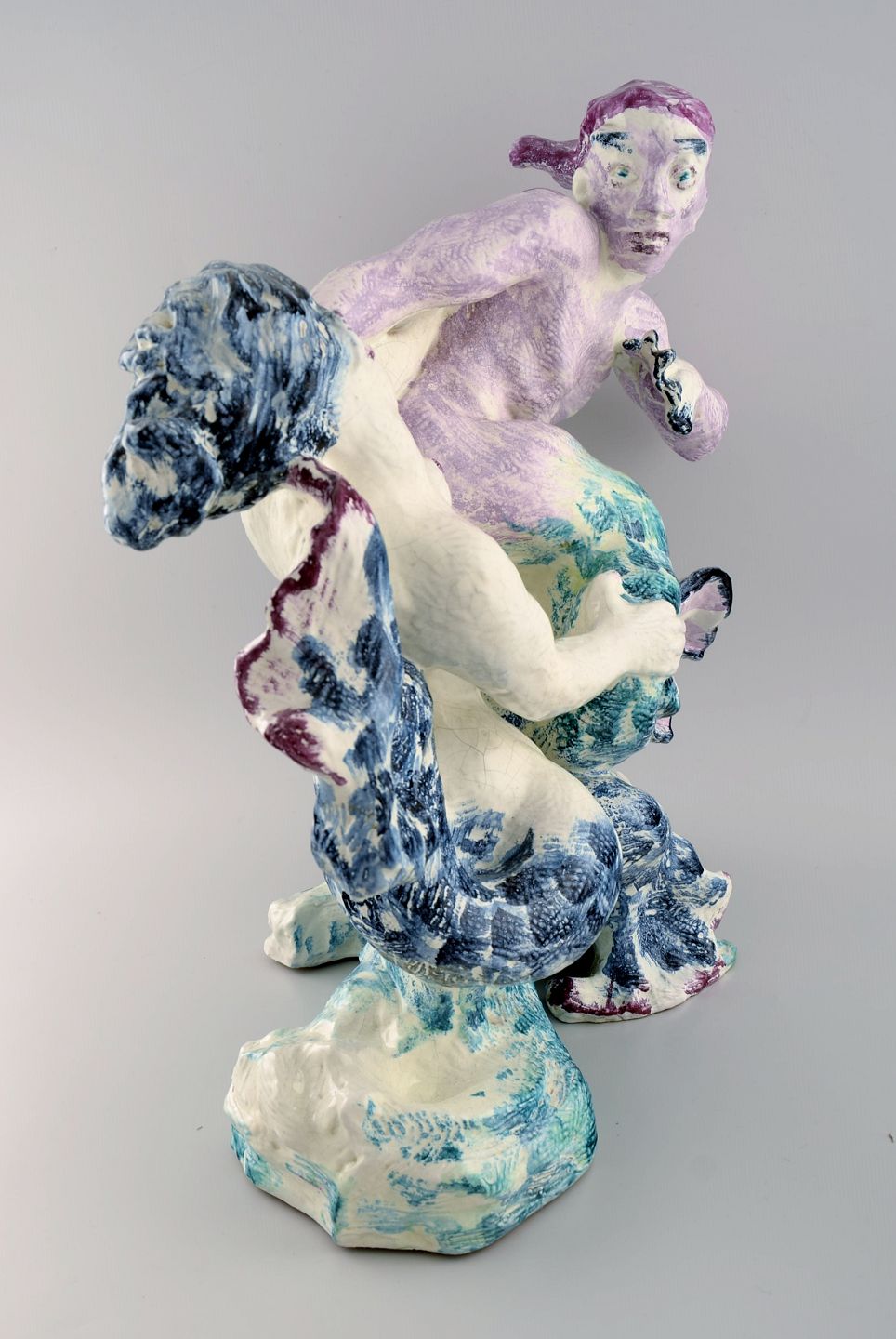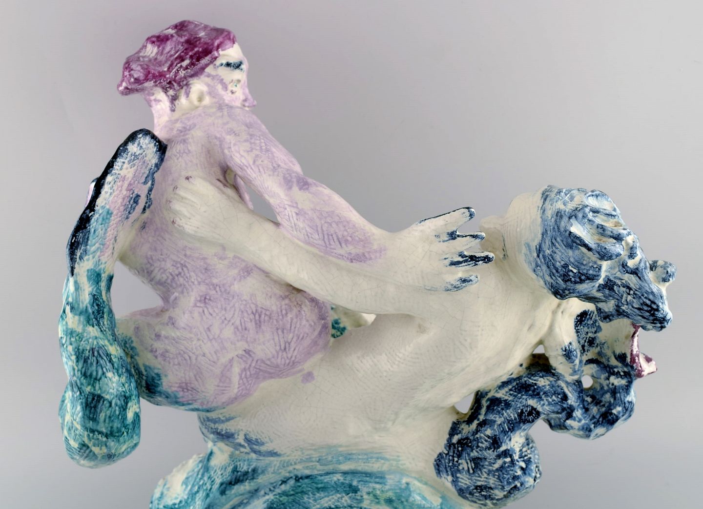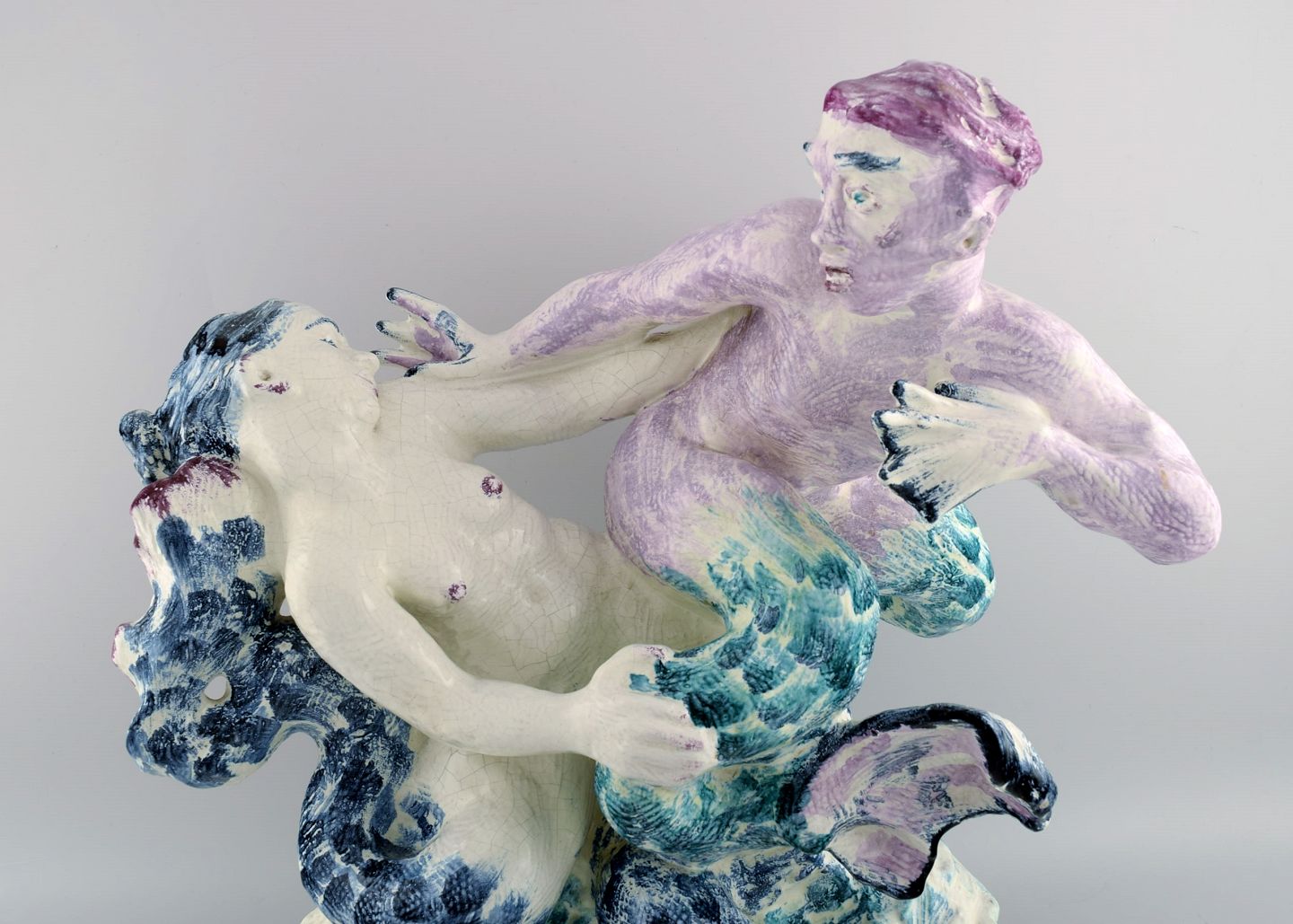 Jean René Gauguin for Bing & Grøndahl. "Play of the Waves". Giant sculpture in hand-painted glazed stoneware in the form of a mermaid and merman. 1920s / 30s.