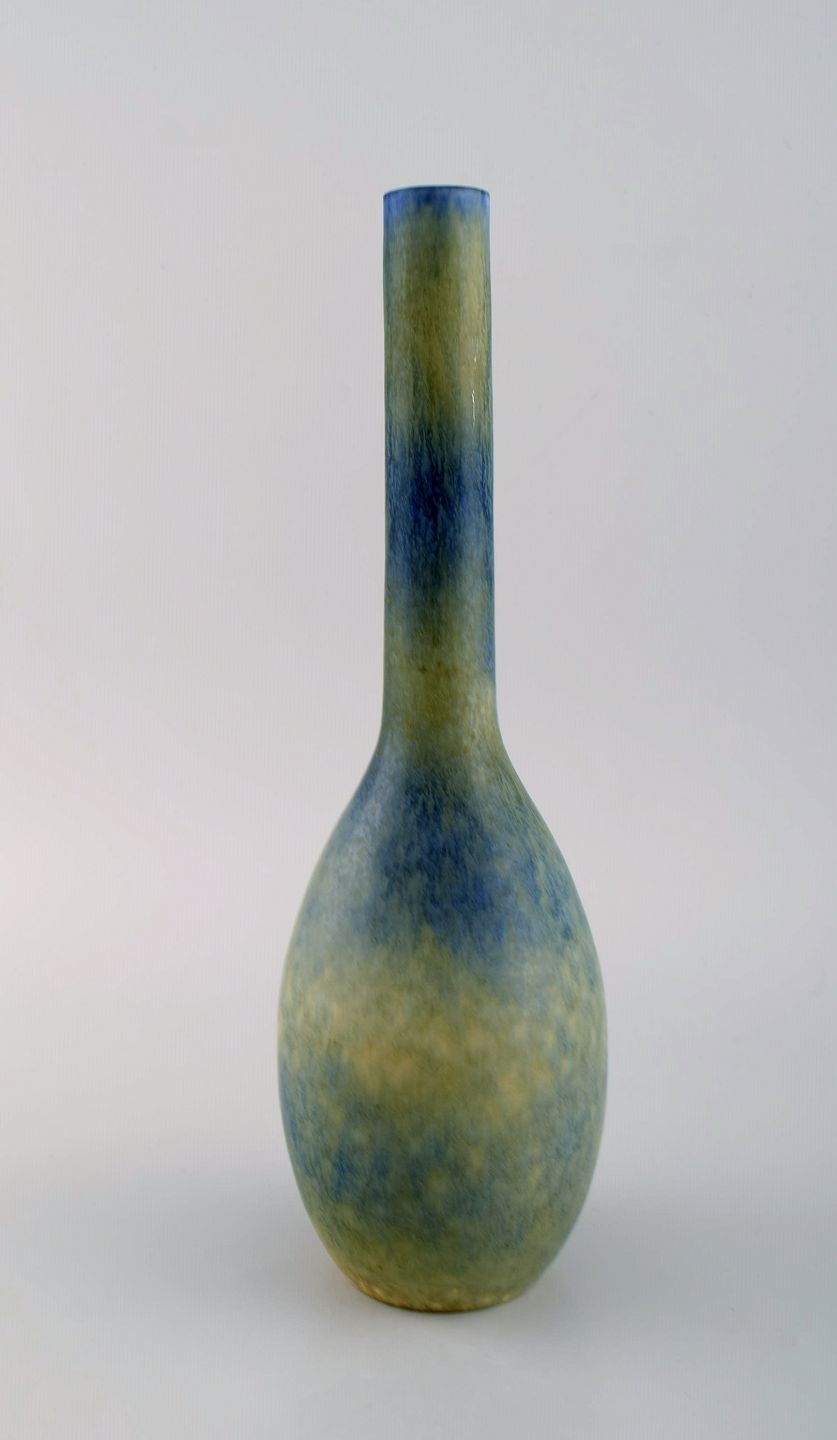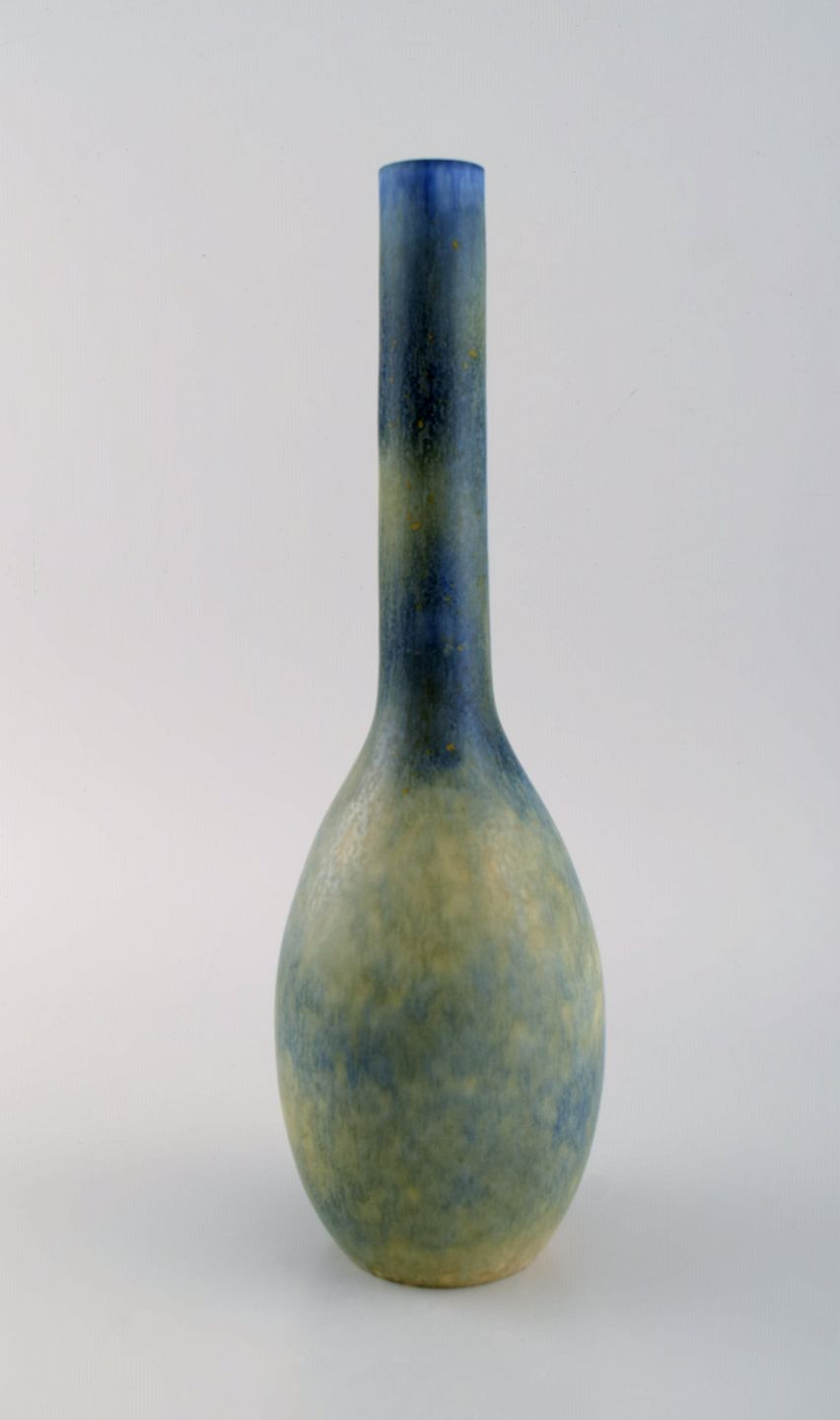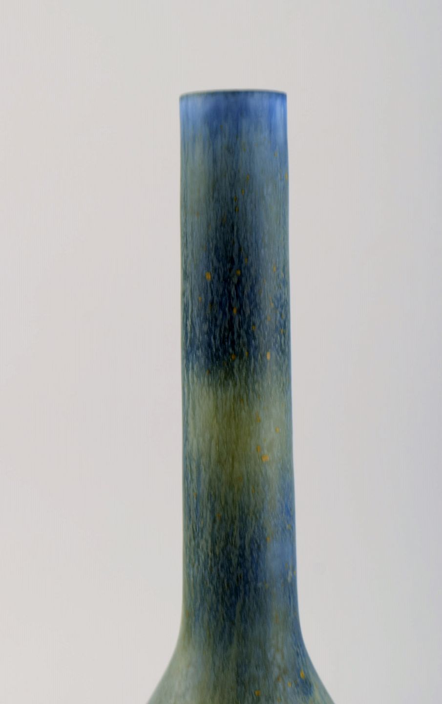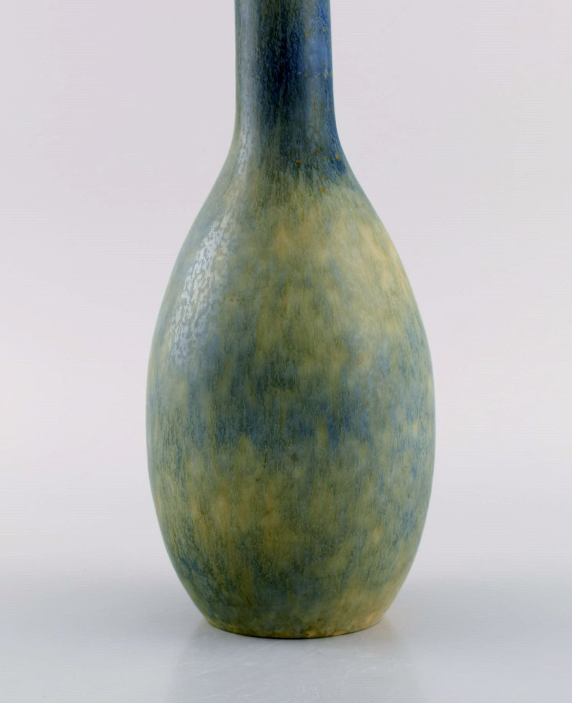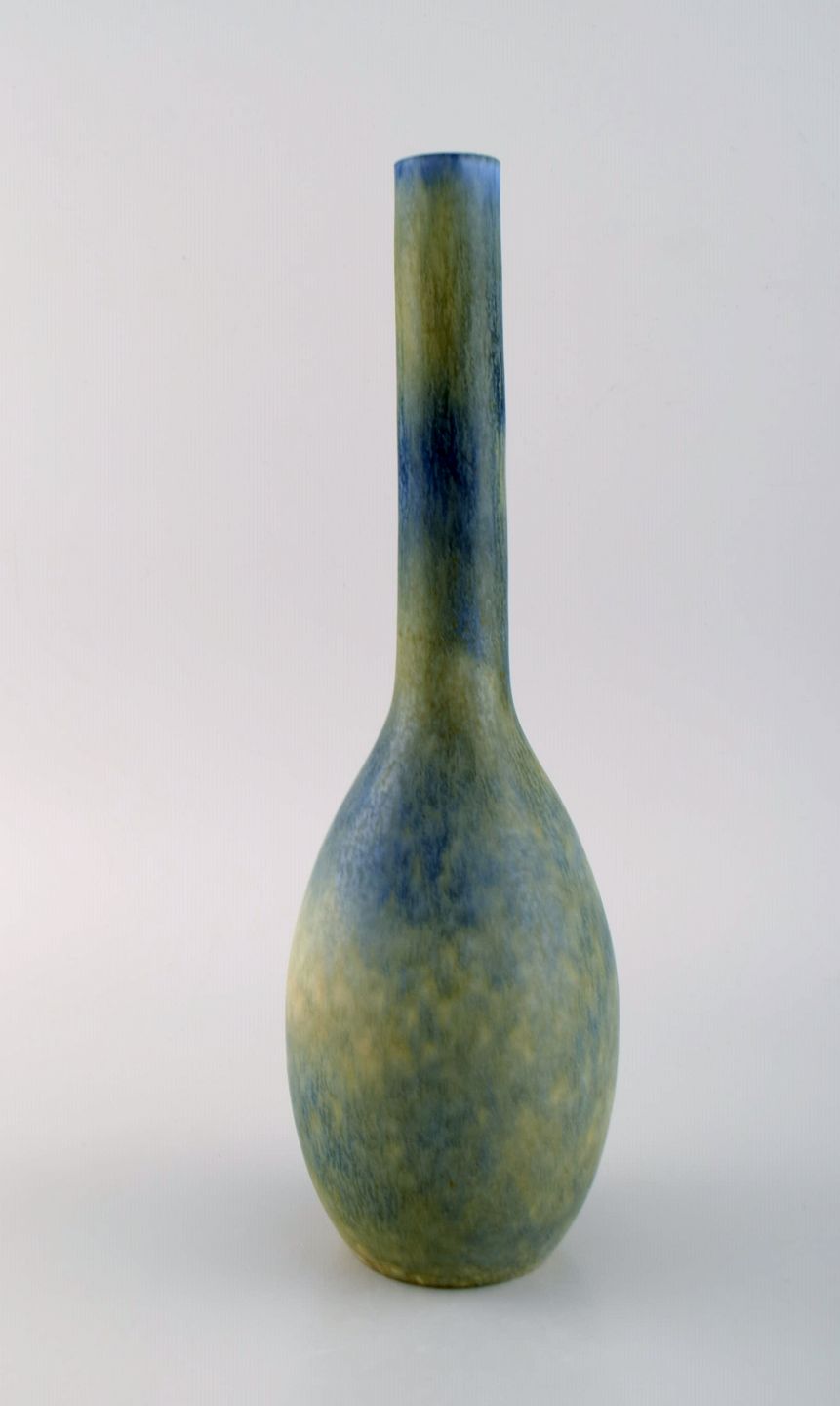 Carl Harry Stålhane for Rörstrand. Narrow neck vase in glazed ceramics. Beautiful blue-green double glaze. Mid-20th century. Measures: 32 x 10 cm. In excellent condition. Stamped. 2nd factory quality.