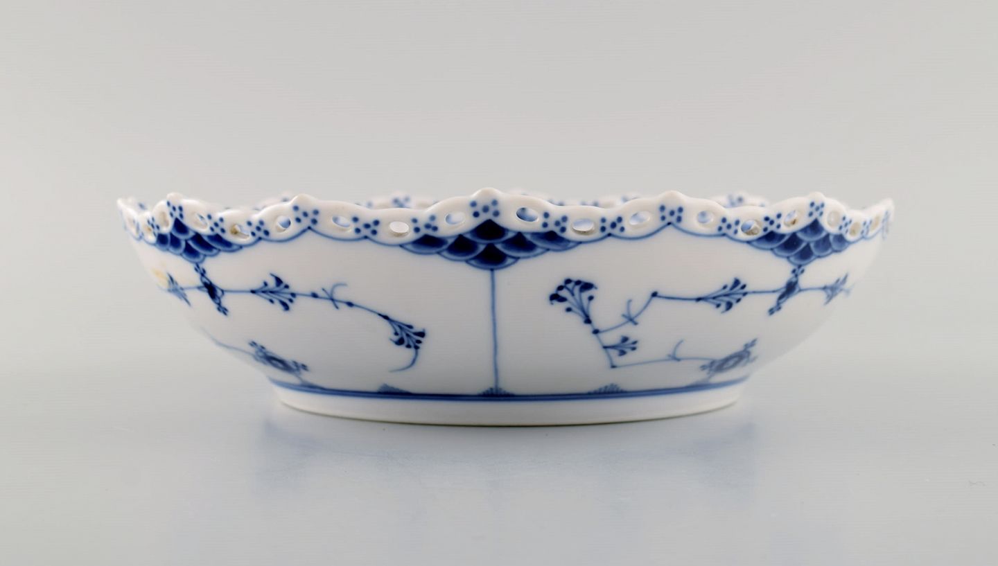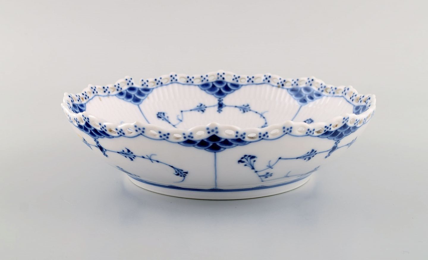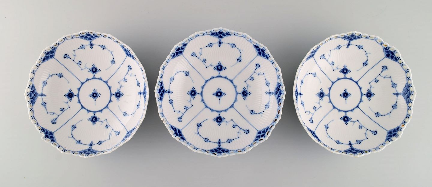 Three antique Royal Copenhagen Blue Fluted Full Lace bowls. Early 19th century. Measures: 20 x 5.5 cm. In good condition. All bowls with small chips. 1st factory quality. Stamped.