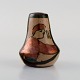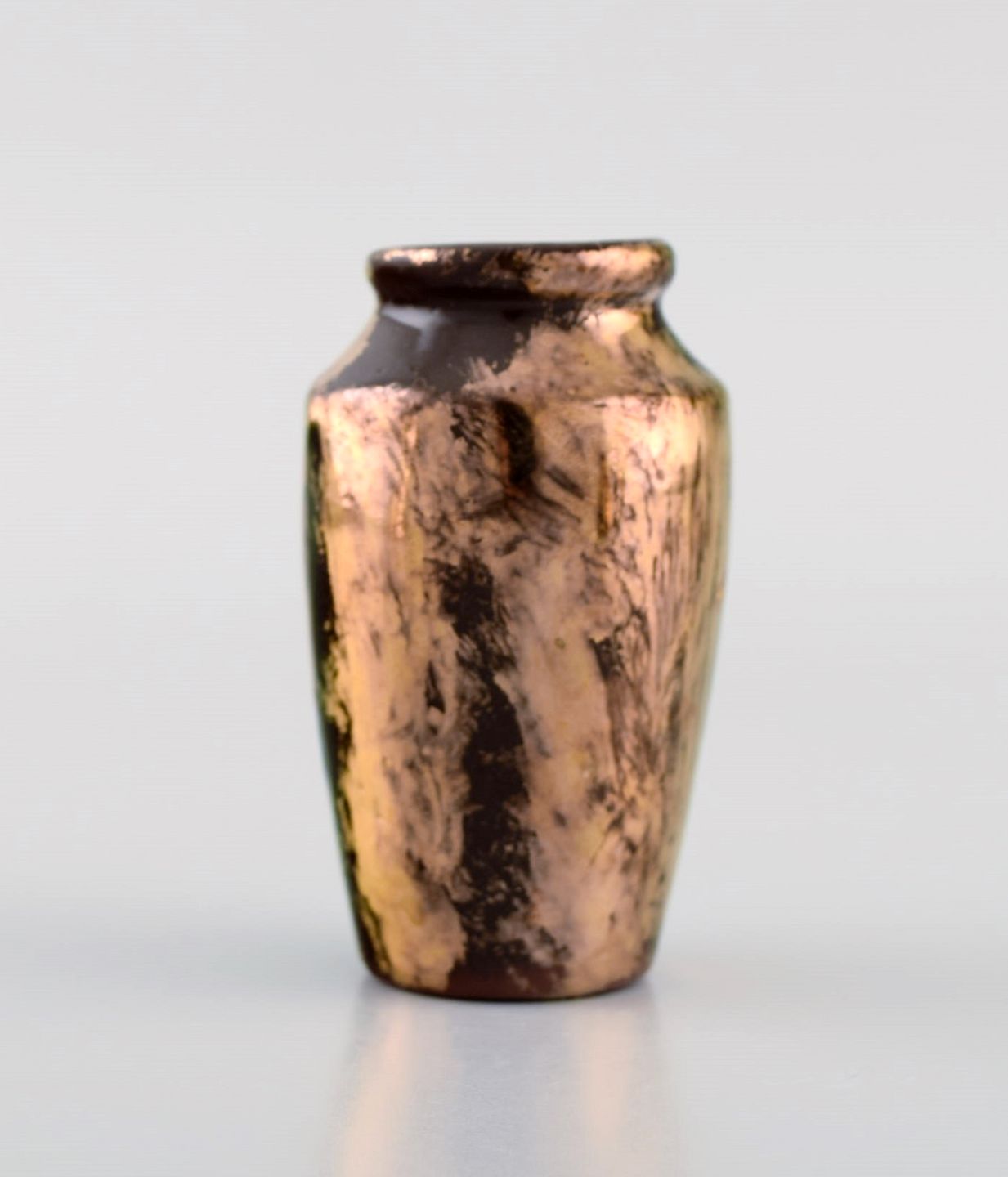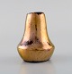 Bayeux, Frankrig. To miniature vaser i håndmalet glaseret keramik med gulddekoration. 1930/40'erne. Største måler: 8 x 6,5 cm. I flot stand. Signeret.