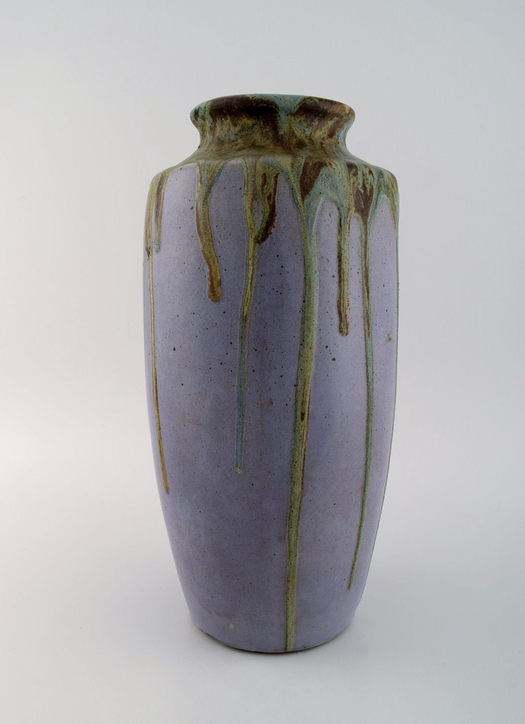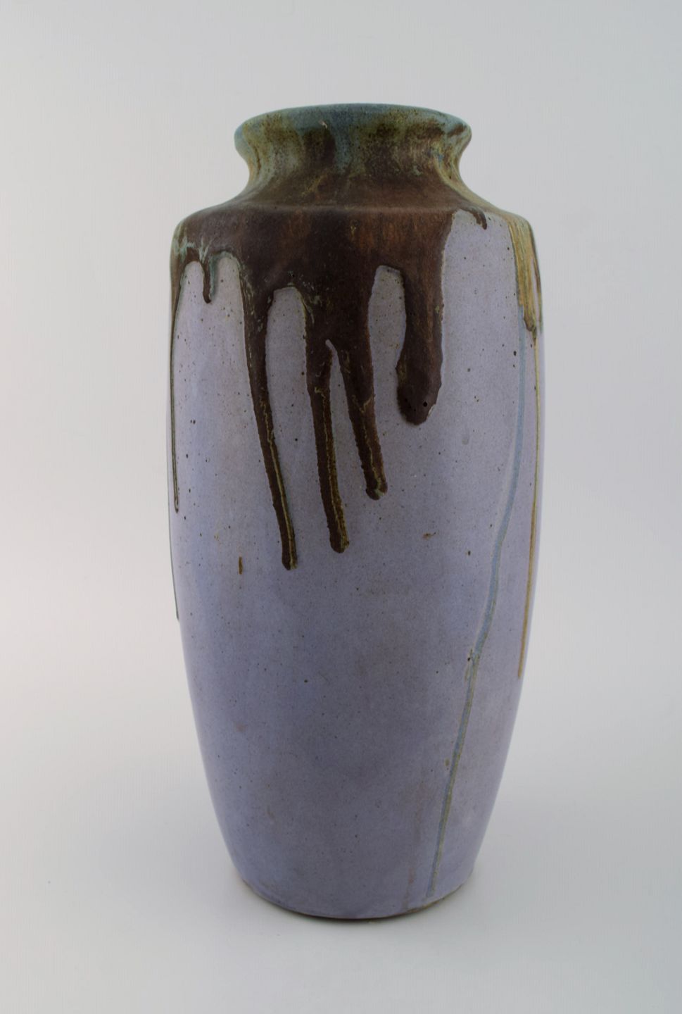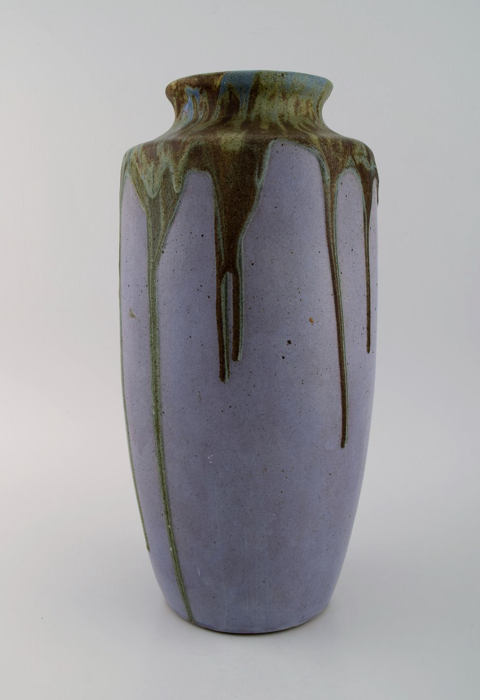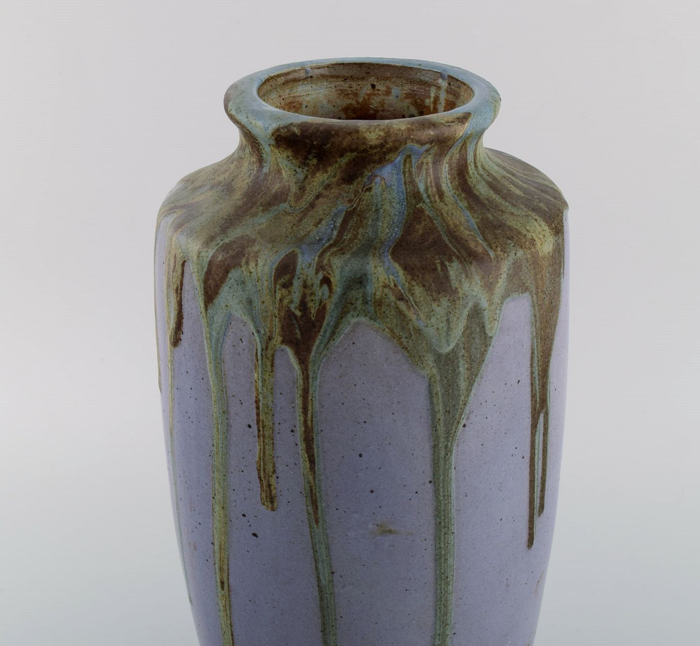 Leon Pointu (1879-1942), France. Large art deco vase in glazed stoneware. Beautiful running glaze on a purple background. 1930s. Measures: 35 x 17 cm. In excellent condition. Signed.